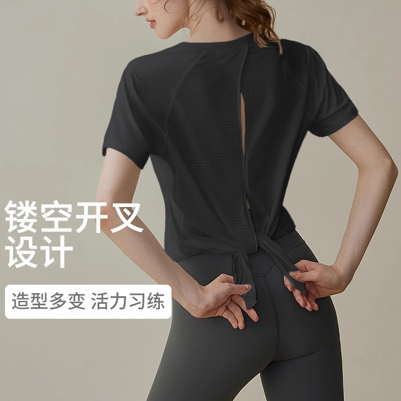 느슨한 요가 옷 여성 분할 슬리밍 스포츠 짧은 소매 필라테스 훈련 피트니스 러닝 탑 티셔츠