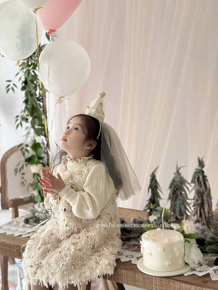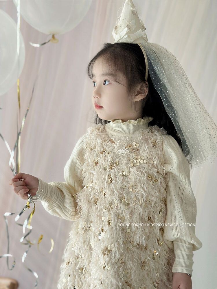 여자 겨울 면화 패딩 원피스 스팽글 공주 2023 새로운 술면 패딩 조끼 스팽글 깃털 스커트