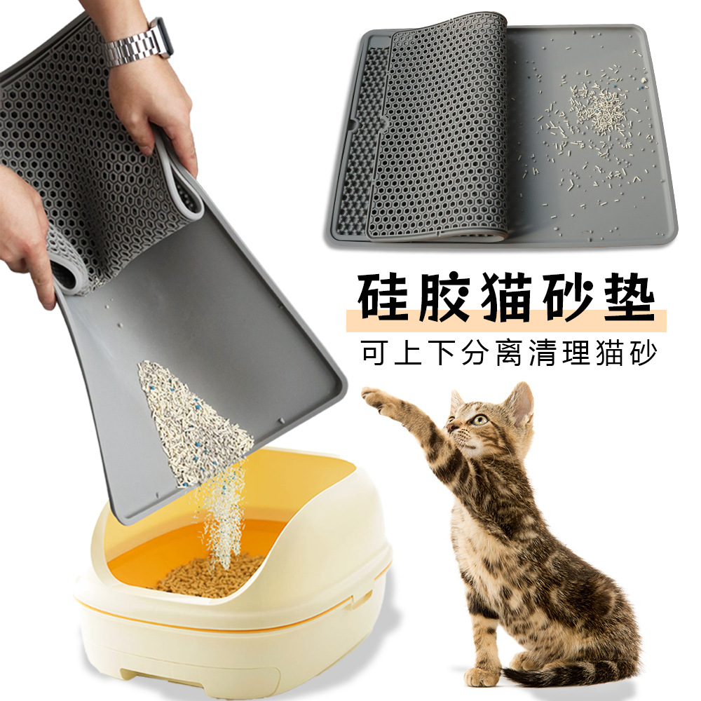 이중층 고양이 모래 매트, 흘림 방지, 필터링, 오염 방지, 고양이 화장실용 실리콘 매트, 고양이 긁힘 방지