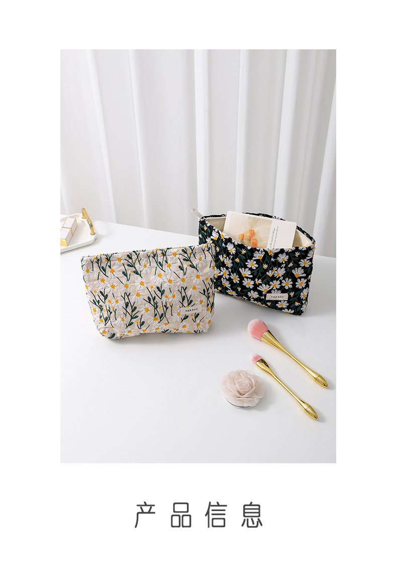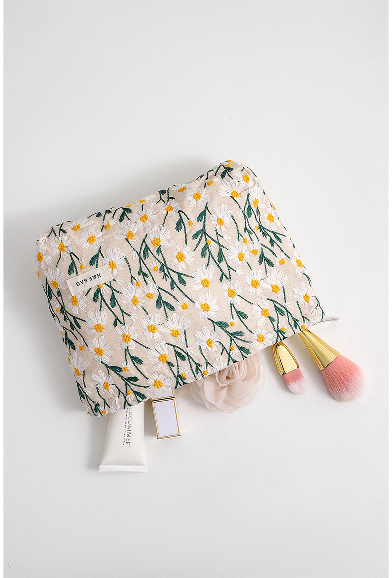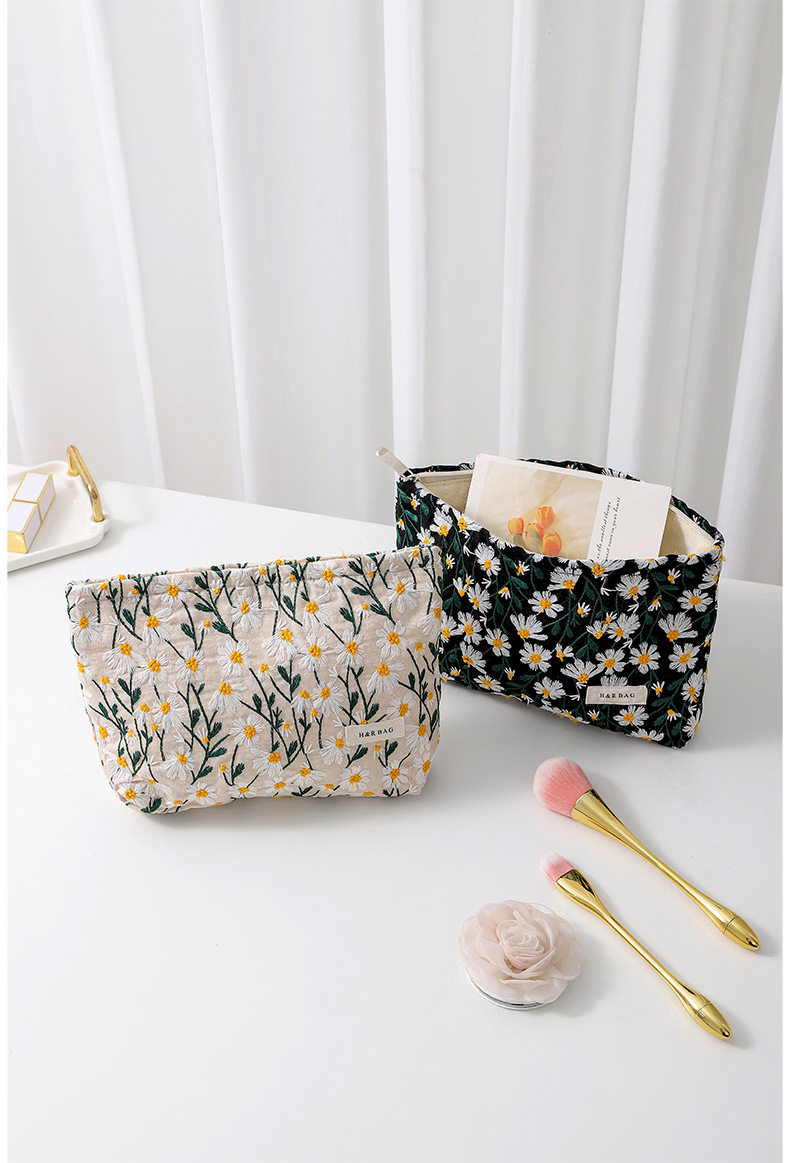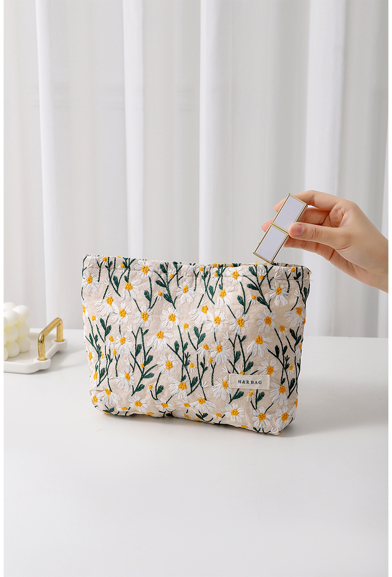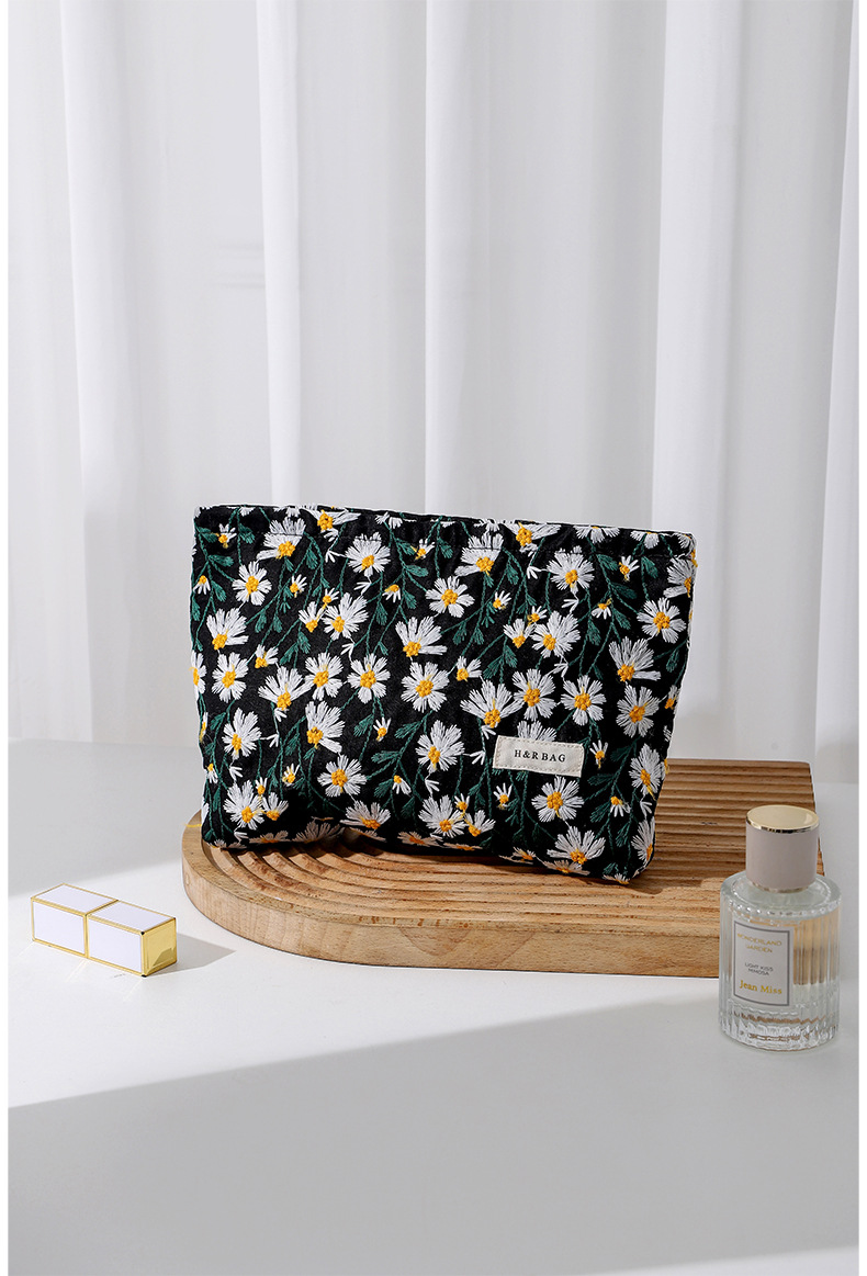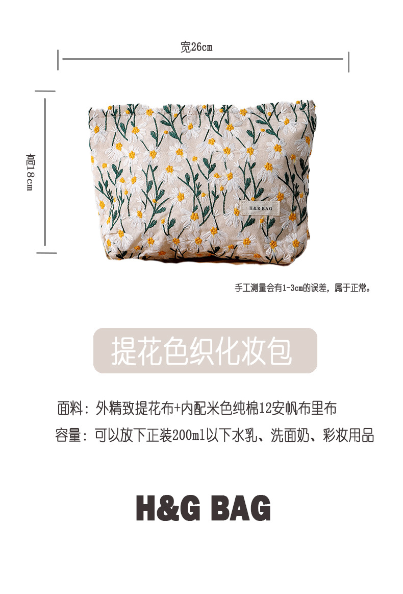 면 자수 꽃무늬 메이크업 브러쉬 화장품 가방 휴대용 여행용품 잡화 대용량 스킨케어 제품 수납 가방