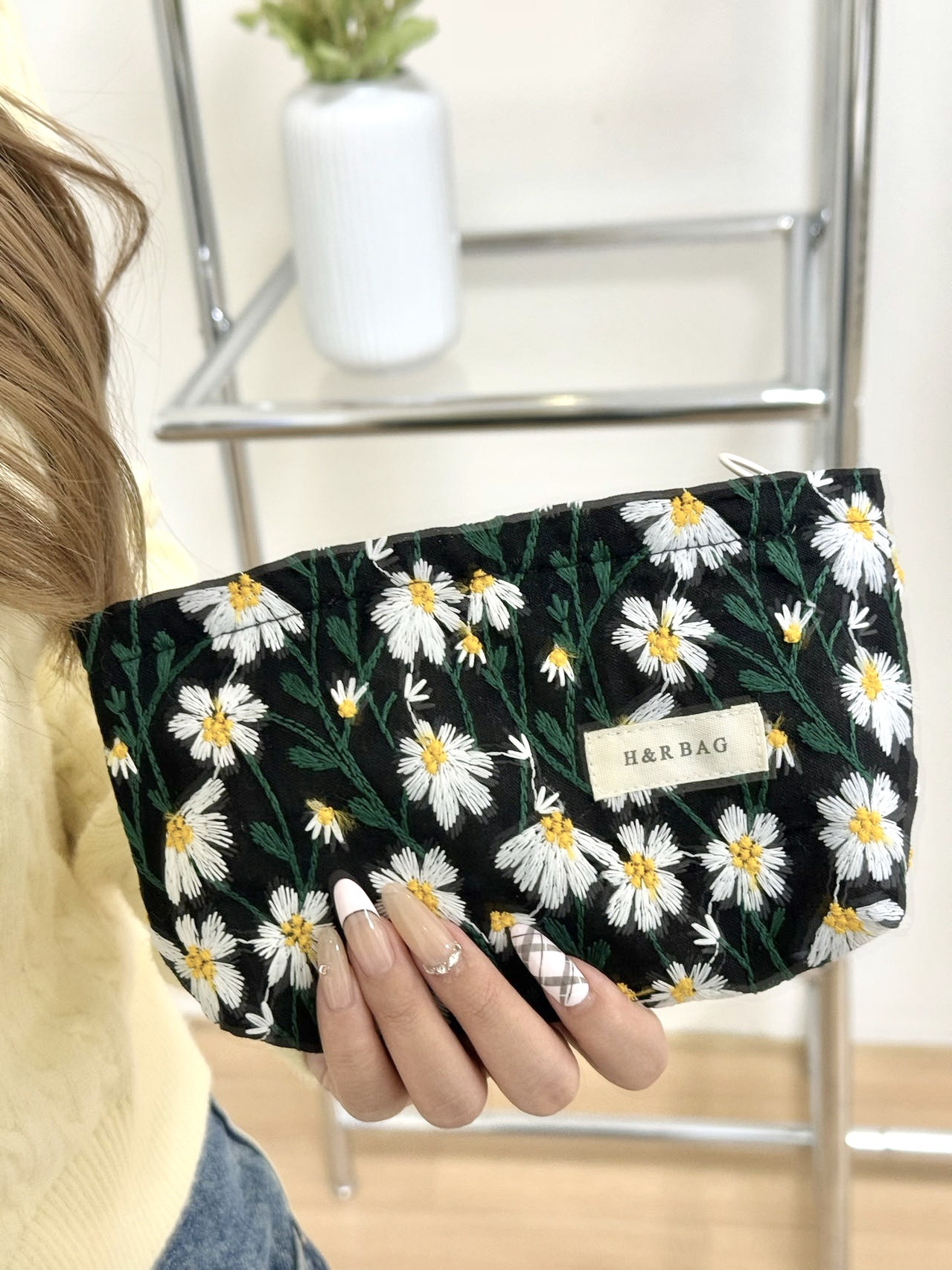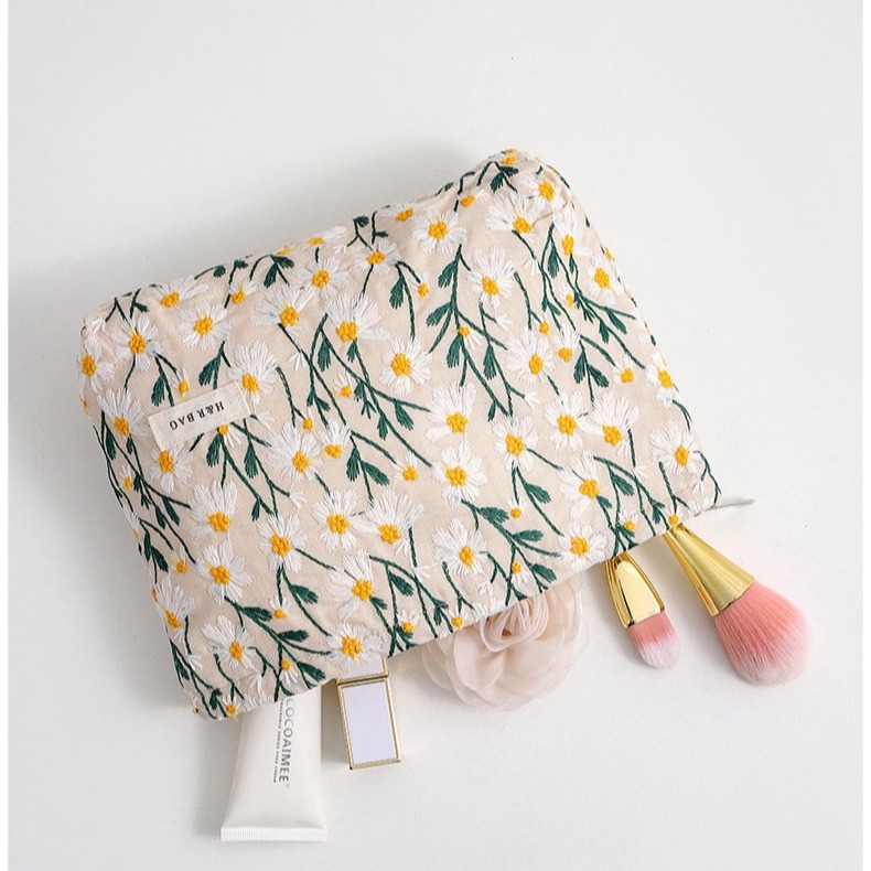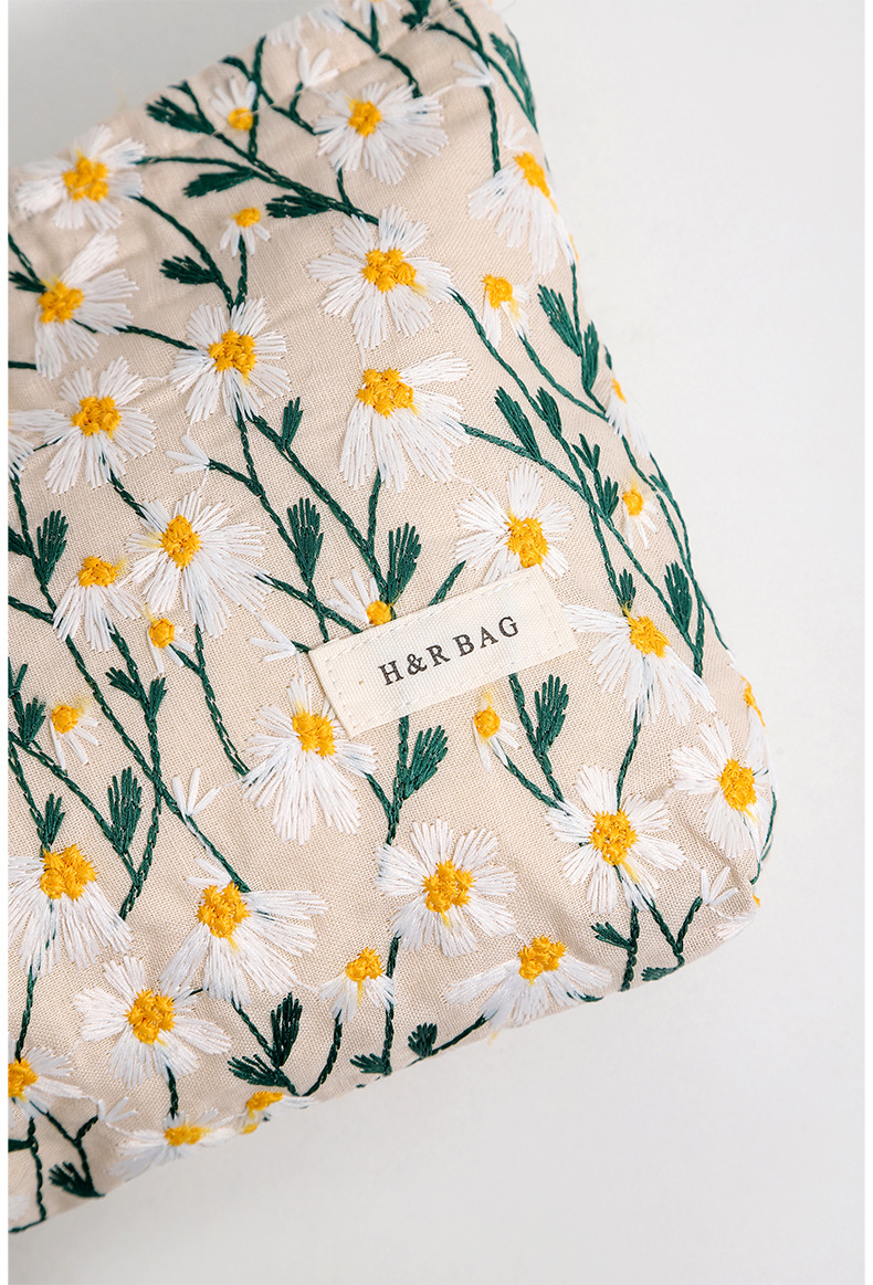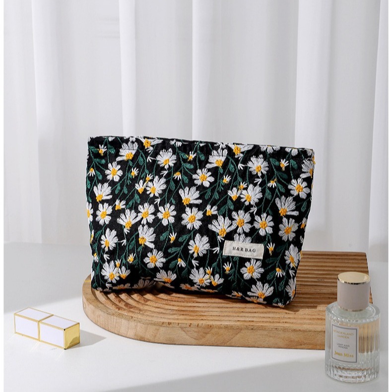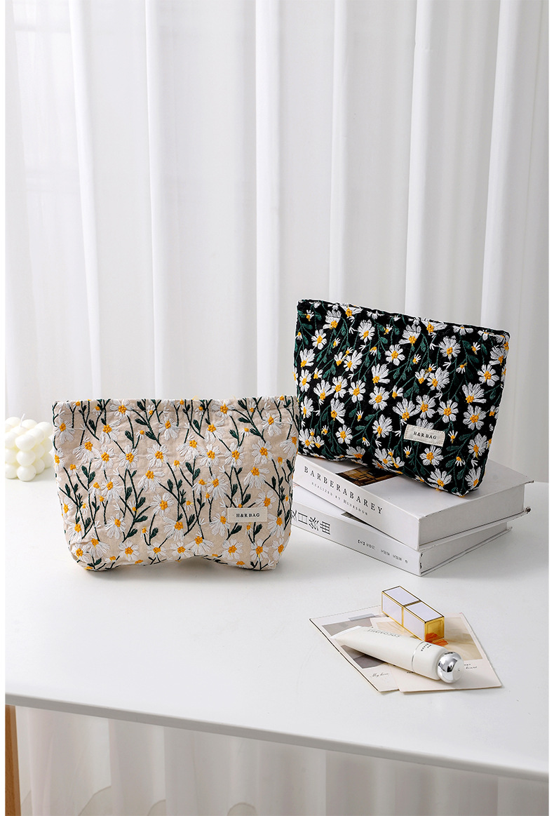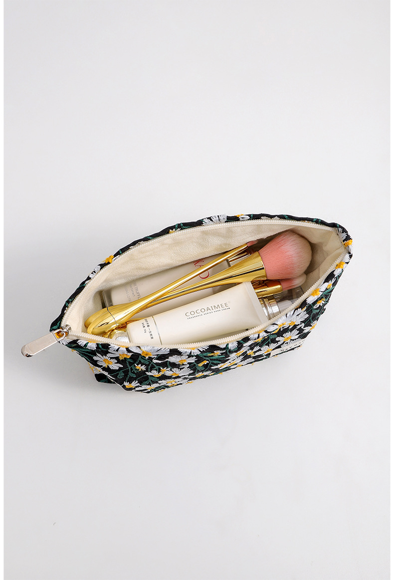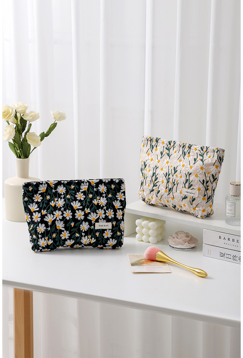 면 자수 꽃무늬 메이크업 브러쉬 화장품 가방 휴대용 여행용품 잡화 대용량 스킨케어 제품 수납 가방