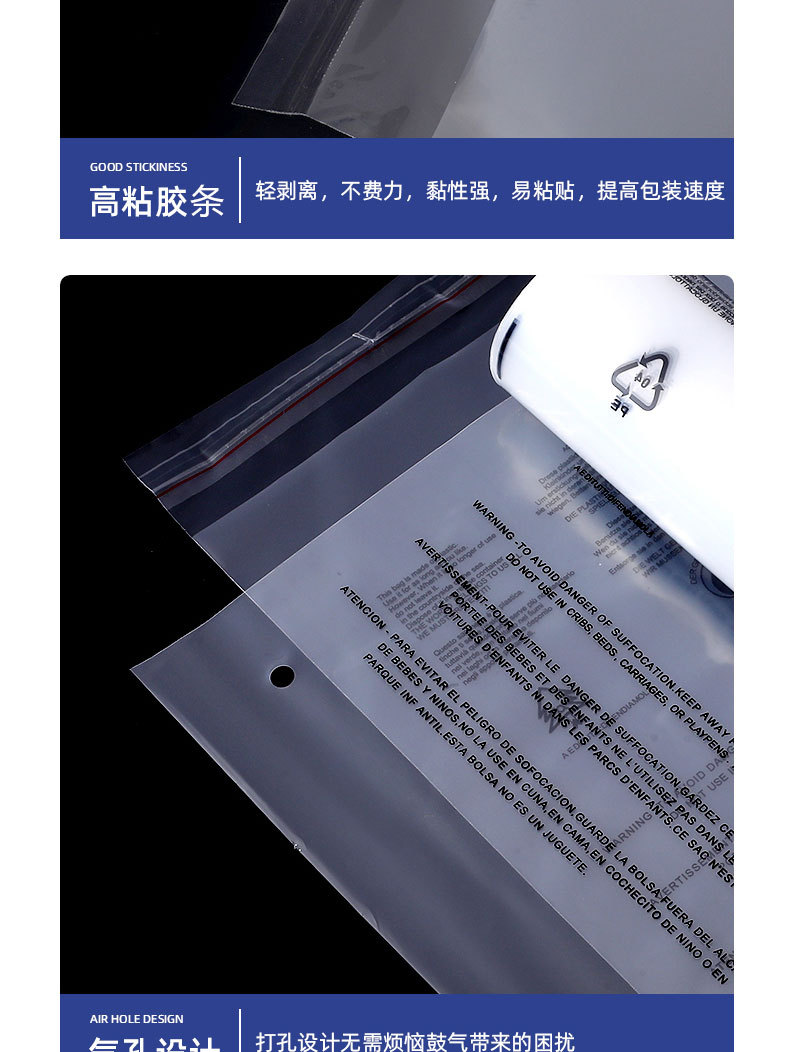 재고 국경 경고 pe 가방 의류 포장 가방 pe 자체 접착 가방 투명 접착 가방 경고 비닐 봉투