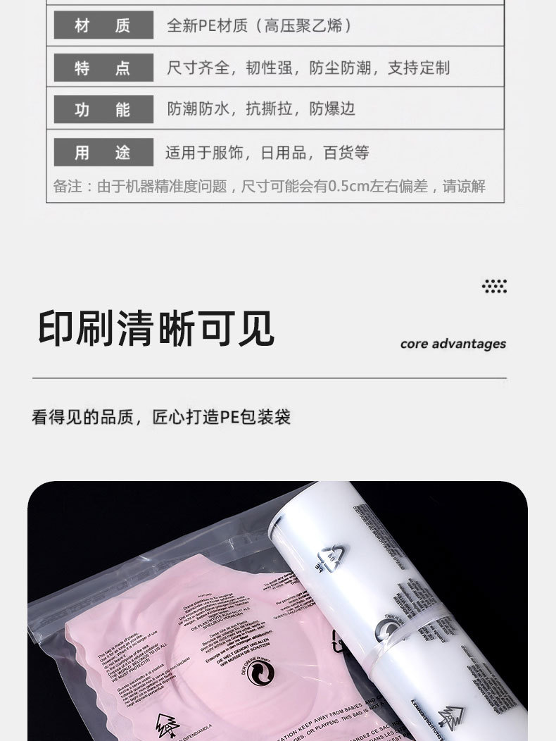 재고 국경 경고 pe 가방 의류 포장 가방 pe 자체 접착 가방 투명 접착 가방 경고 비닐 봉투스토어 가기