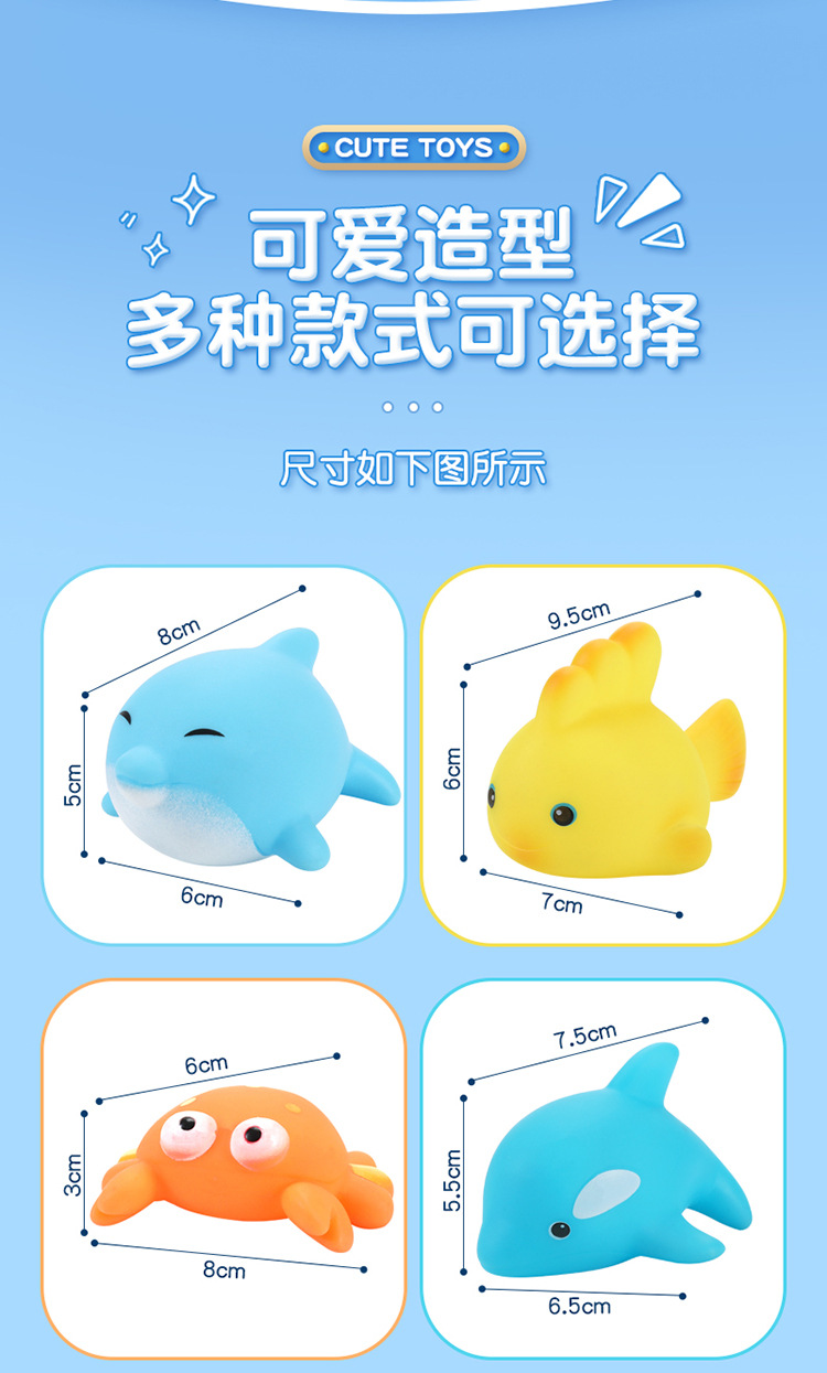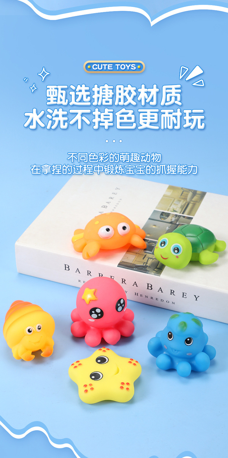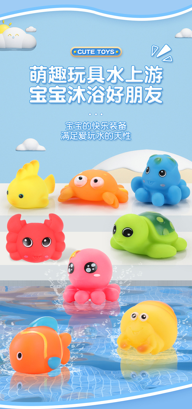 공장 도매 어린이 목욕 장난감 아기 유아 물 부드러운 접착제 핀치 해양 동물 세트 장난감스토어 가기