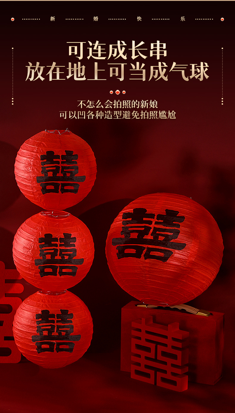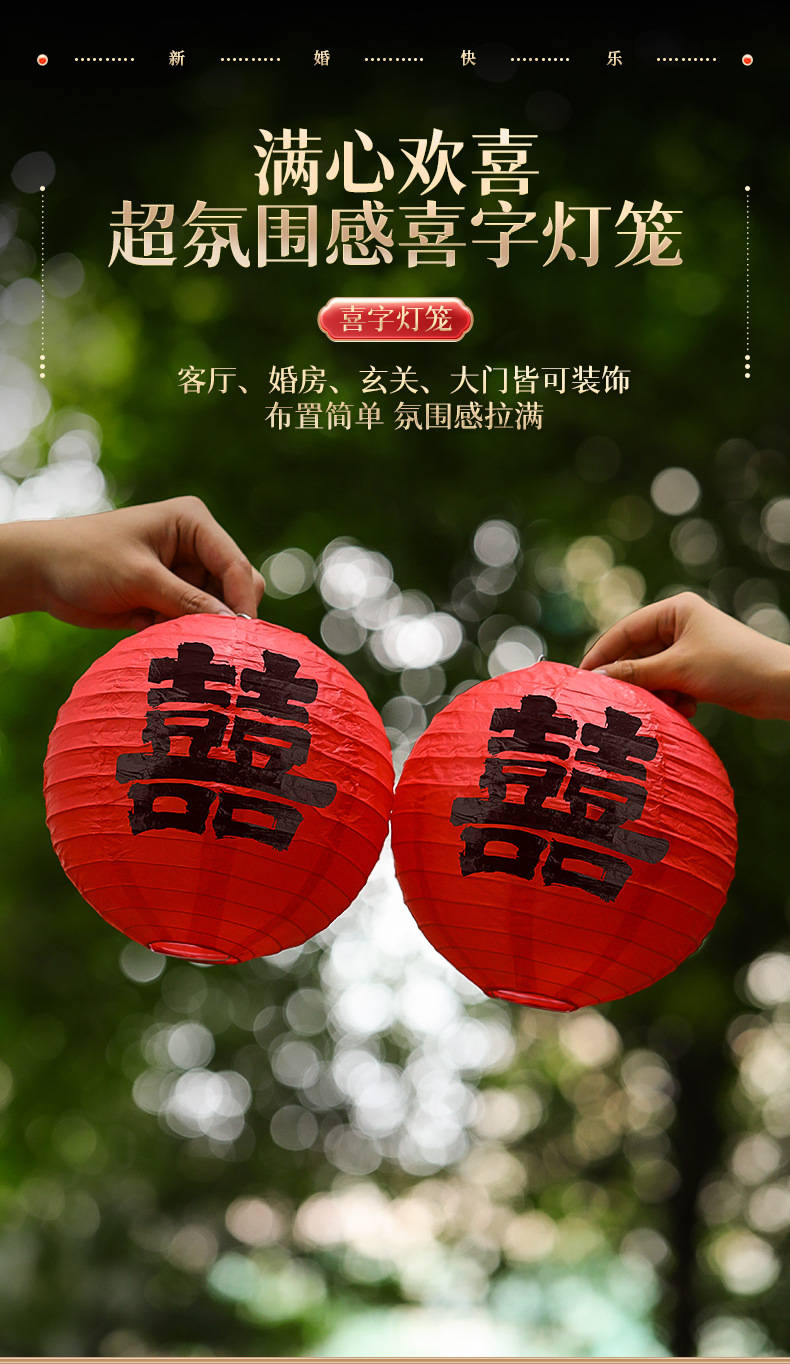 囍字灯笼庭院中式婚礼接亲新娘伴娘拍照道具结婚用品喜庆小红灯笼结婚红色喜字灯笼中式囍字婚礼树挂摆件新娘拍照道具婚房布置装饰