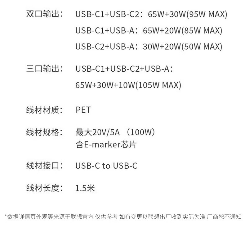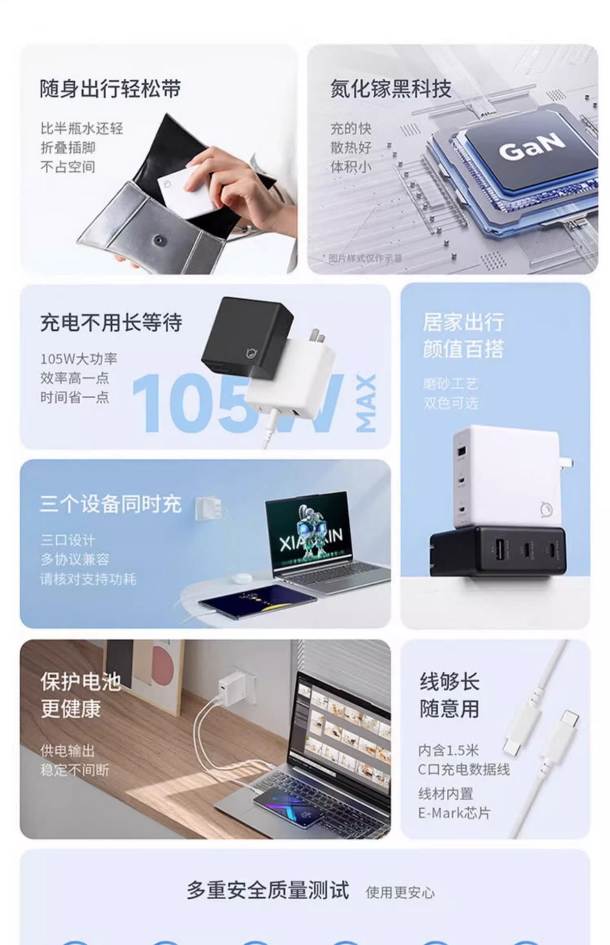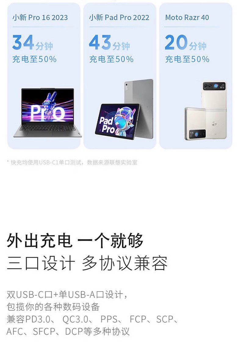 레노버 오리지널 샤오신 105W 3 인터페이스 TYPE-C 갈륨 질화물 전원 어댑터 노트북스토어 가기