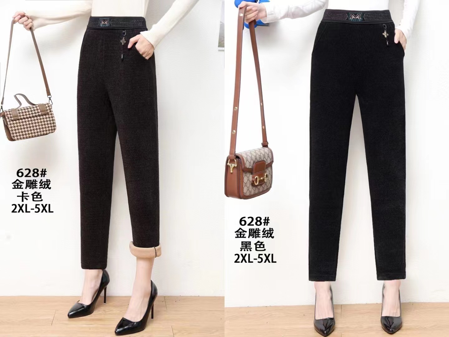여성을위한 골드 에디션 벨벳 캐주얼 바지 2024 새로운 두꺼운 스웨트 팬츠 중년 및 노인 벨벳 바지 방풍 바지 도매스토어 가기