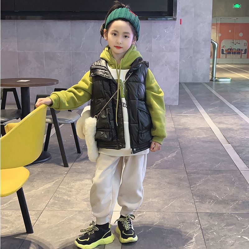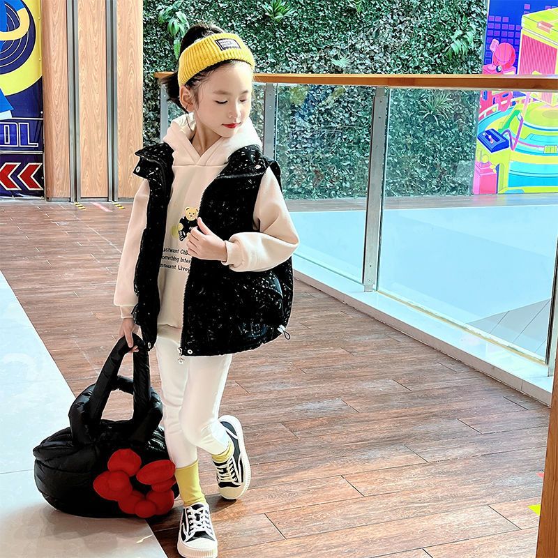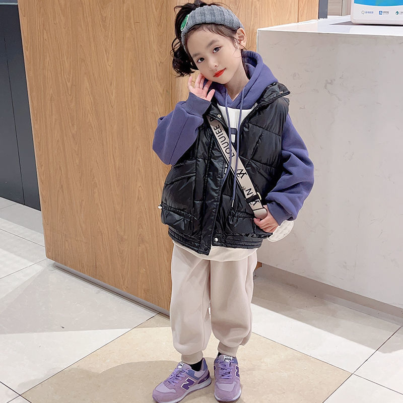 소녀들의 가을과 겨울 다운 코튼 조끼 외부 조끼는 두꺼운 중간 및 큰 어린이 코트 소녀의 세련된 Waistcoat Vest