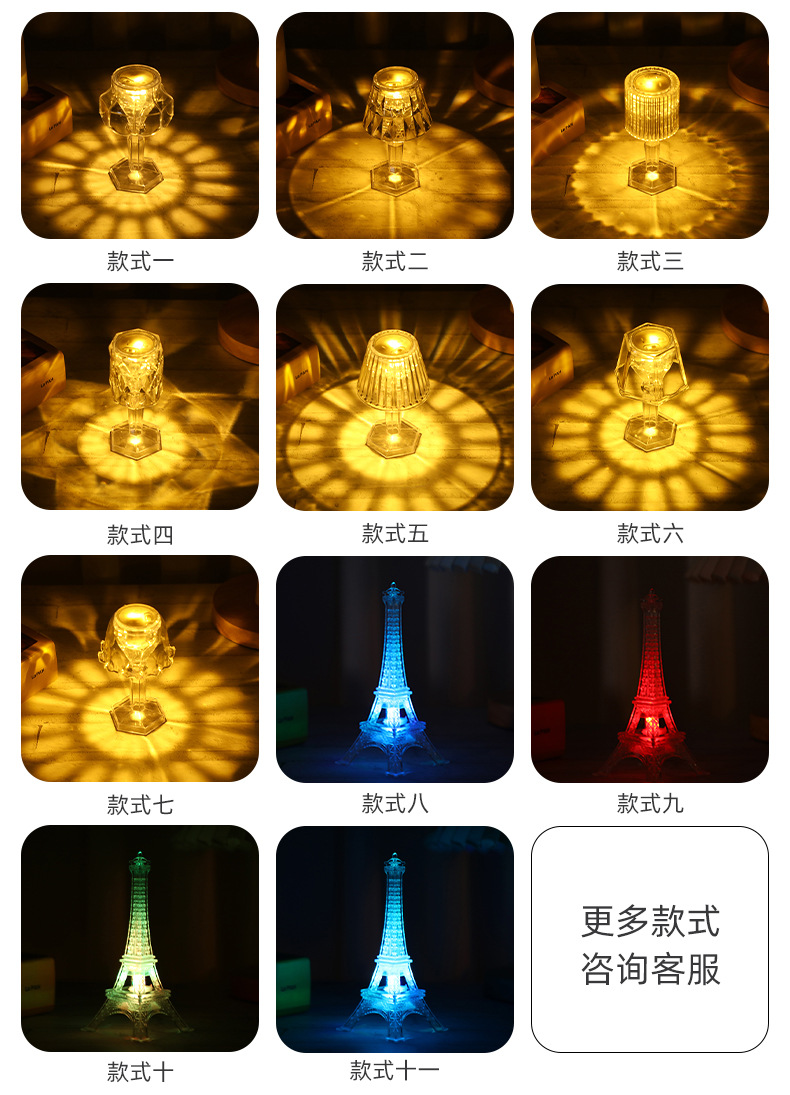 침대 옆 장식 따뜻한 빛 밤 조명 스타일 작은 테이블 램프 LED 발광 전자 파리 타워 분위기 느낌 밤 빛
