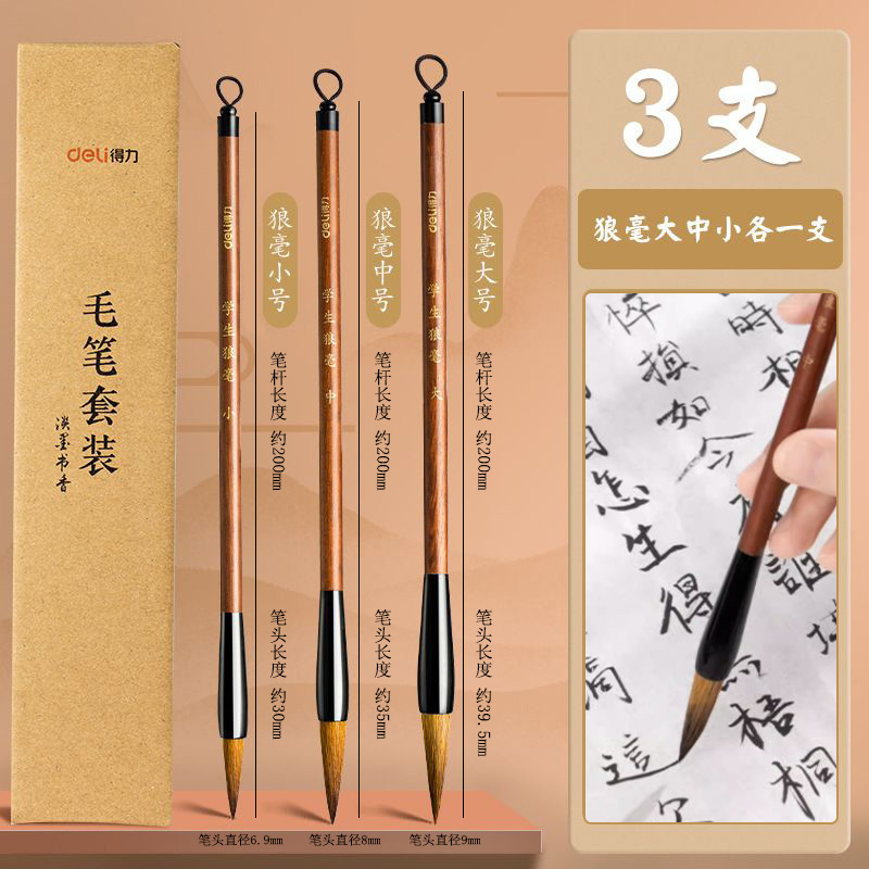 초심자를위한 델리 문구 늑대 브러시 큰 글자 서예 브러시로 작은 글자로 초등학생 세트