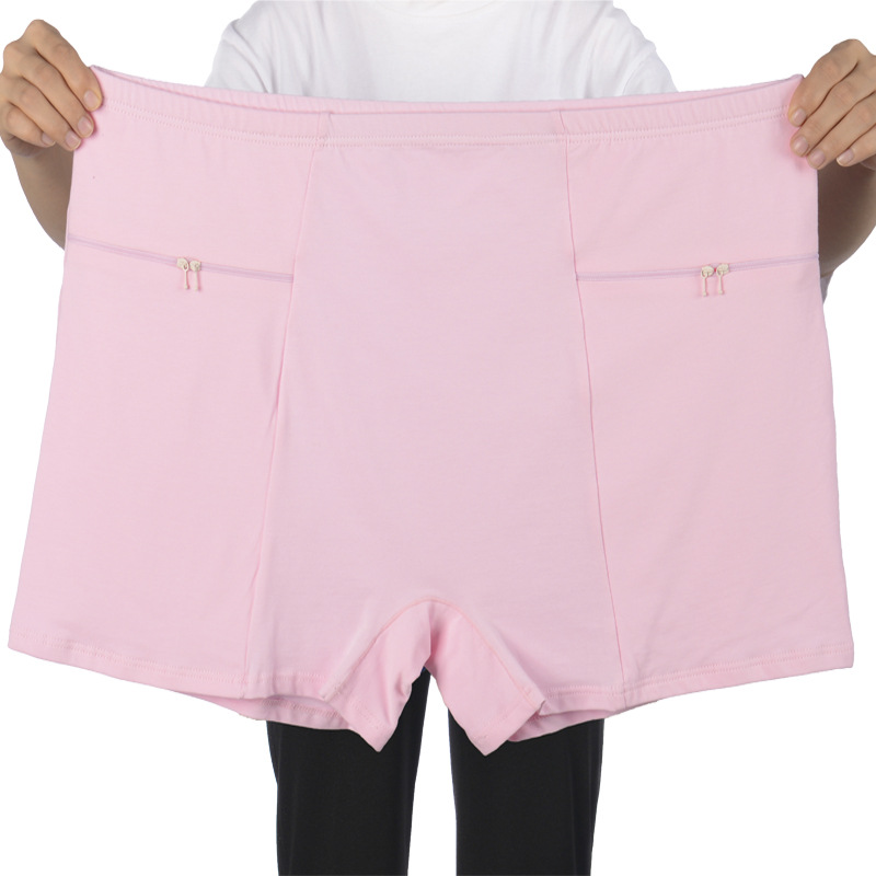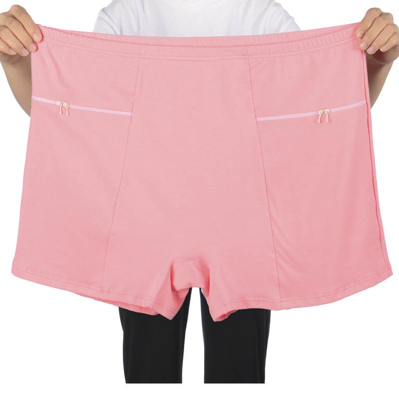 여성용 플러스 사이즈 속옷 플러스 사이즈 높은 허리 도난 방지 속옷 더블 포켓 더블 지퍼 반바지 면 안전 박스