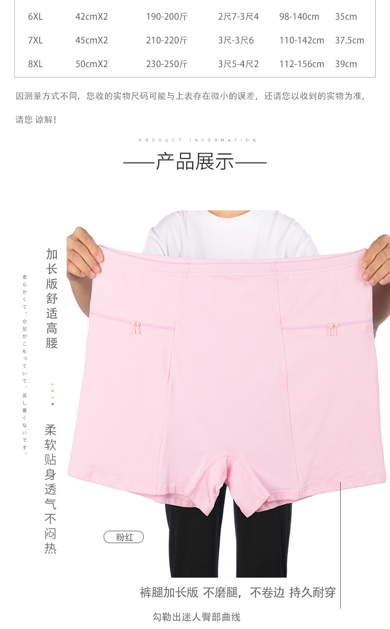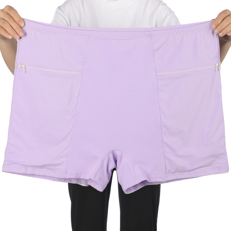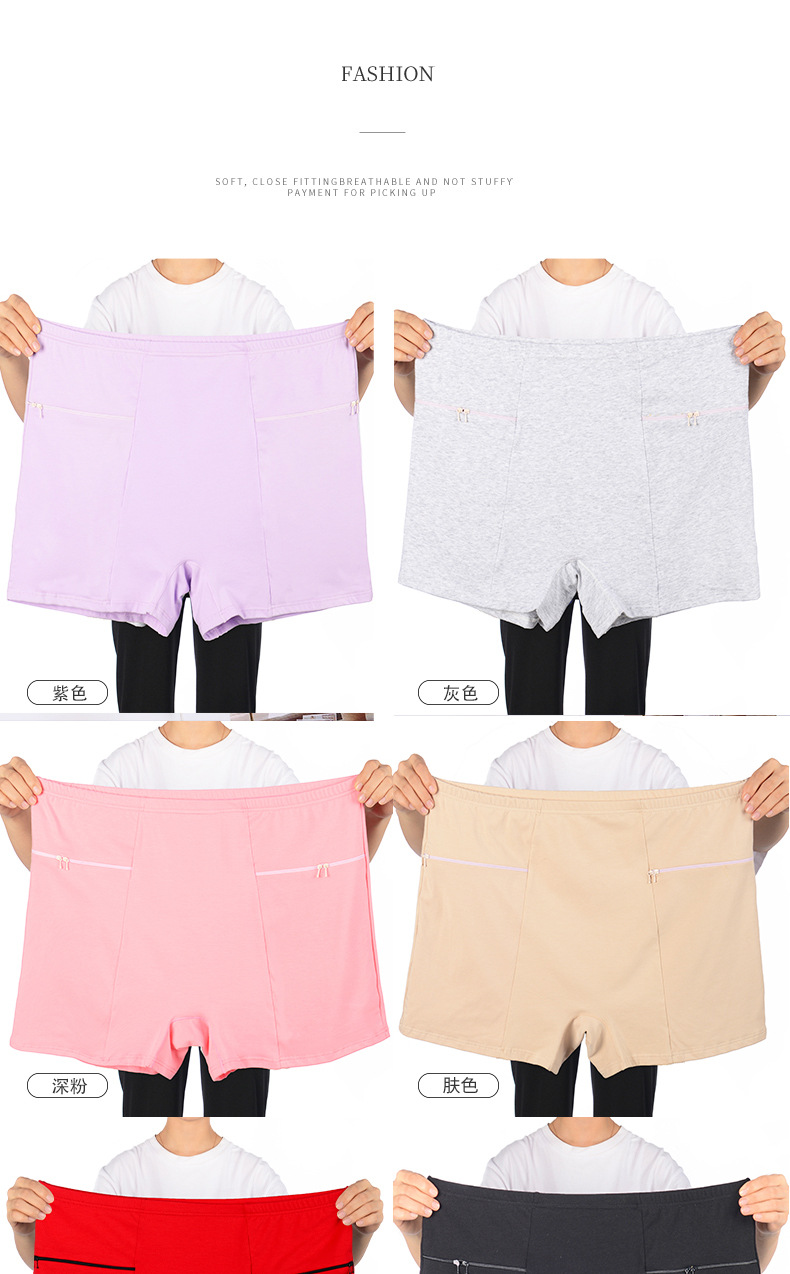 여성용 플러스 사이즈 속옷 플러스 사이즈 높은 허리 도난 방지 속옷 더블 포켓 더블 지퍼 반바지 면 안전 박스스토어 가기