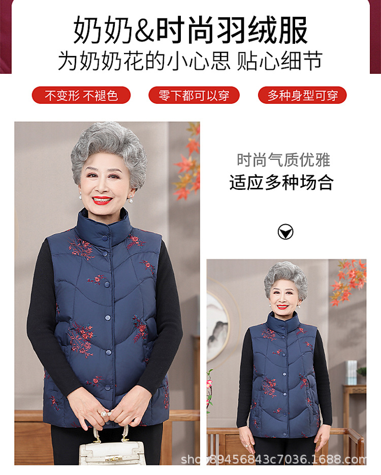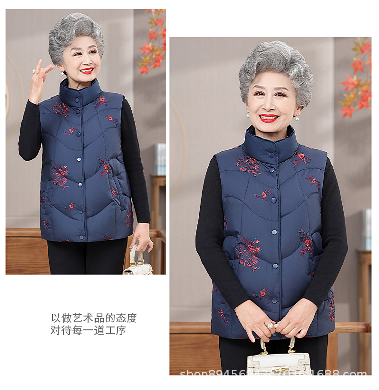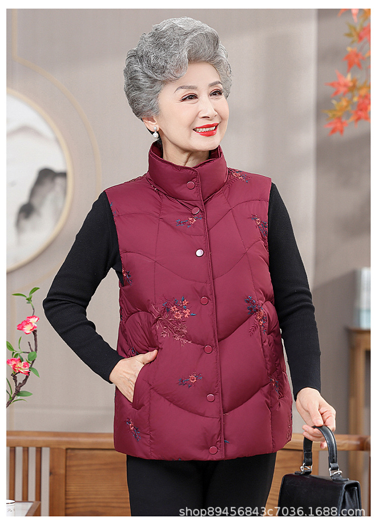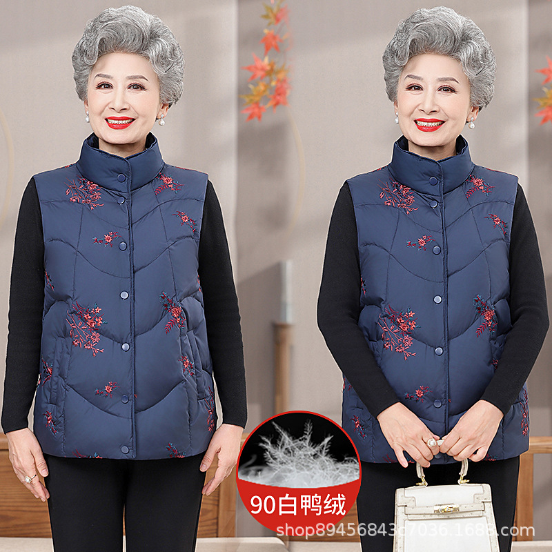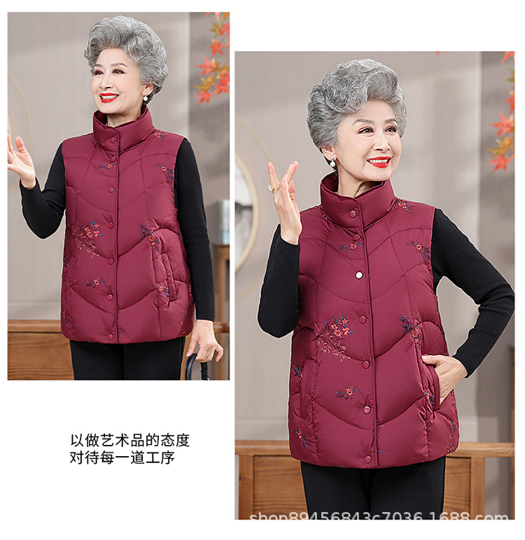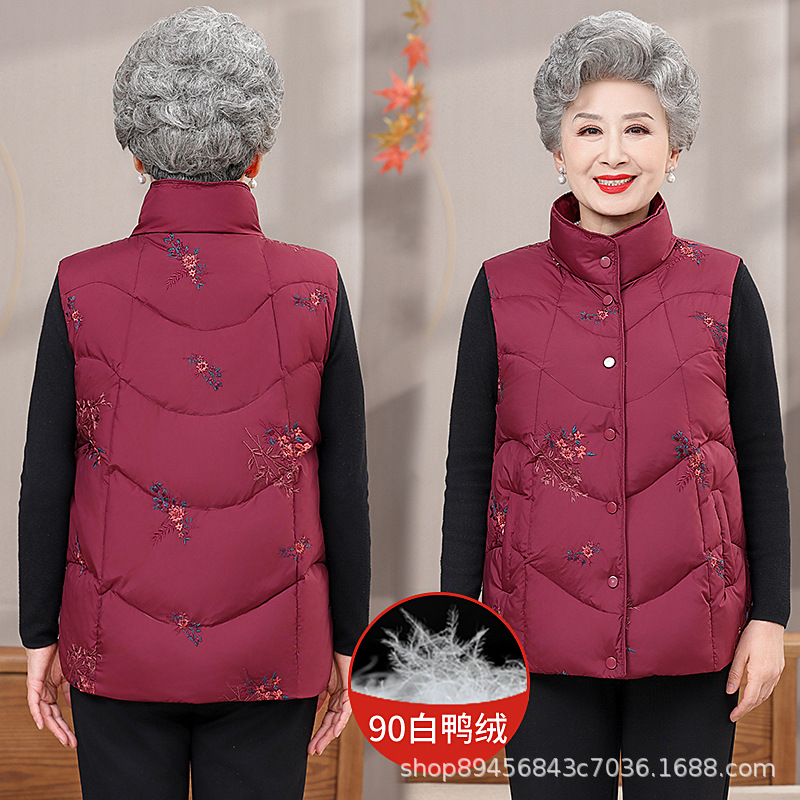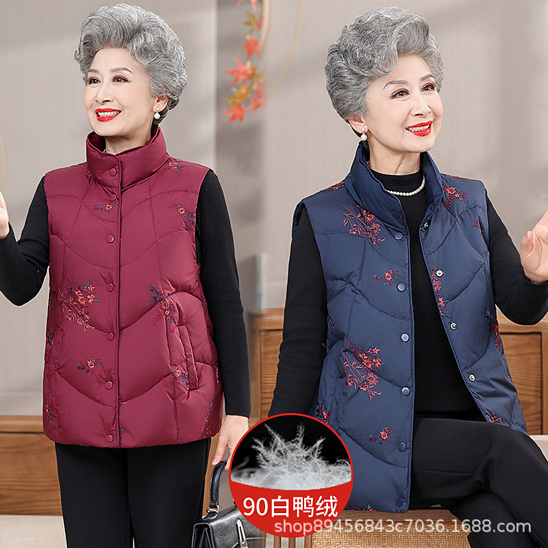 중년 및 노인 할머니를위한 겨울 새로운 흰 오리 다운 코트 엄마 공장을위한 새로운 따뜻한 다운 조끼