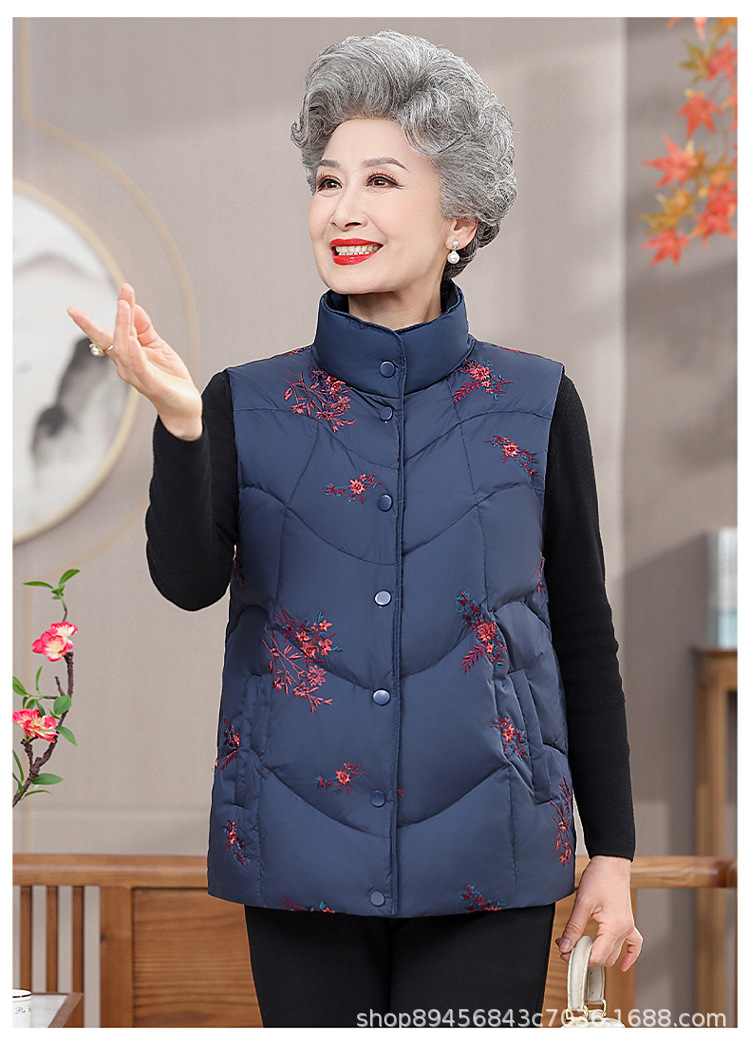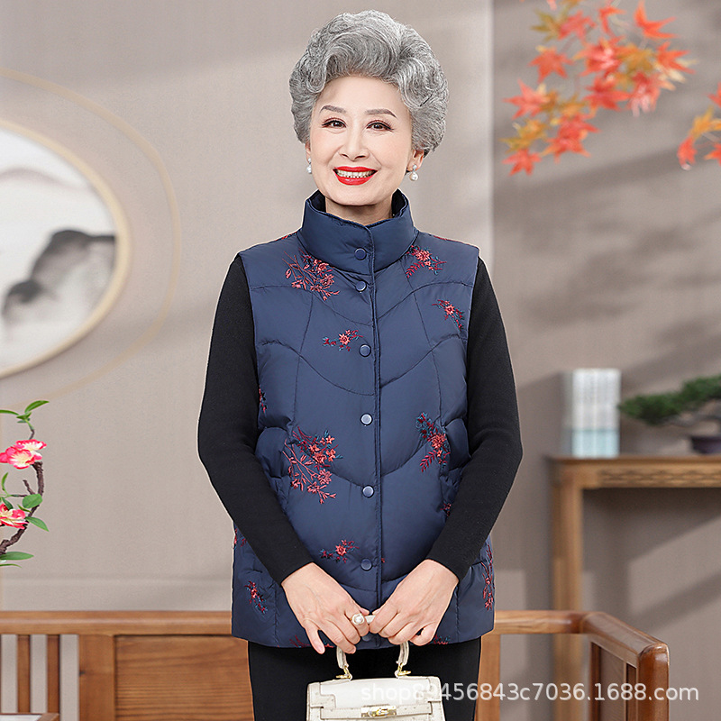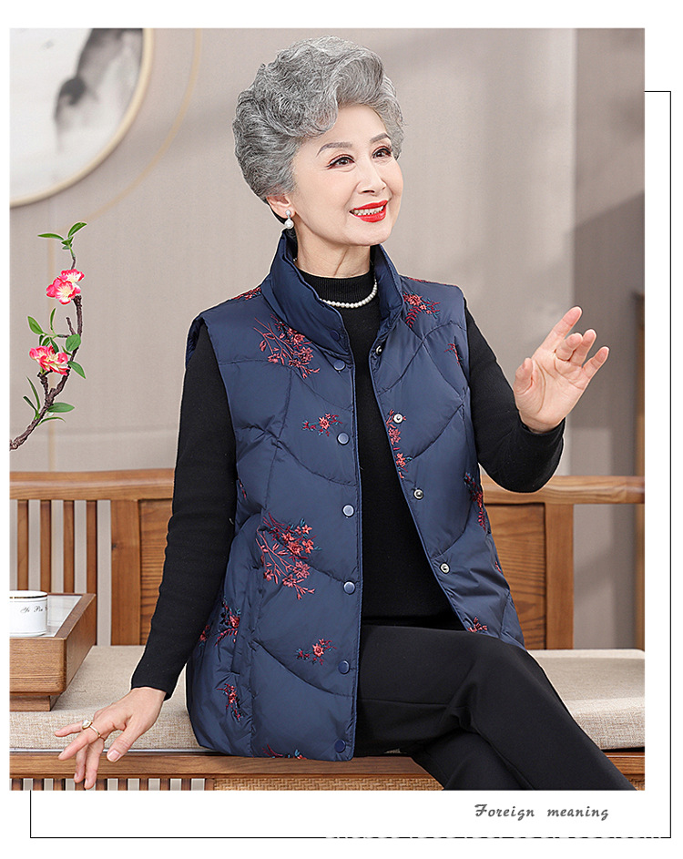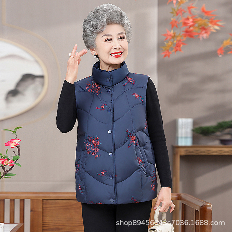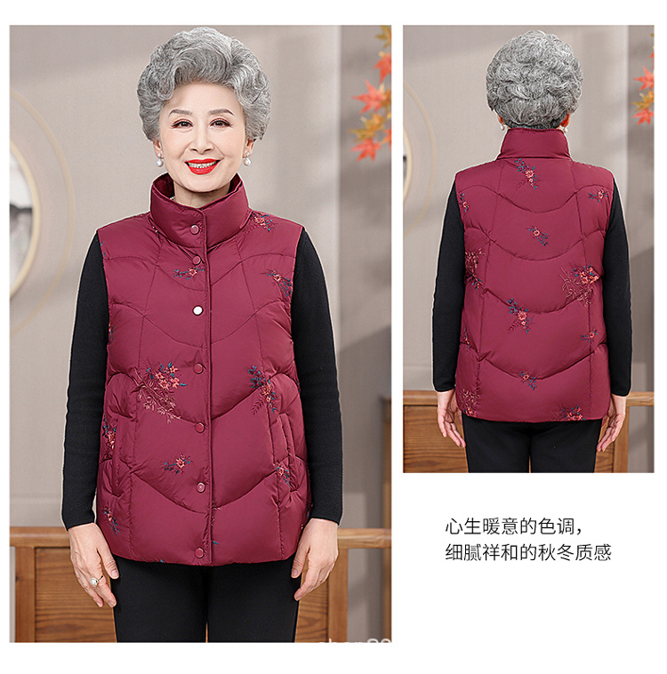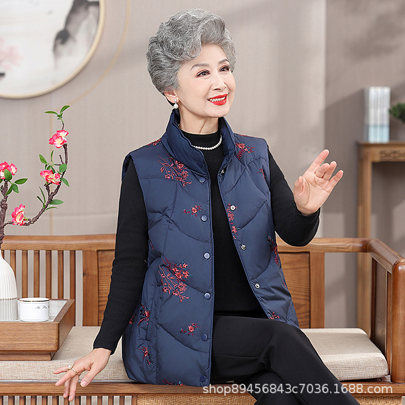 중년 및 노인 할머니를위한 겨울 새로운 흰 오리 다운 코트 엄마 공장을위한 새로운 따뜻한 다운 조끼