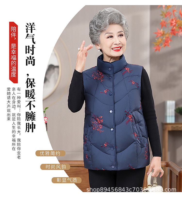 중년 및 노인 할머니를위한 겨울 새로운 흰 오리 다운 코트 엄마 공장을위한 새로운 따뜻한 다운 조끼스토어 가기