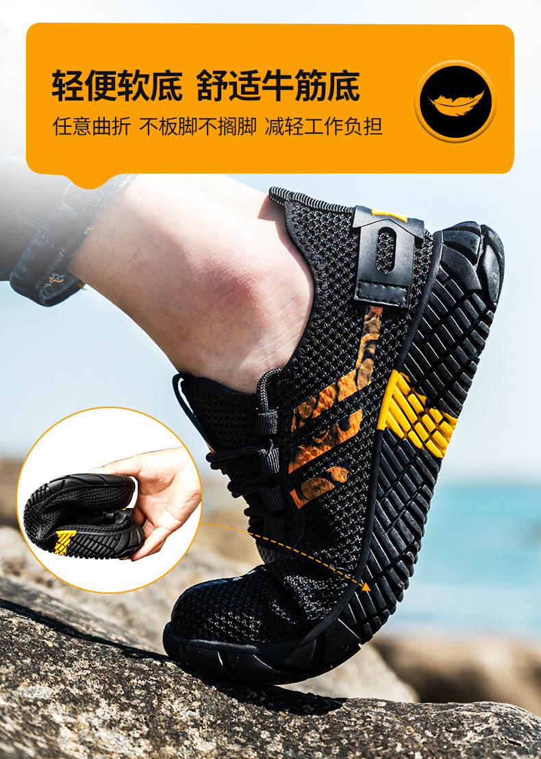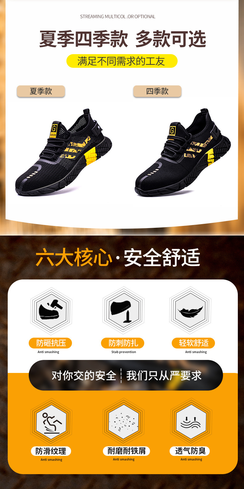 노동 보호 신발 남성 스매싱 방지 피어싱 마모 사계절 편안한 경량 미끄럼 방지 안전 건설 현장 작업 보호 신발 국경스토어 가기