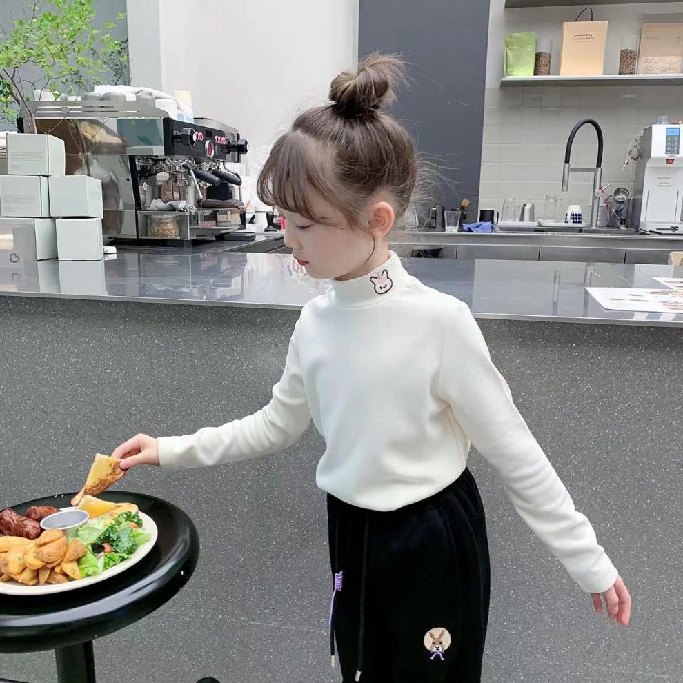 소녀베이스 셔츠 두껍게 양면 양털 반쪽 칼라 아기의 긴팔 티셔츠 서양식 중대형 어린이 안쪽 따뜻한 탑스토어 가기