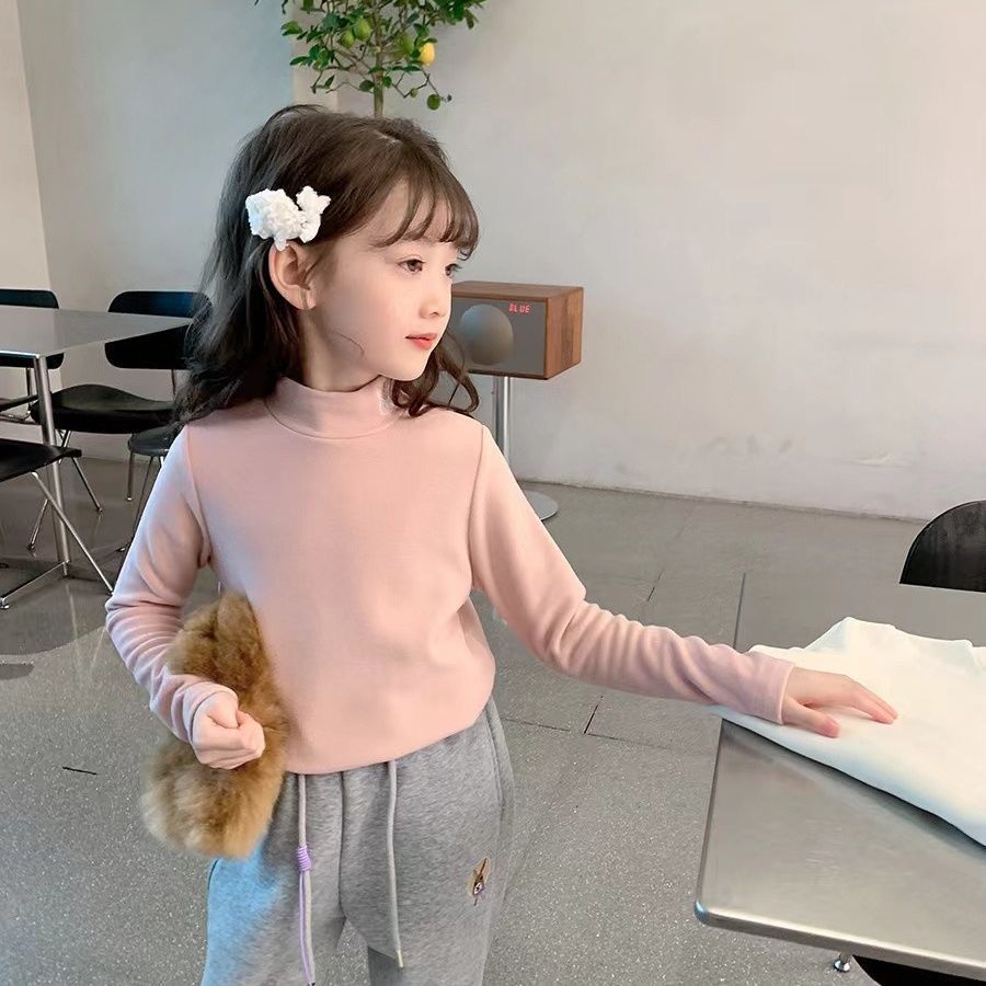 소녀베이스 셔츠 두껍게 양면 양털 반쪽 칼라 아기의 긴팔 티셔츠 서양식 중대형 어린이 안쪽 따뜻한 탑