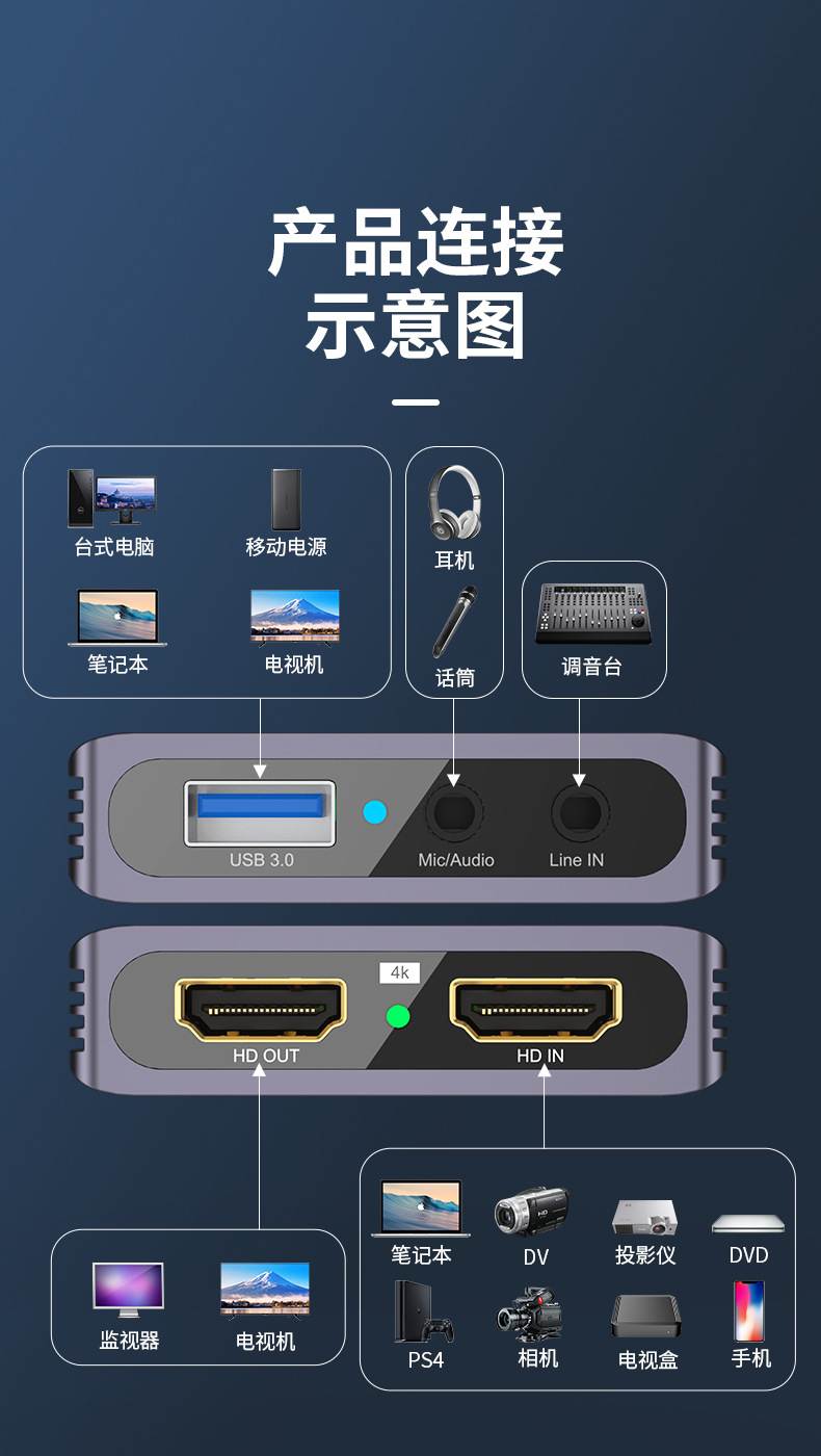 게임 카메라 라이브 녹화 USB3.0/4K 고화질 휴대폰 노트북 HDMI 비디오 캡처 카드스토어 가기