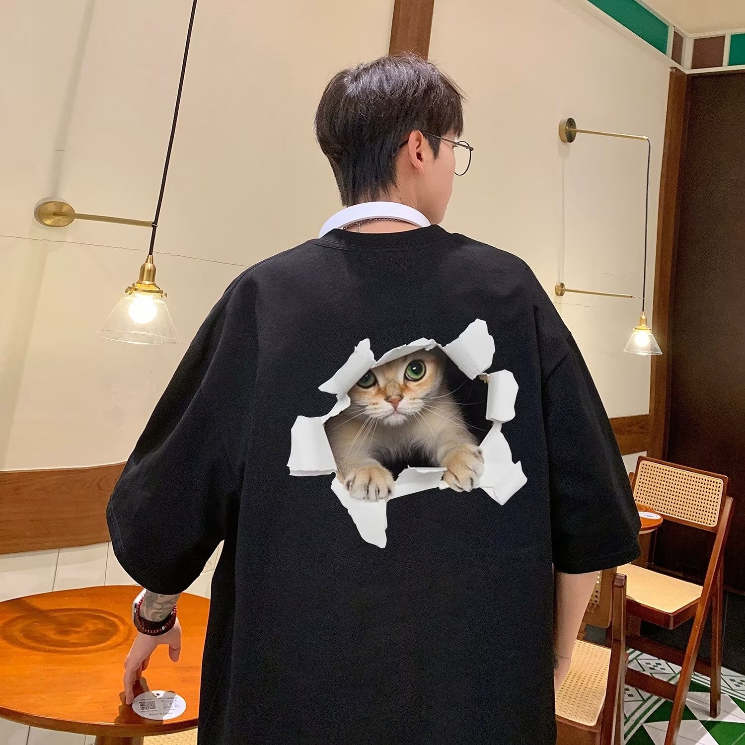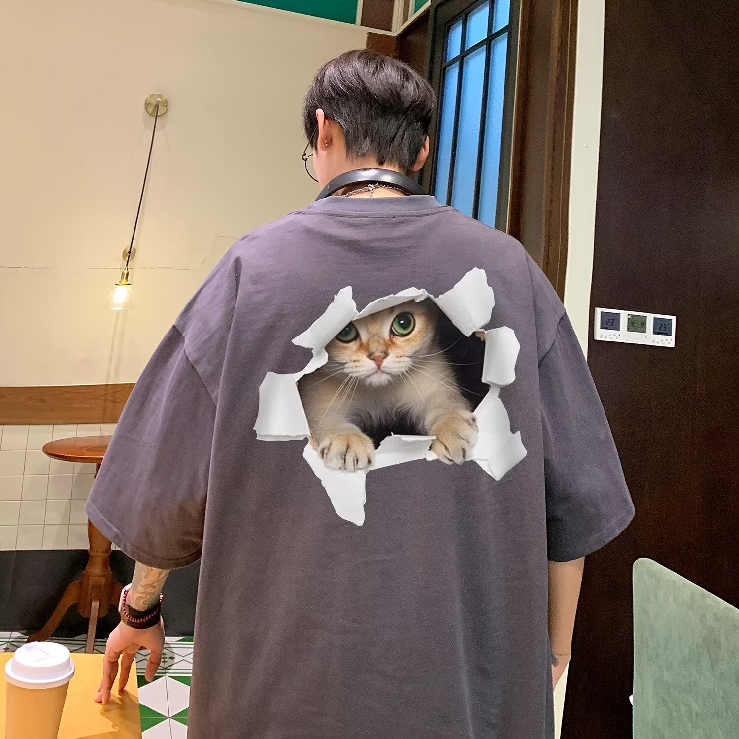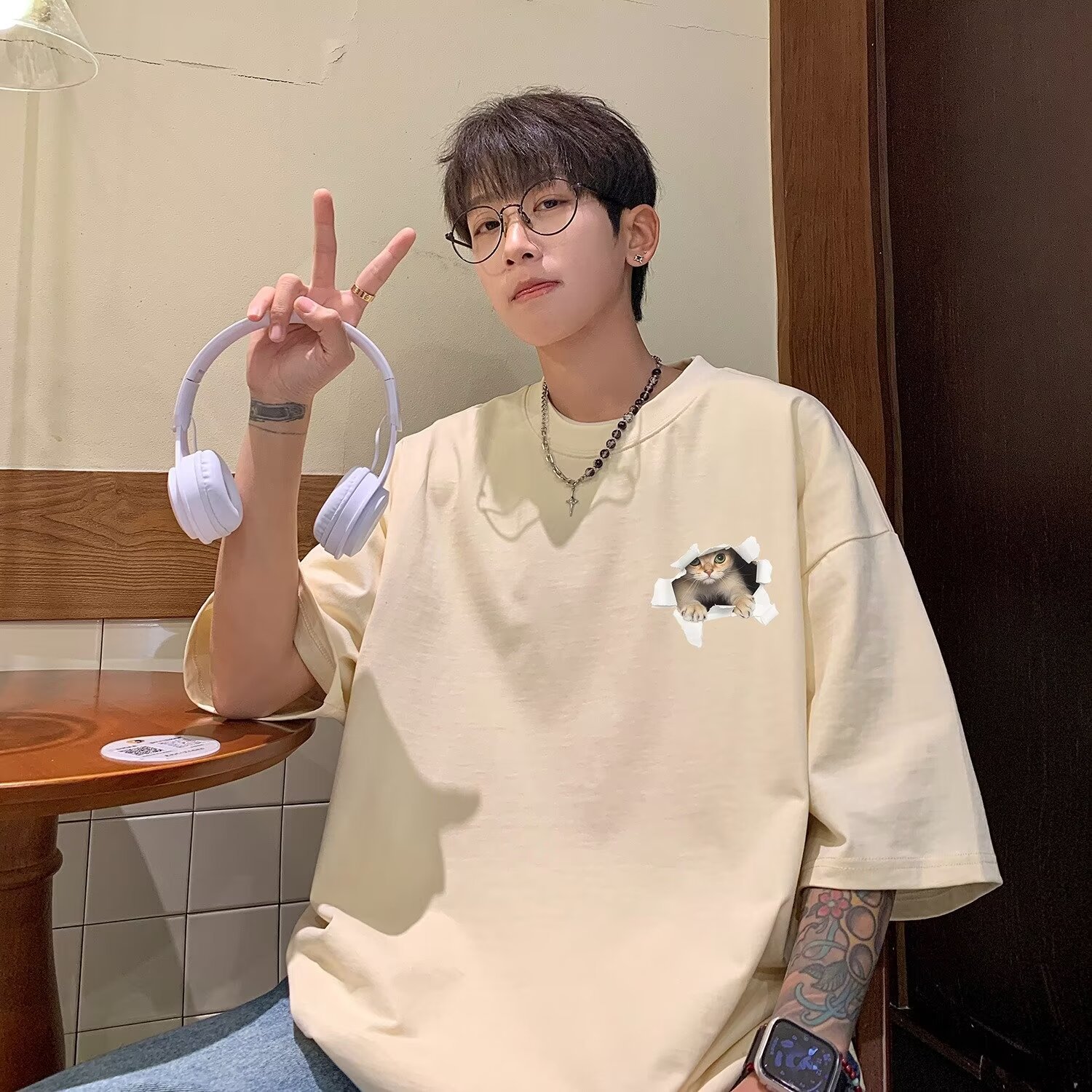 여름 홍콩 스타일 악마 스마일리 반팔 티셔츠 남성용 패셔너블 루즈 커플의 반소매 일본 캐주얼 올 매치 티셔츠스토어 가기