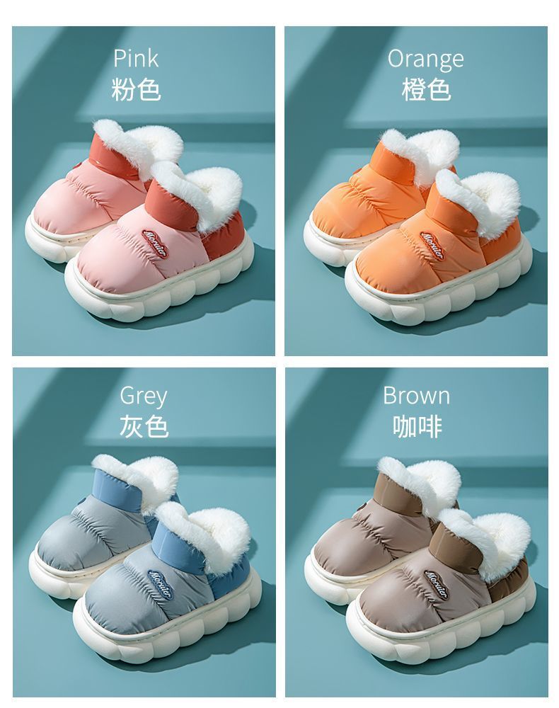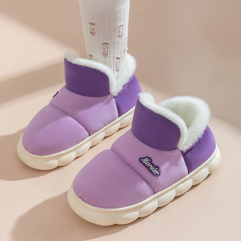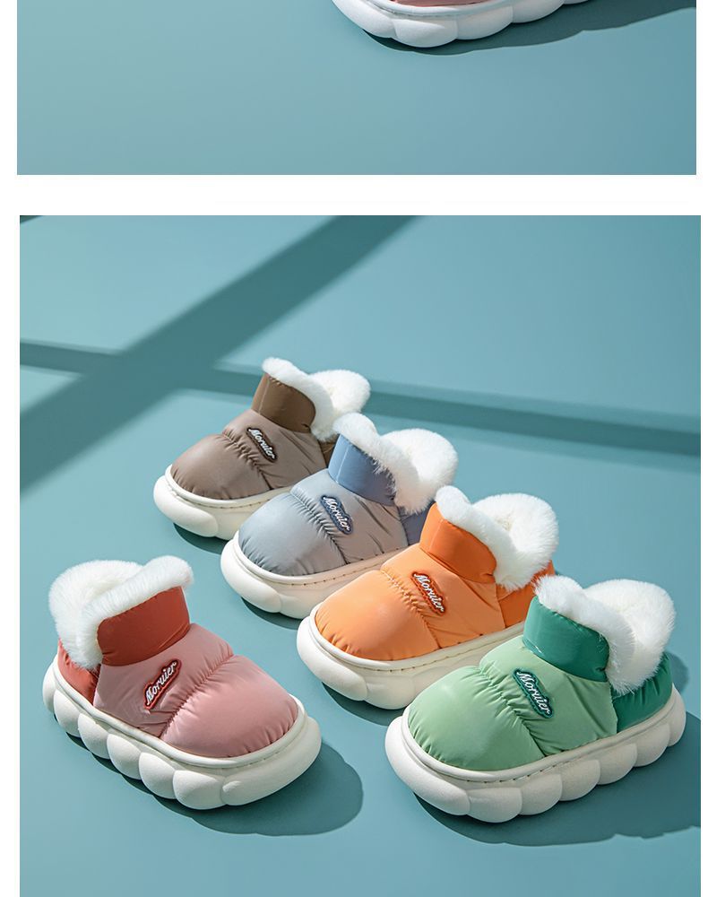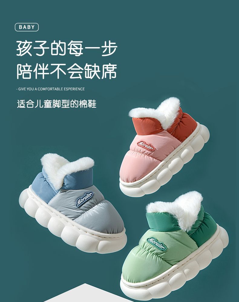 겨울 어린이 면화 슬리퍼 발 뒤꿈치 부모 자식 면화 신발 더 나이 많은 아이들이 따뜻한 기모 두꺼운 미끄럼 방지 방수 신발 집스토어 가기
