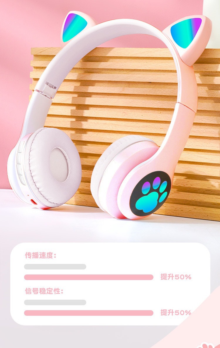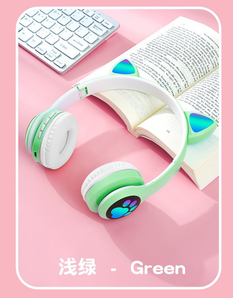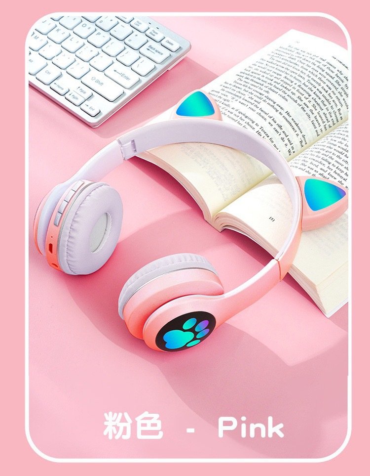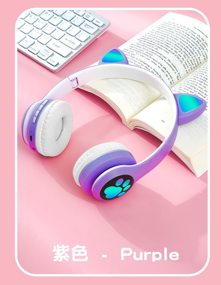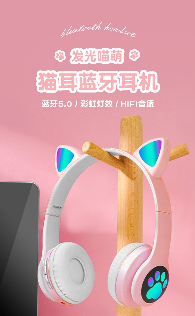 VIV-23M 고양이 귀 블루투스 헤드셋 빛나는 고양이 발톱 카드 무선 음악 헤드 장착형 스테레오 블루투스 5.4