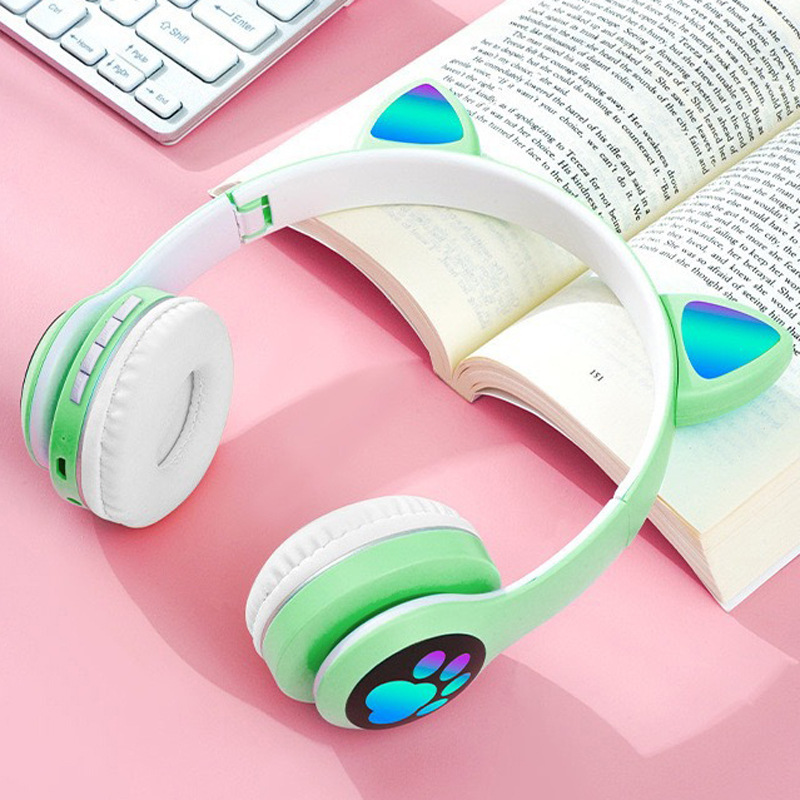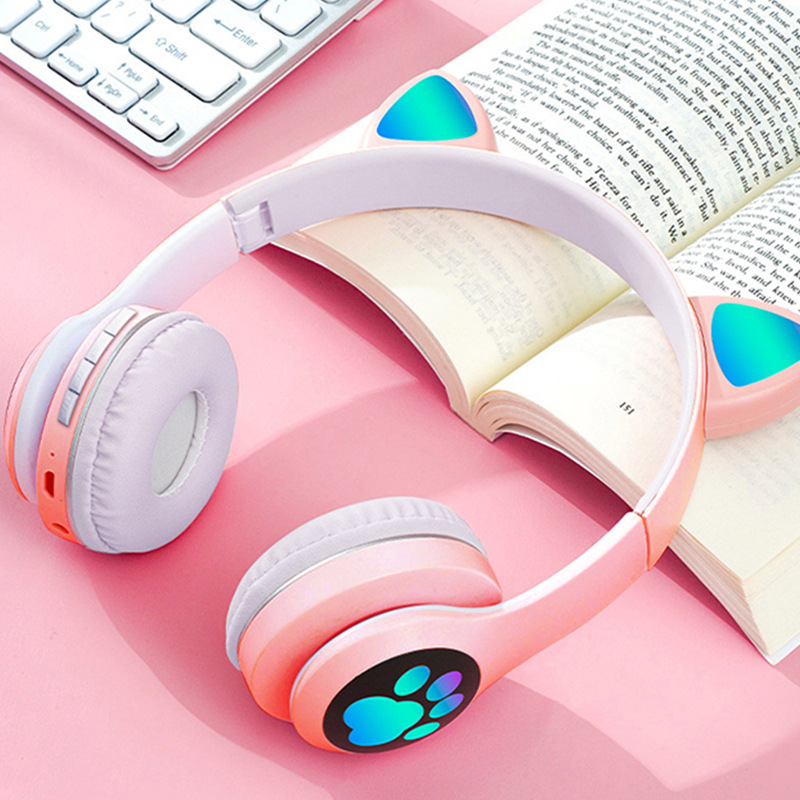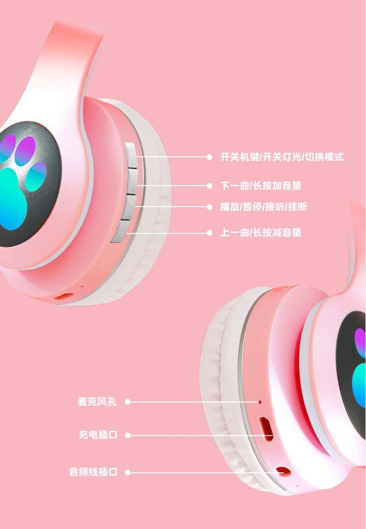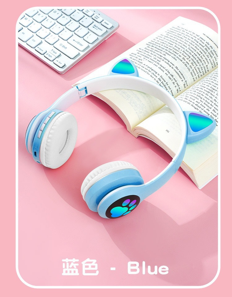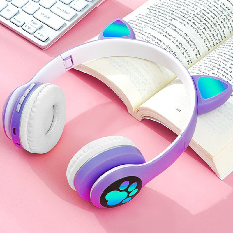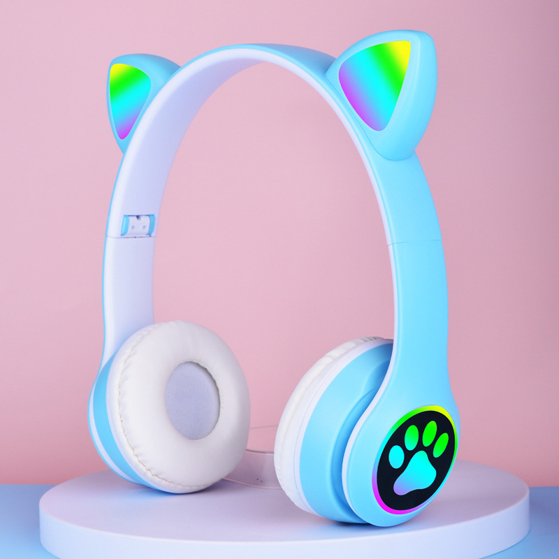 VIV-23M 고양이 귀 블루투스 헤드셋 빛나는 고양이 발톱 카드 무선 음악 헤드 장착형 스테레오 블루투스 5.4