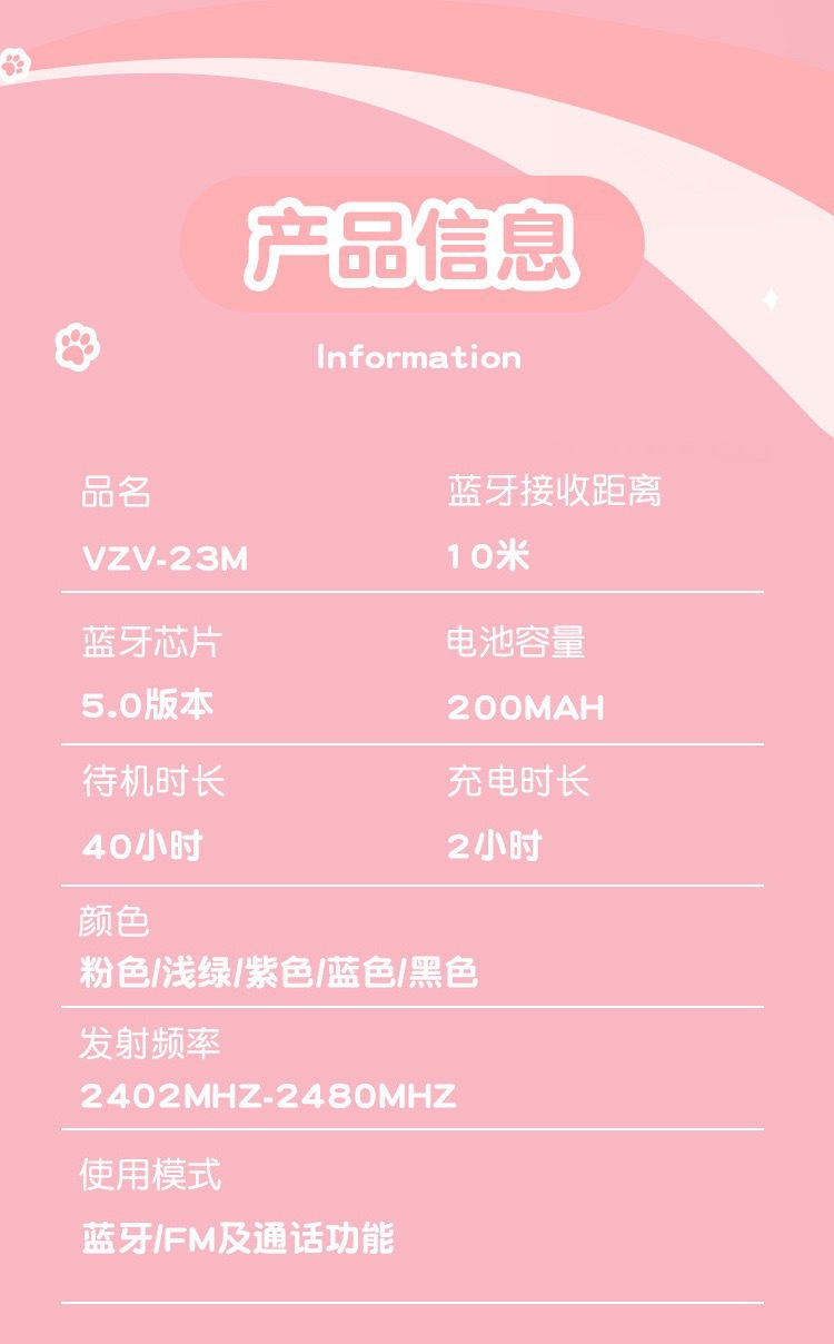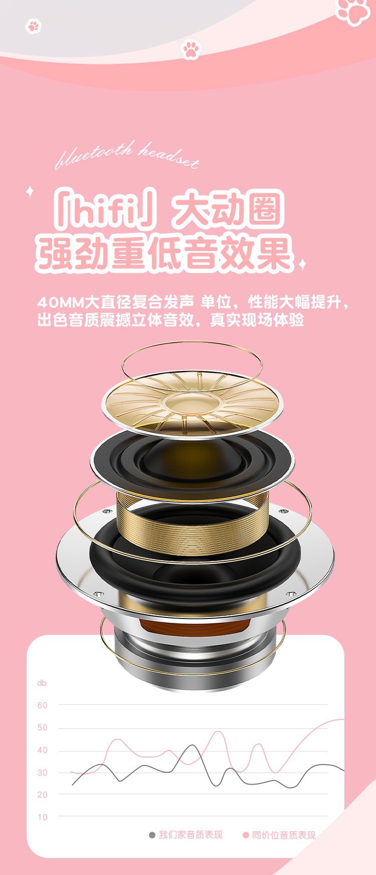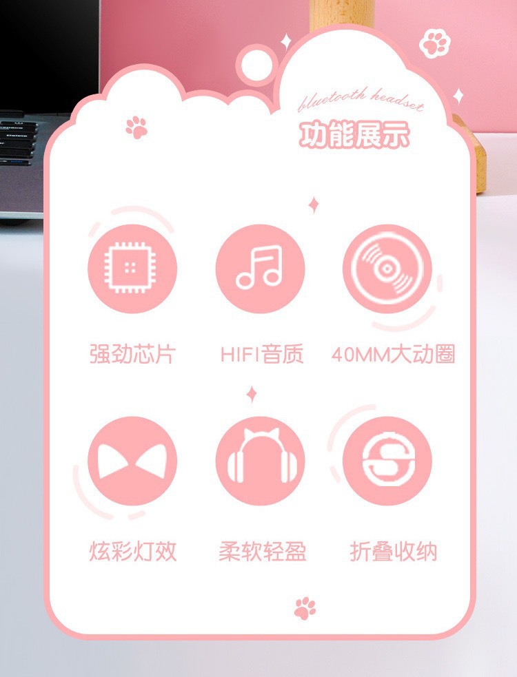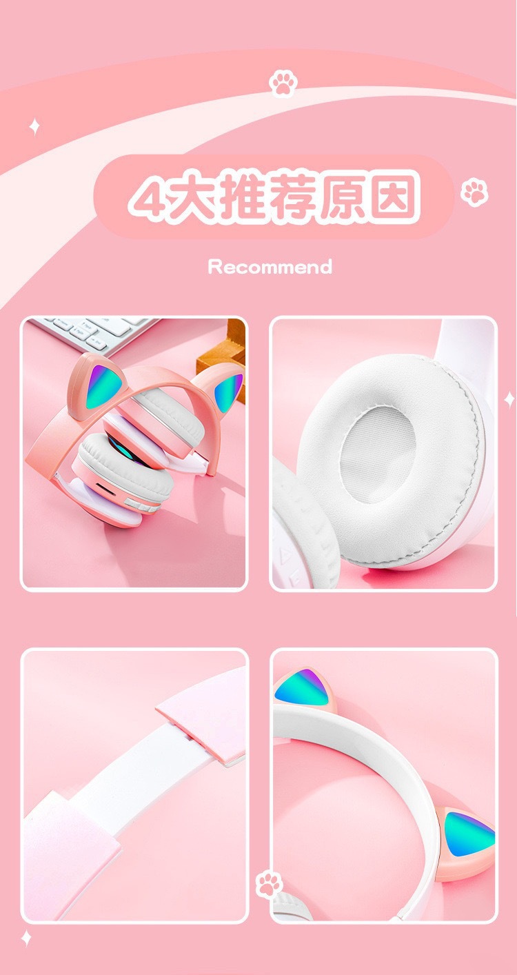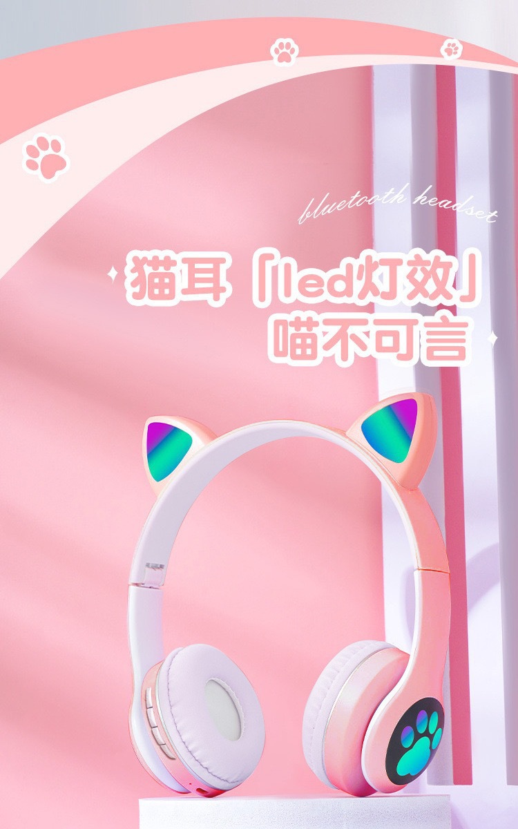 VIV-23M 고양이 귀 블루투스 헤드셋 빛나는 고양이 발톱 카드 무선 음악 헤드 장착형 스테레오 블루투스 5.4스토어 가기