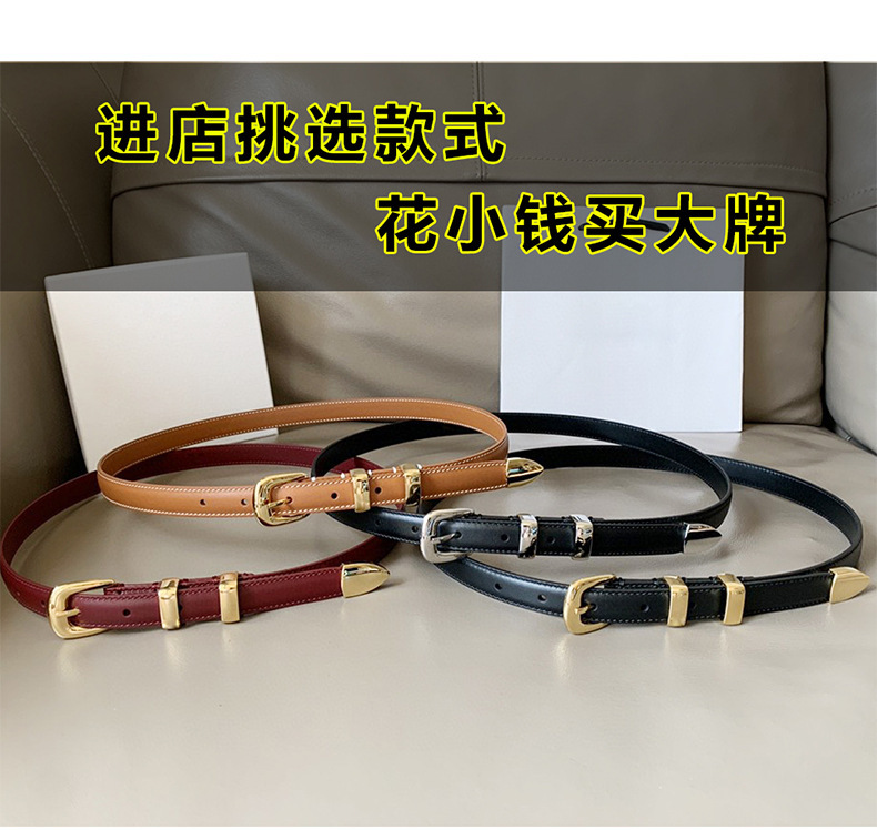 새로운 개선문 1.8cm 첫 번째 레이어 정품 가죽 핀 버클 벨트 여성의 높은 허리 유행 인터넷 유명 인사 얇은 벨트 여성의 간단한스토어 가기