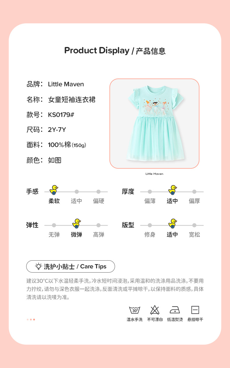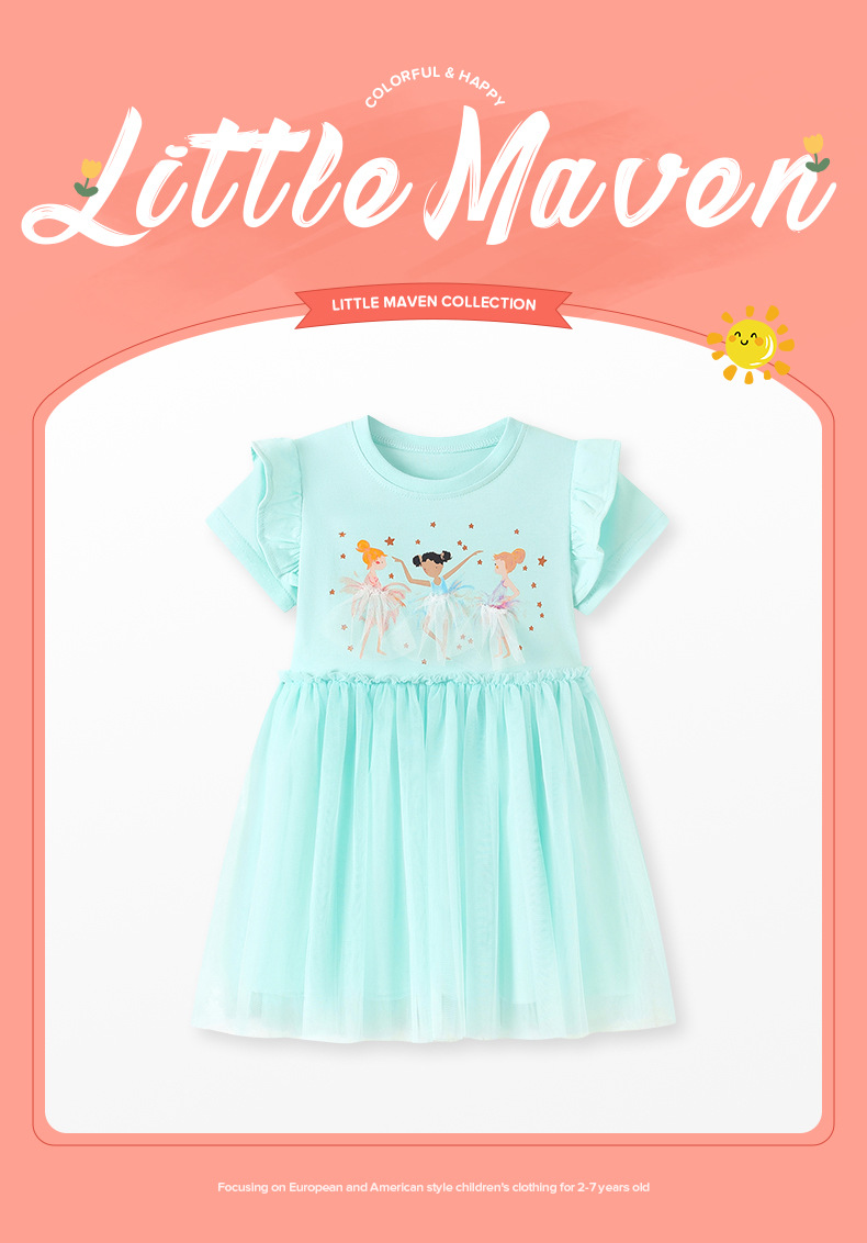 작은 maven 유럽과 미국 스타일의 메쉬 공주 스커트 여름 만화 소녀 치마 짧은 소매 면화 어린이 원피스스토어 가기