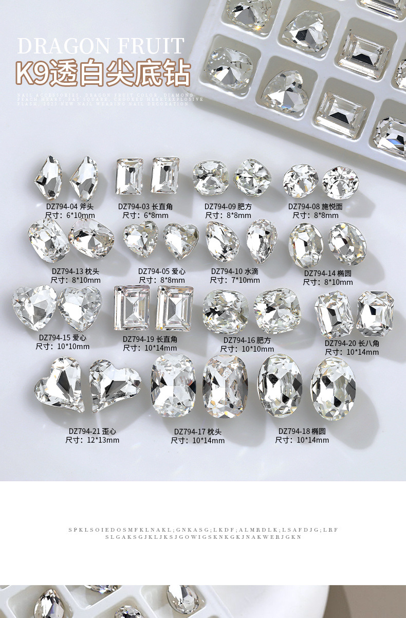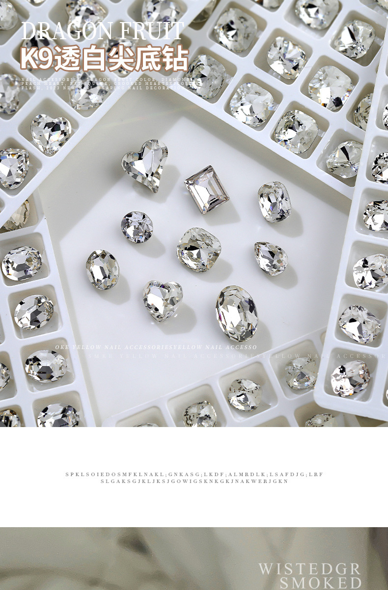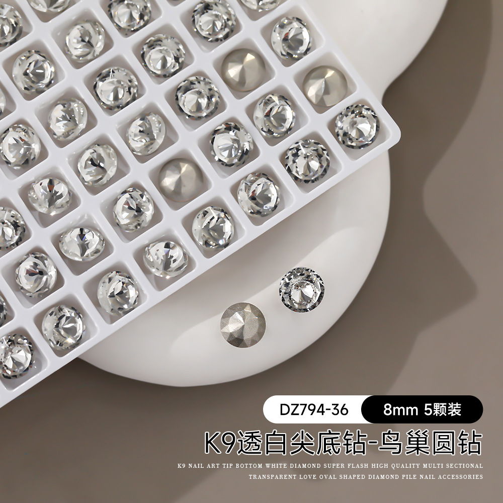 고품질 화이트 네일 드릴 K9 플랫 플래시 록 설탕 더미 드릴 특수 모양의 드릴 작은 다이아몬드 볼 지적 네일 쥬얼리