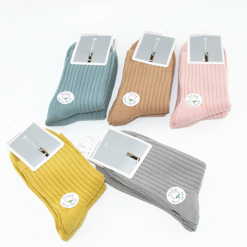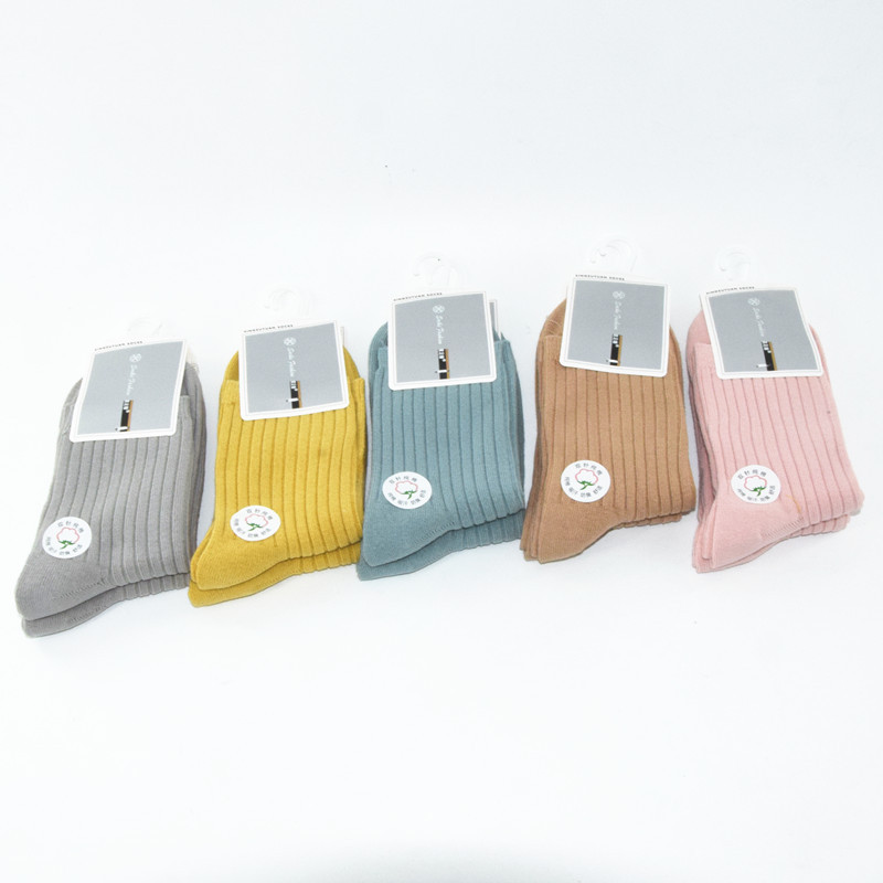 도매 여성의 중간 송아지 북동쪽 양말 단색 더블 바늘 패션 캔디 컬러 양말 가을과 겨울 줄무늬 양말 새로운스토어 가기