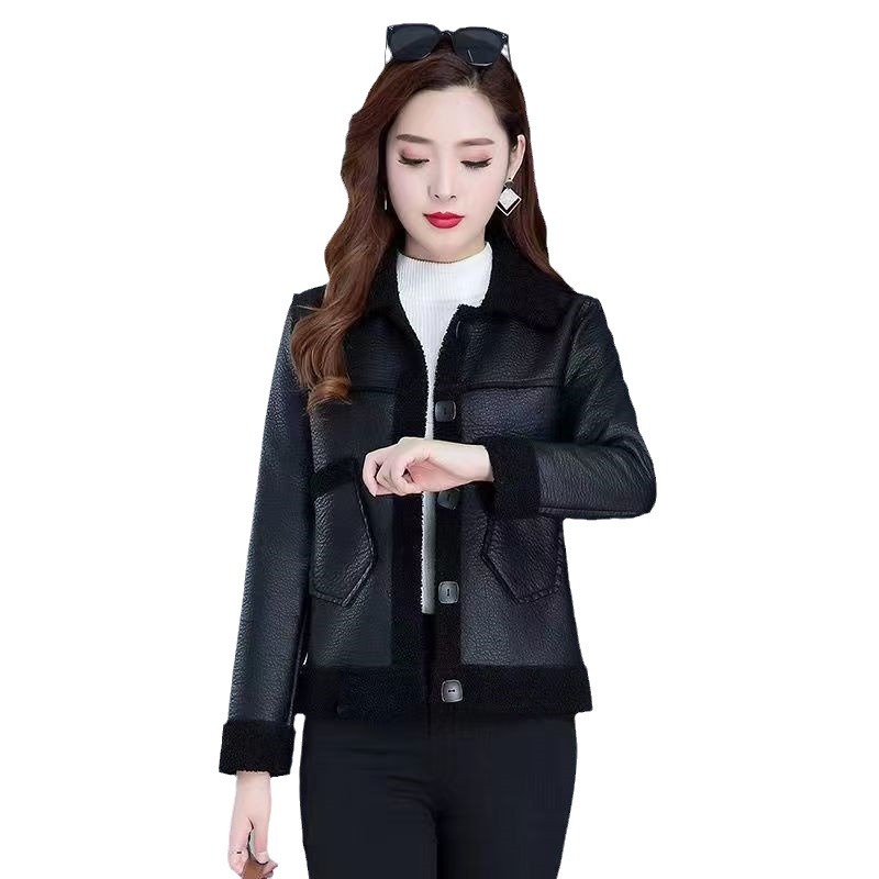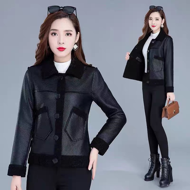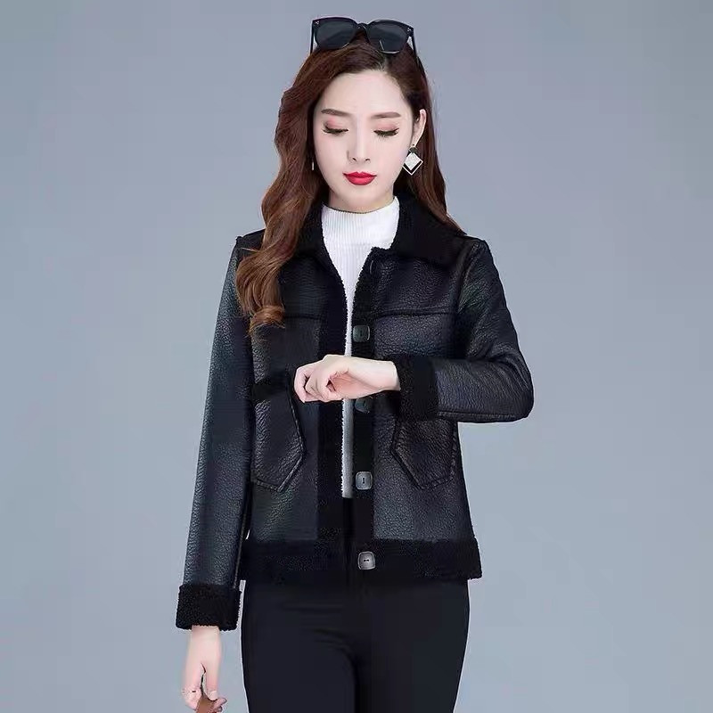 테디 벨벳 여성 짧은 코트 가죽 코트 2023 새로운 가을과 겨울 패션 가죽 자켓 중년 및 노인 어머니스토어 가기