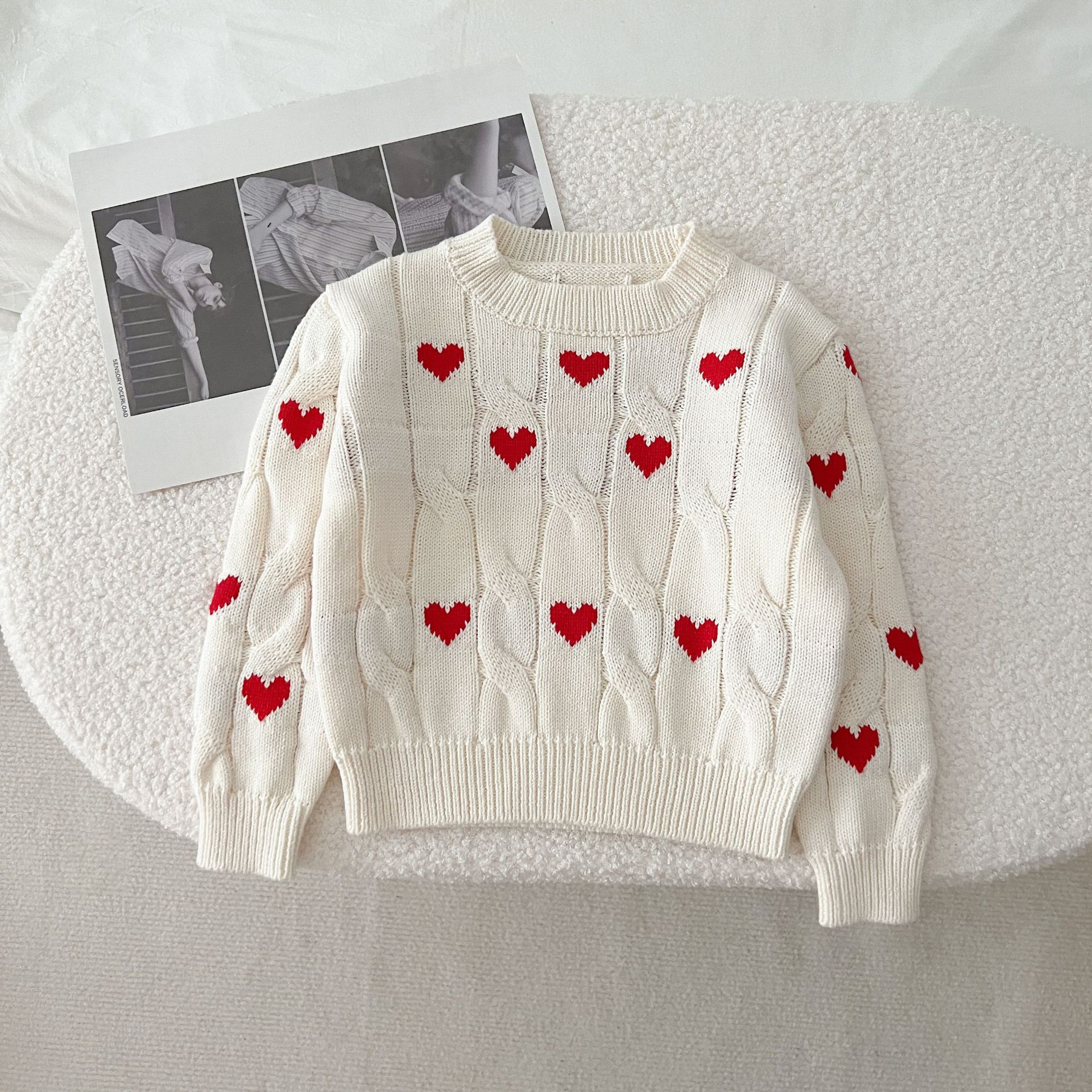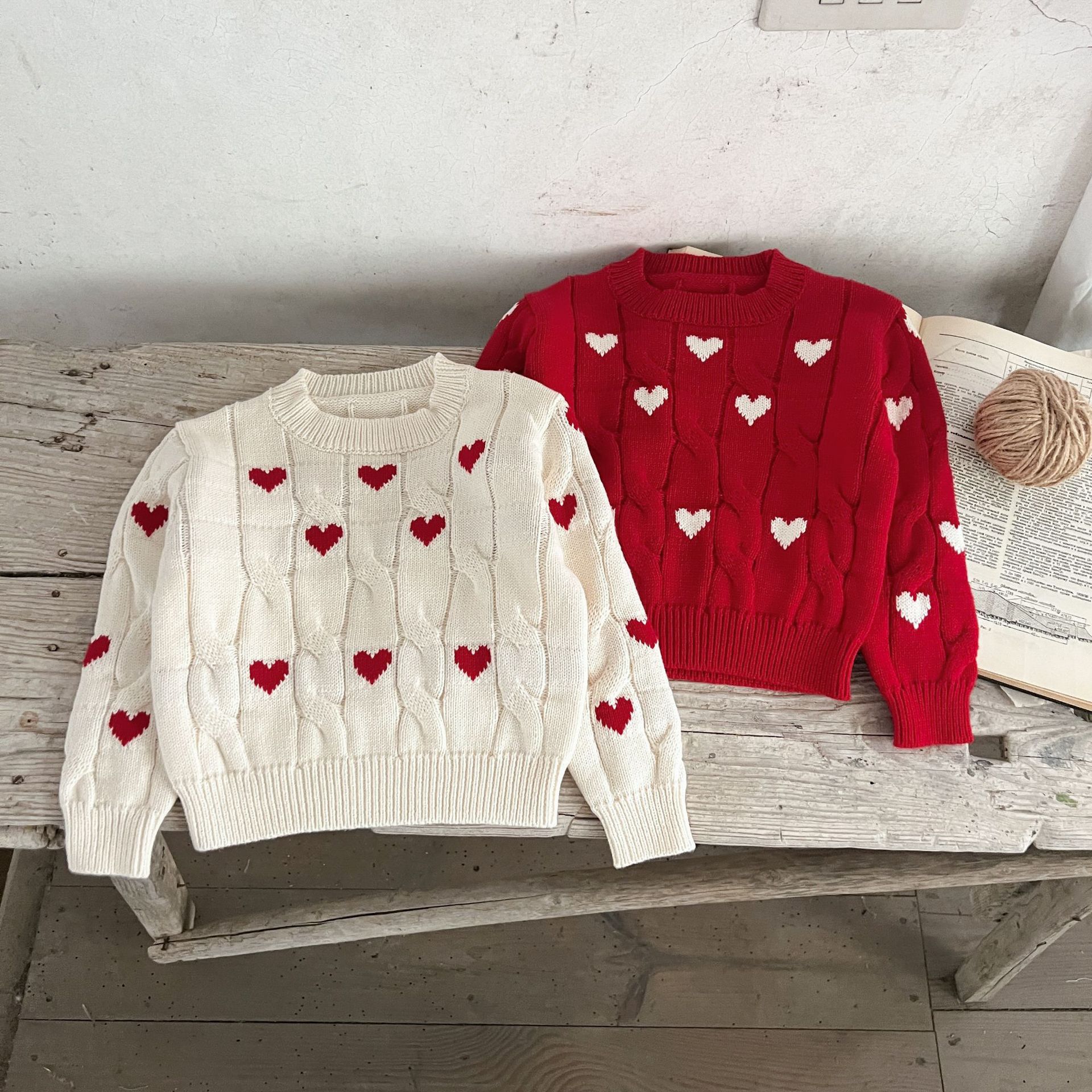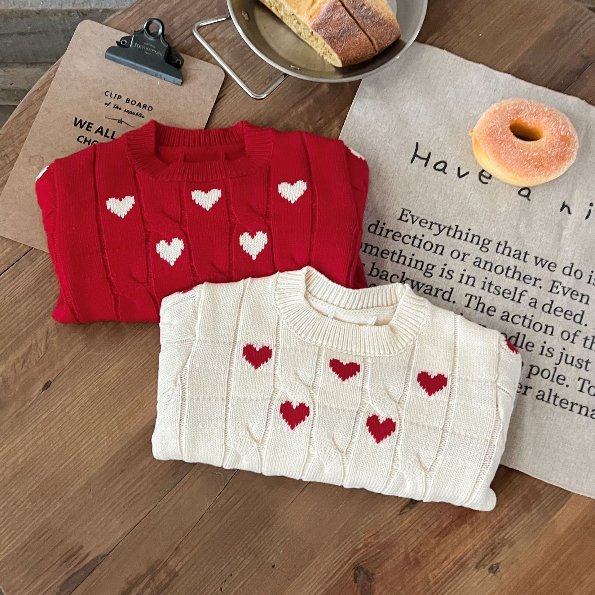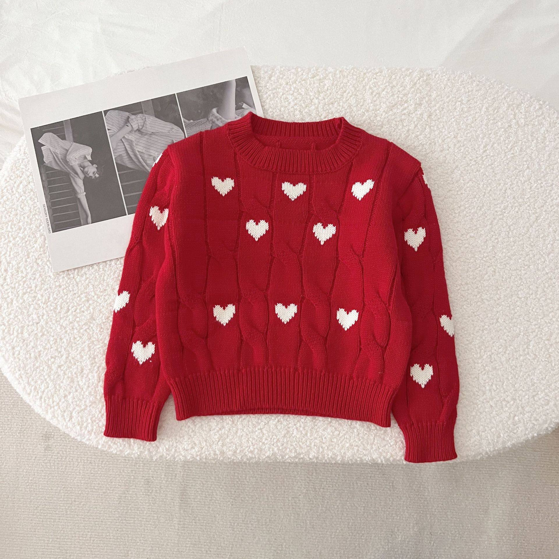 어린이 스웨터 2024 봄 한국 스타일 순면 둥근 목 사랑 소년과 소녀의 빨간 아기 울 풀오버 탑스토어 가기