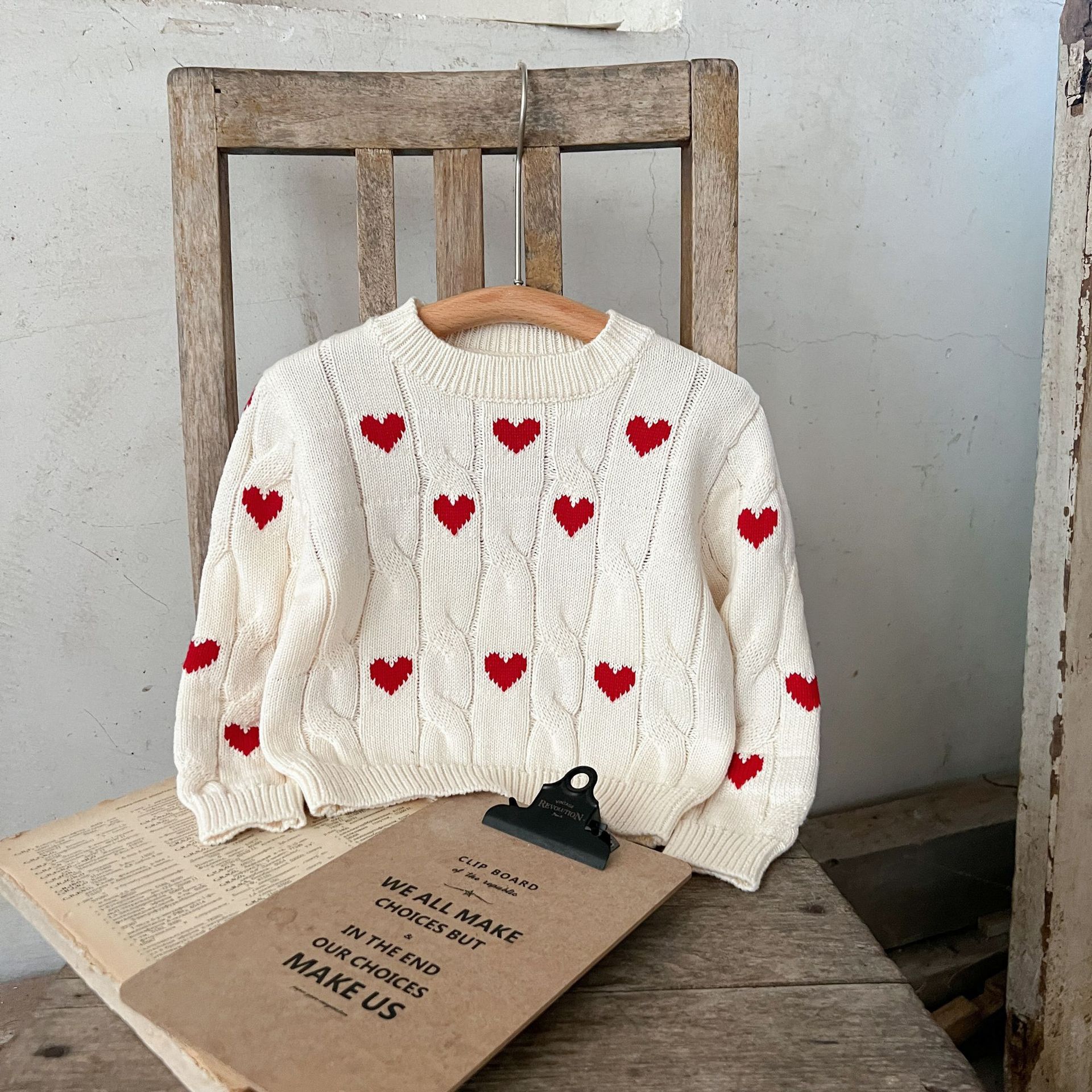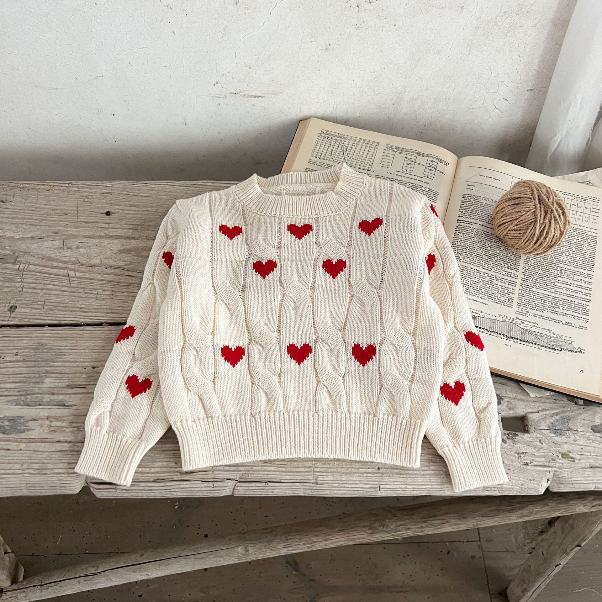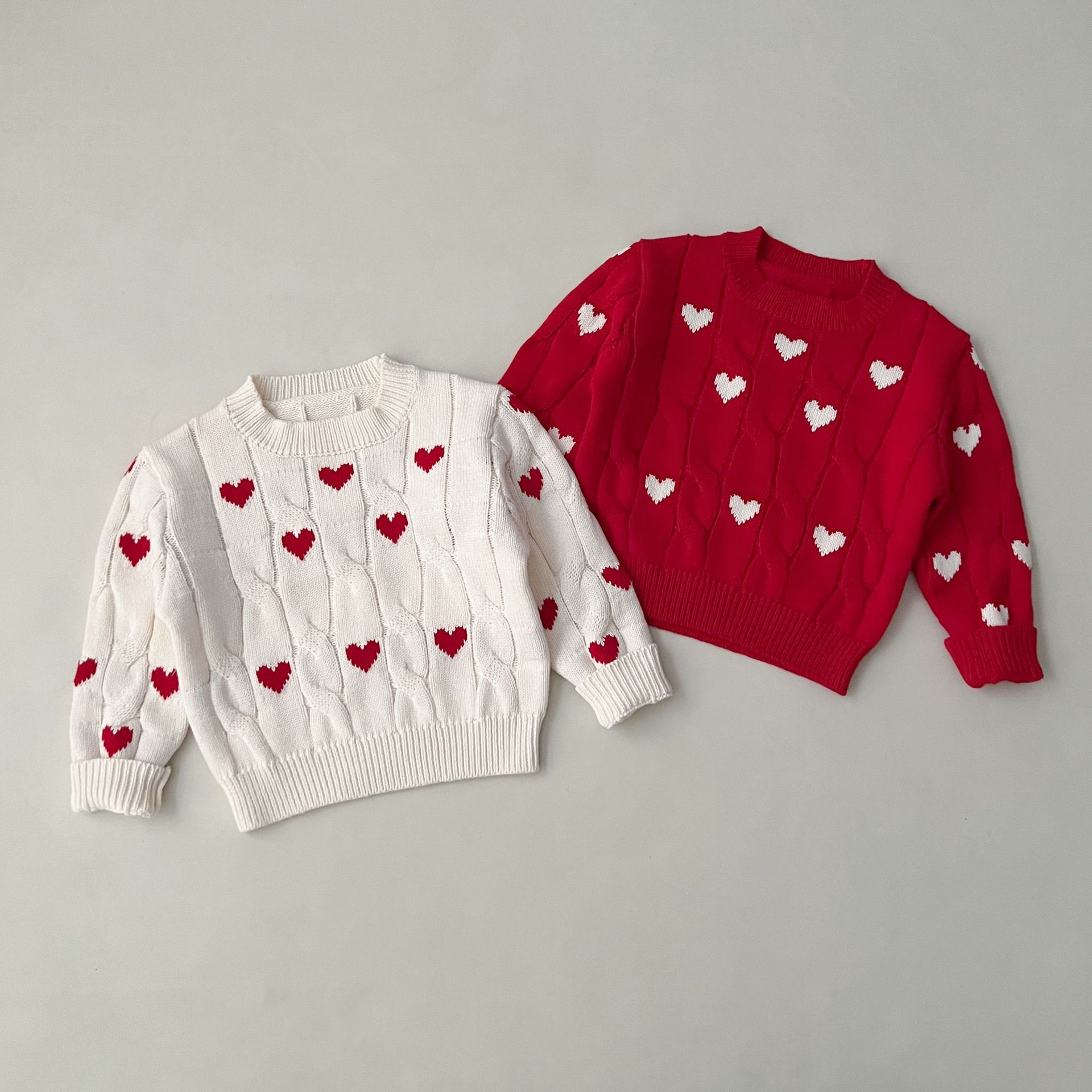 어린이 스웨터 2024 봄 한국 스타일 순면 둥근 목 사랑 소년과 소녀의 빨간 아기 울 풀오버 탑스토어 가기