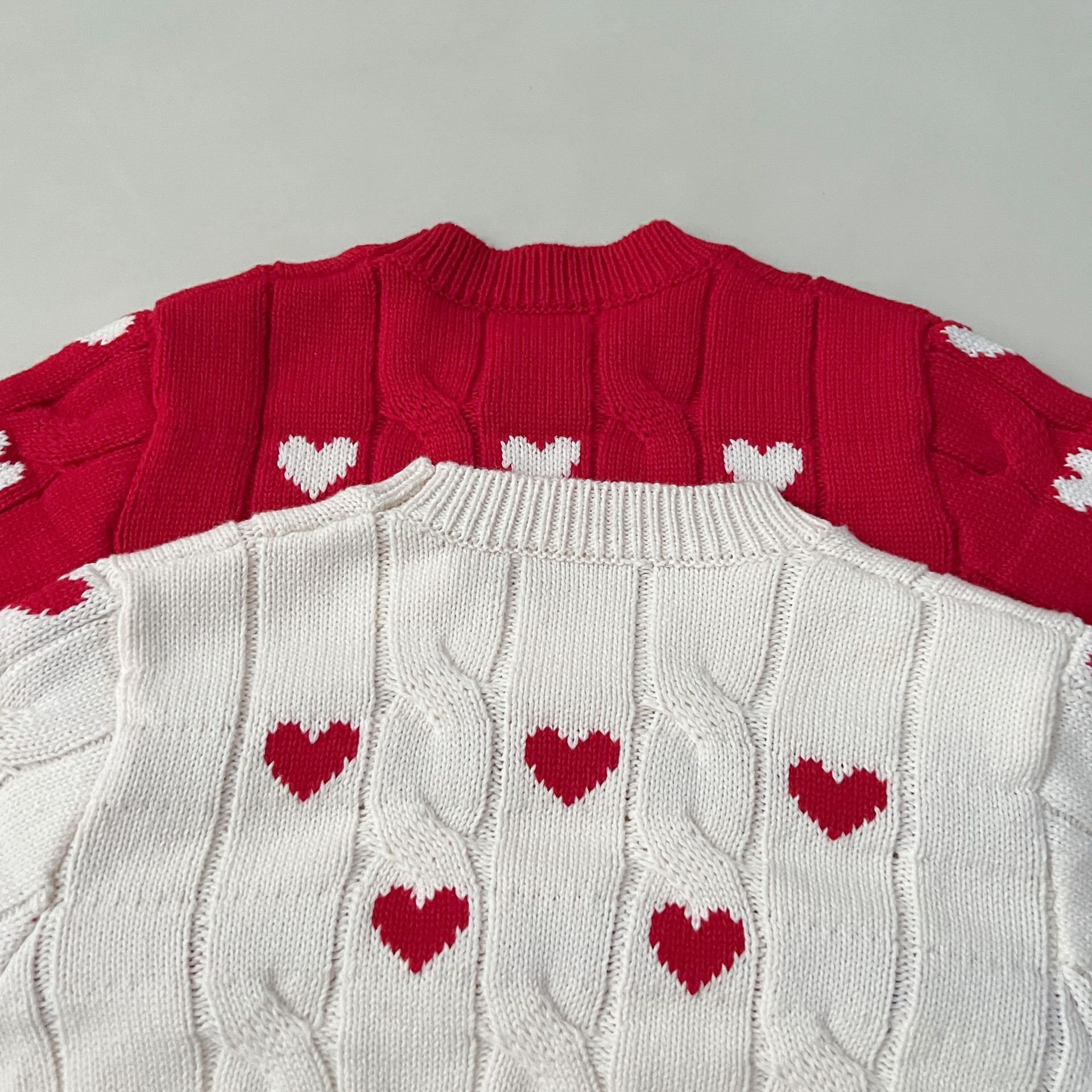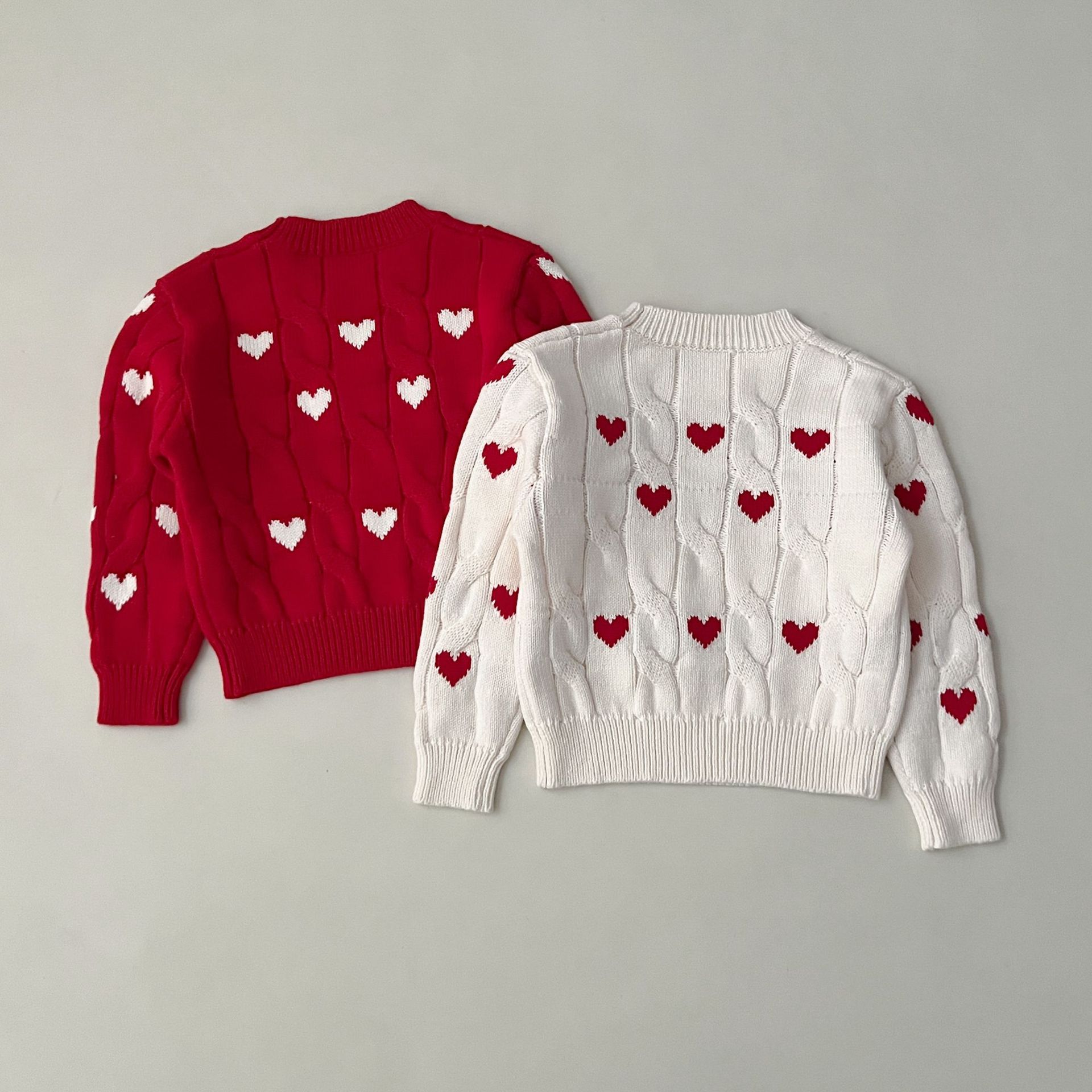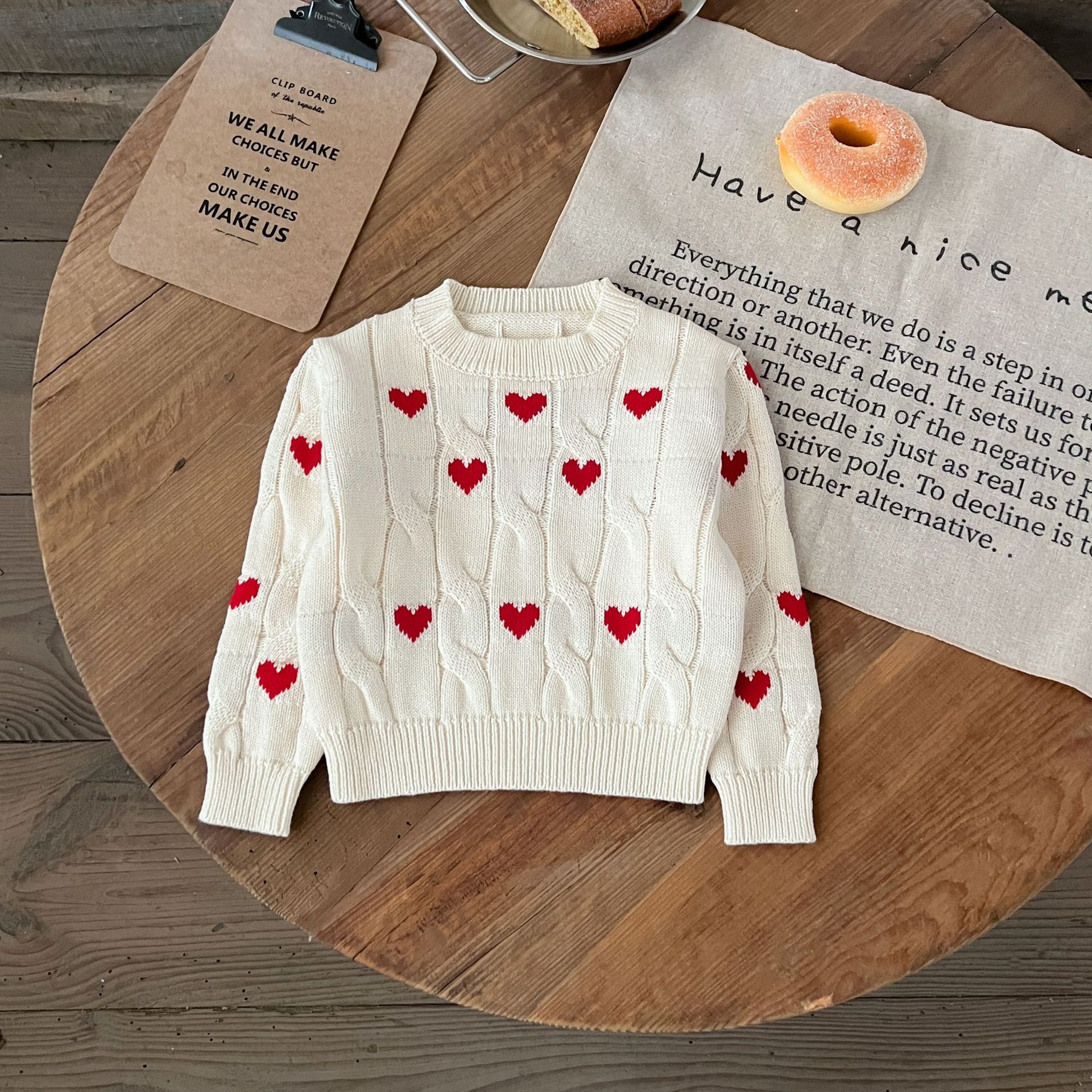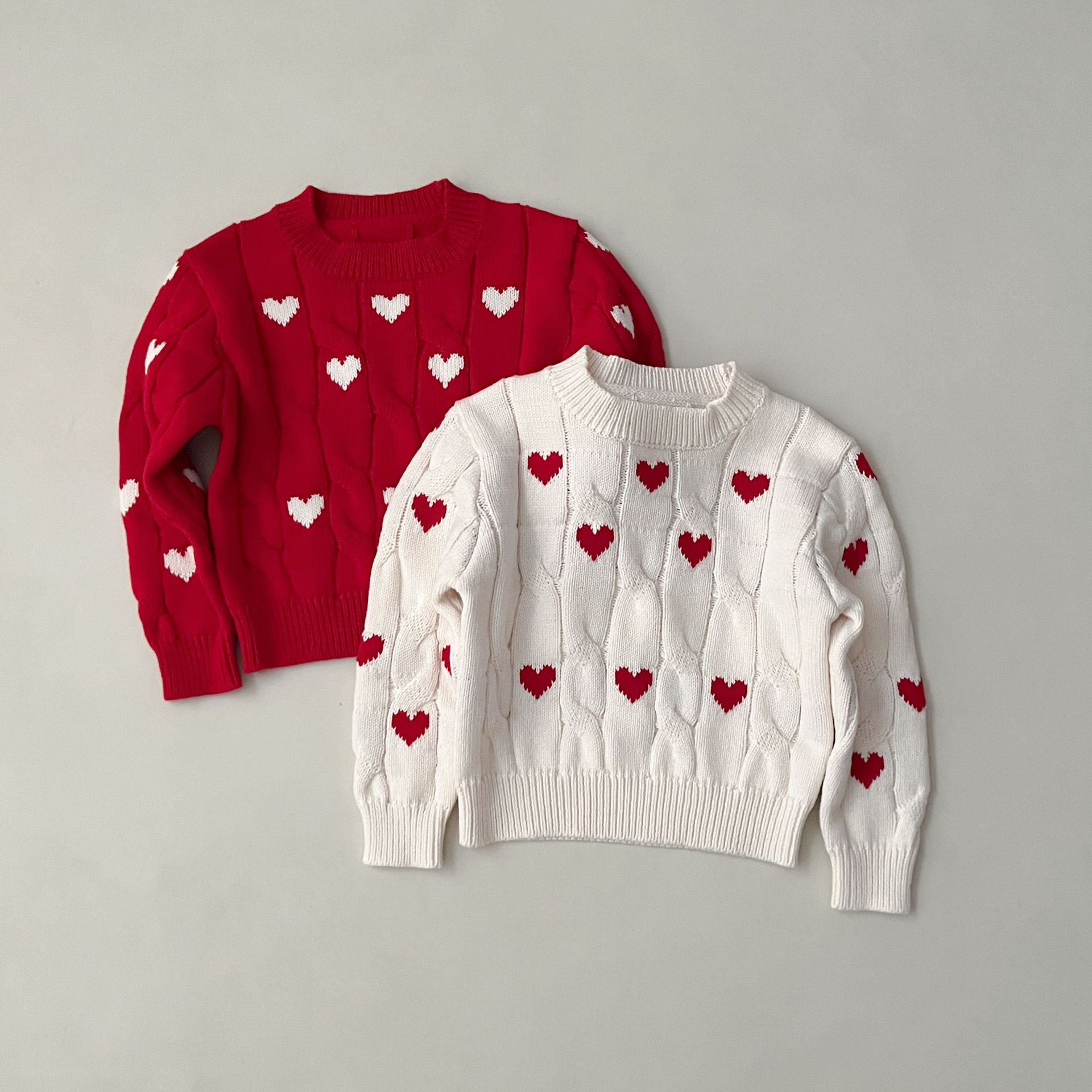 어린이 스웨터 2024 봄 한국 스타일 순면 둥근 목 사랑 소년과 소녀의 빨간 아기 울 풀오버 탑스토어 가기