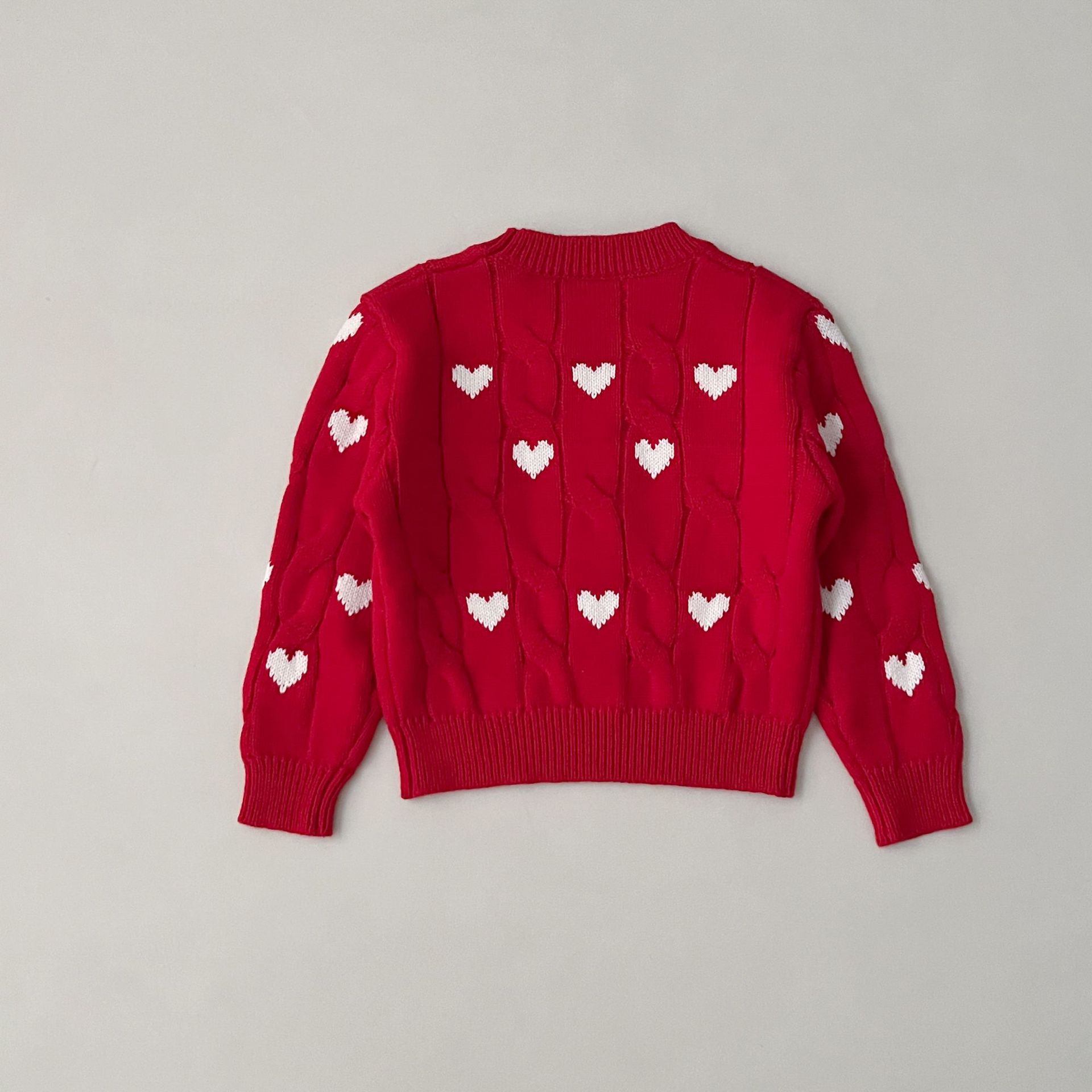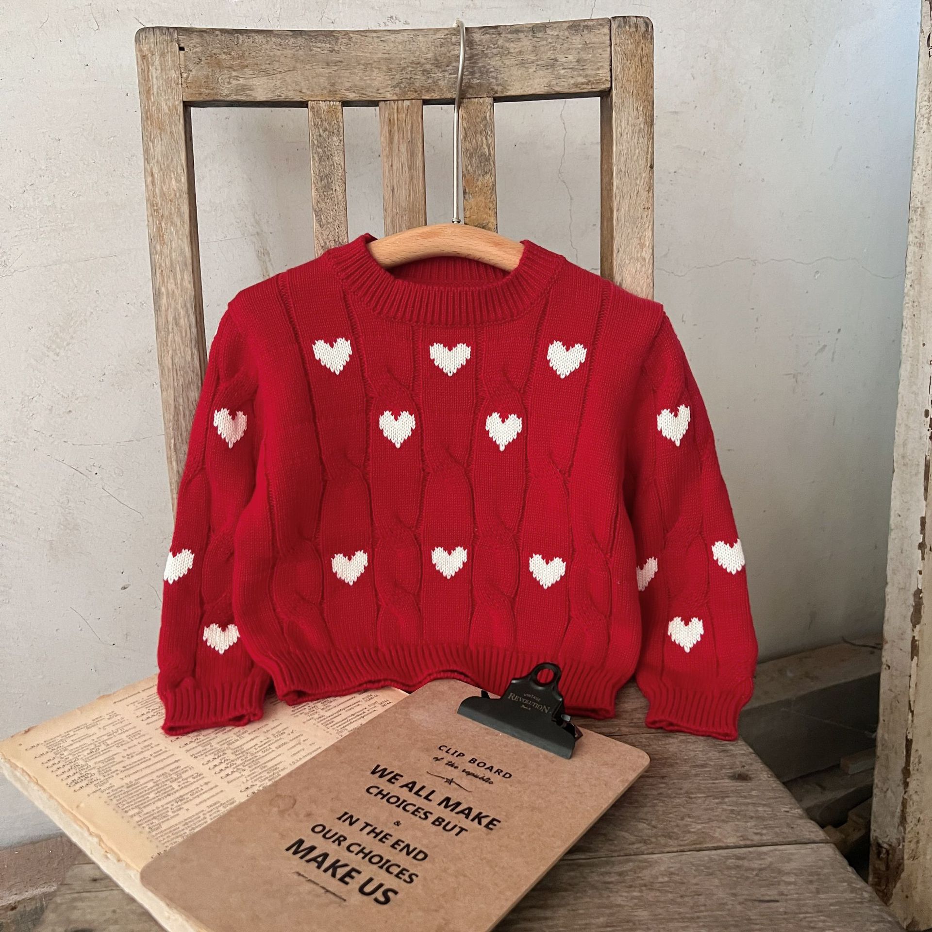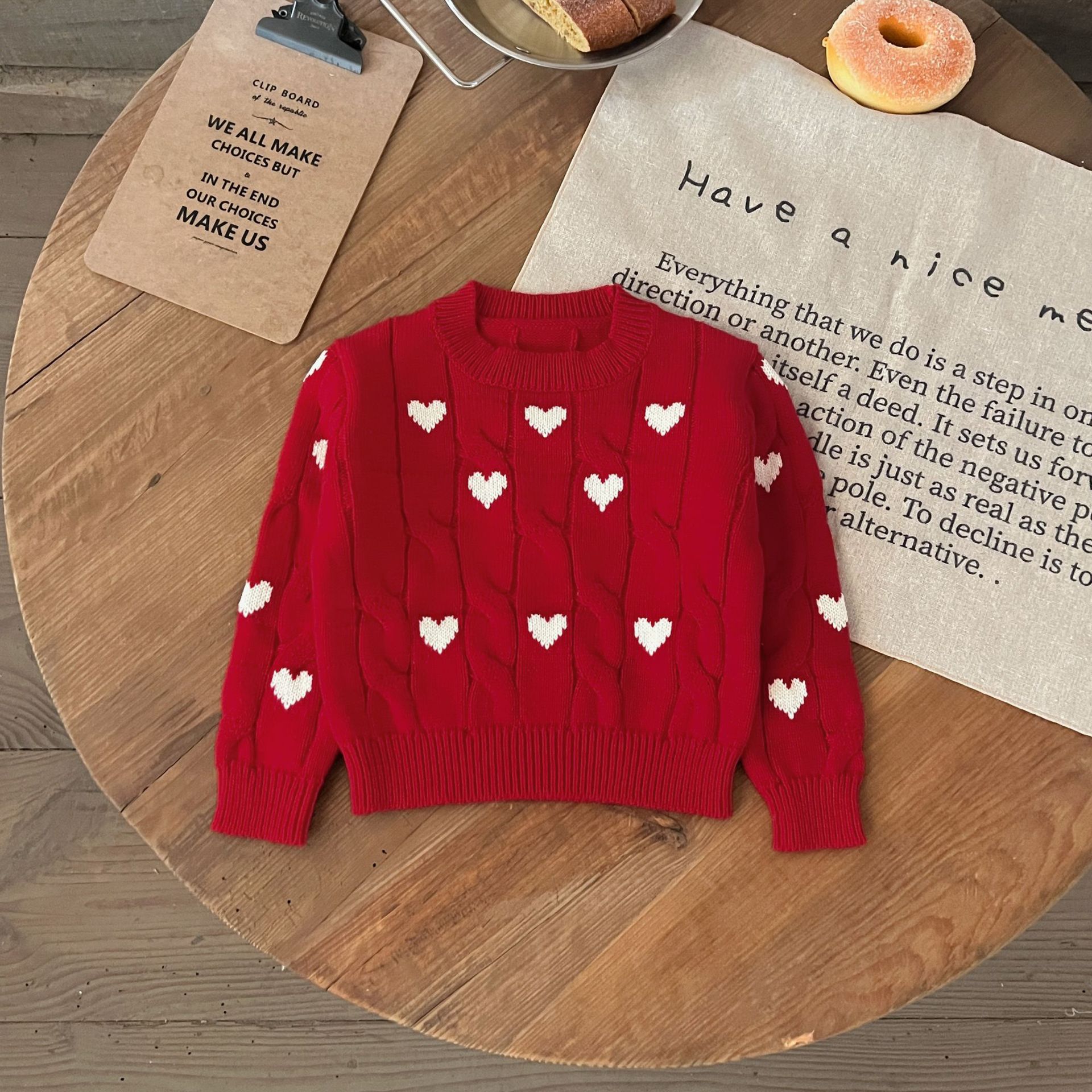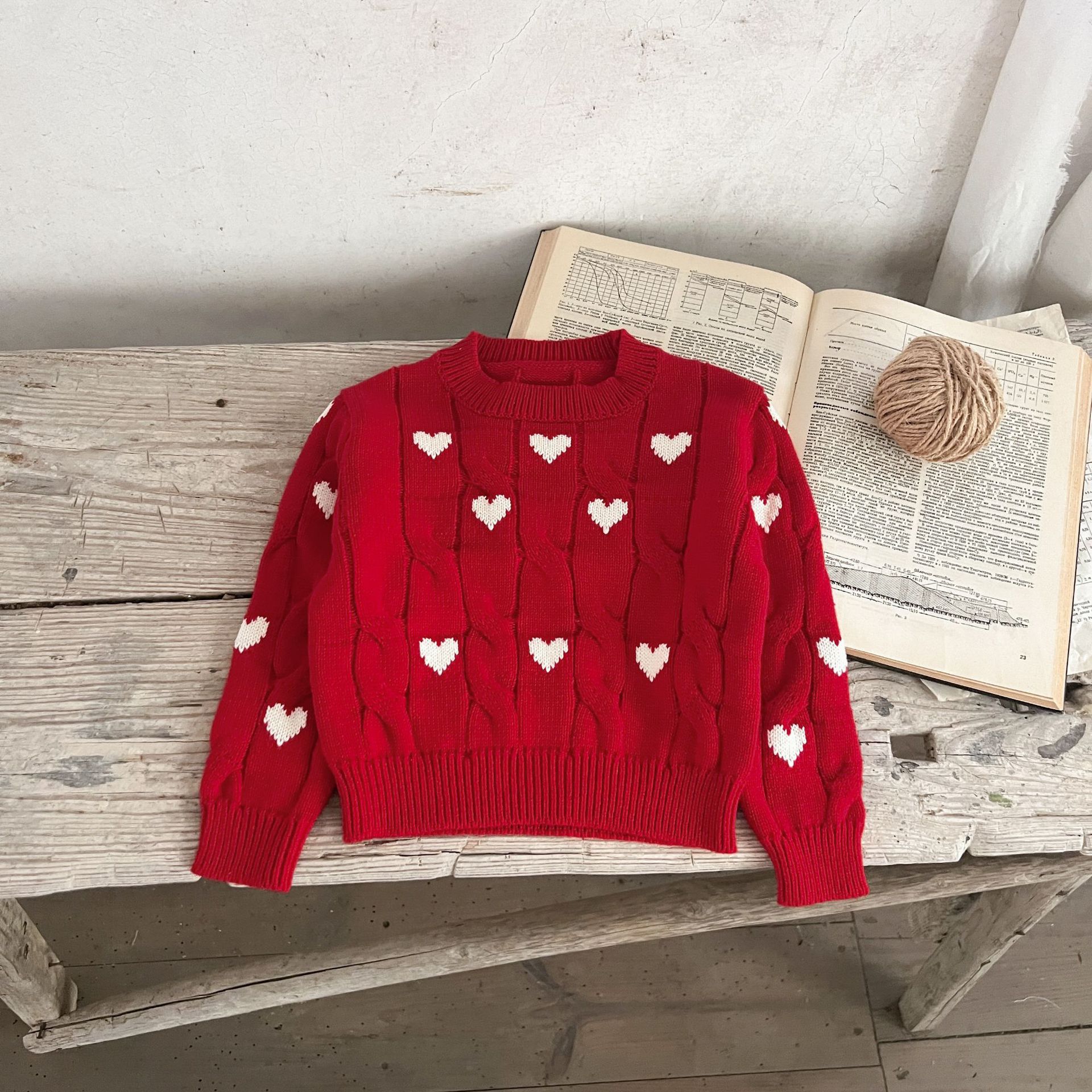 어린이 스웨터 2024 봄 한국 스타일 순면 둥근 목 사랑 소년과 소녀의 빨간 아기 울 풀오버 탑