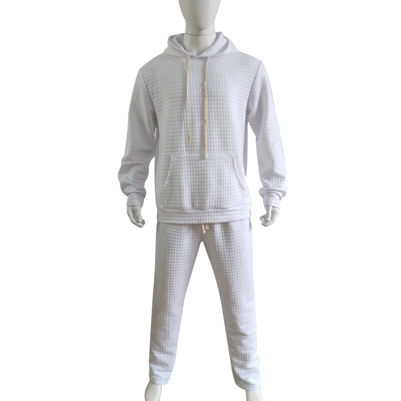 2023 국경 아마존 가을 남자 자카드 작은 광장 후드 바지 캐주얼 스포츠 남자 세트