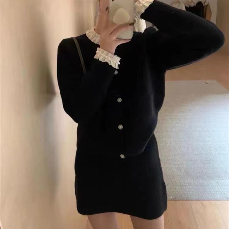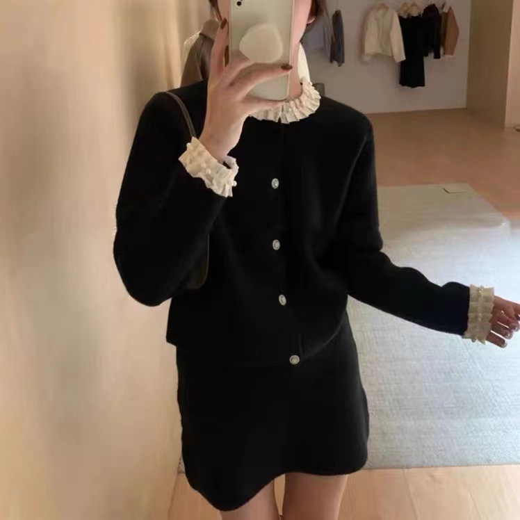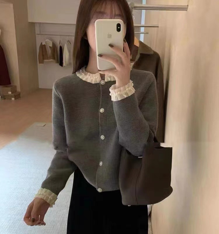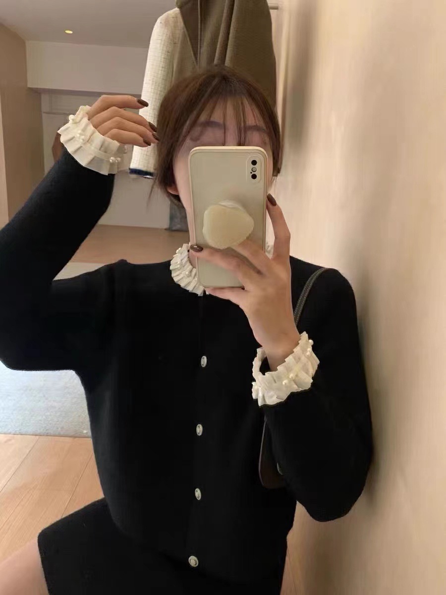 2024 겨울 새로운 한국 스타일 세련된 디자인 우아한 프랑스 스타일 나무 귀 코트 스타일 니트 스웨터 카디건스토어 가기