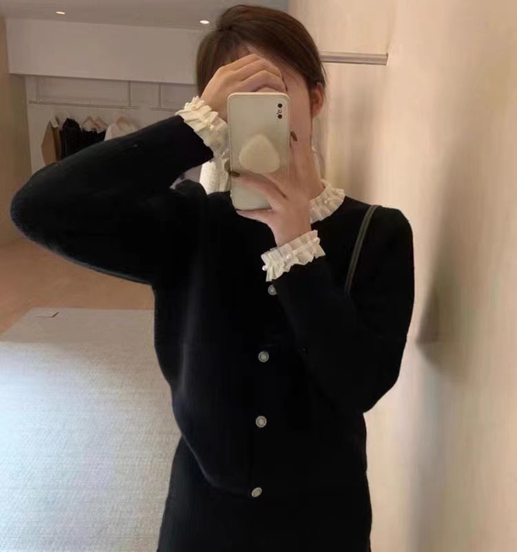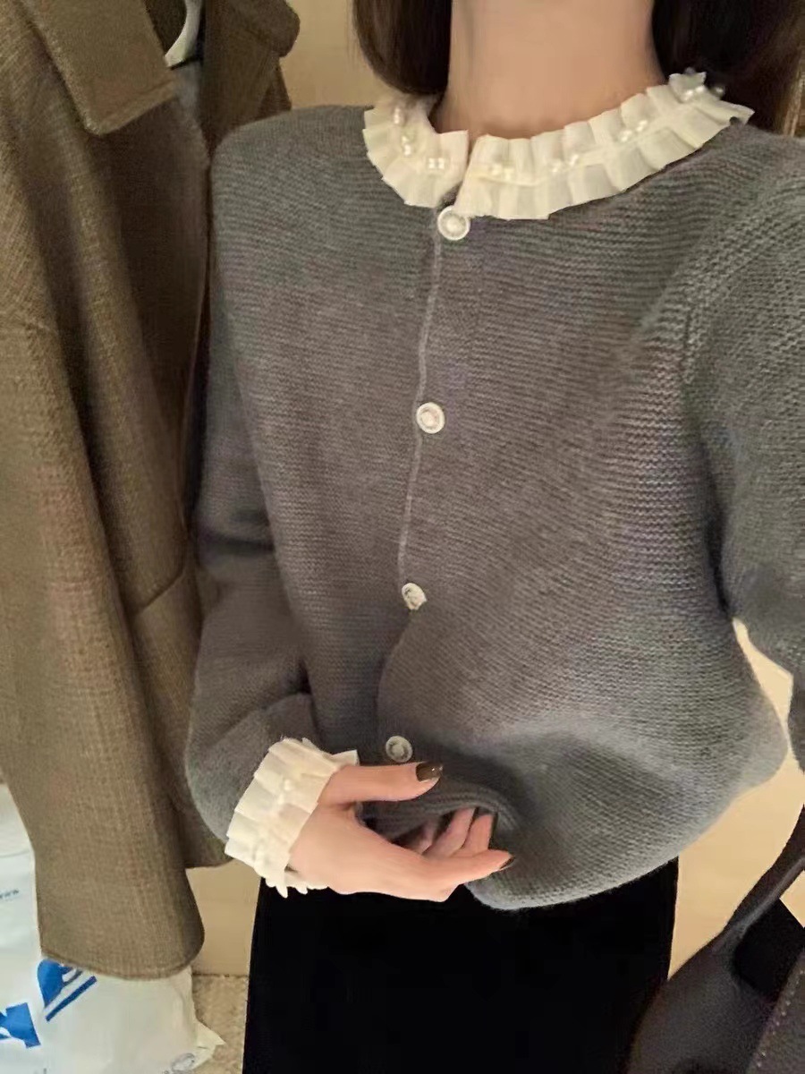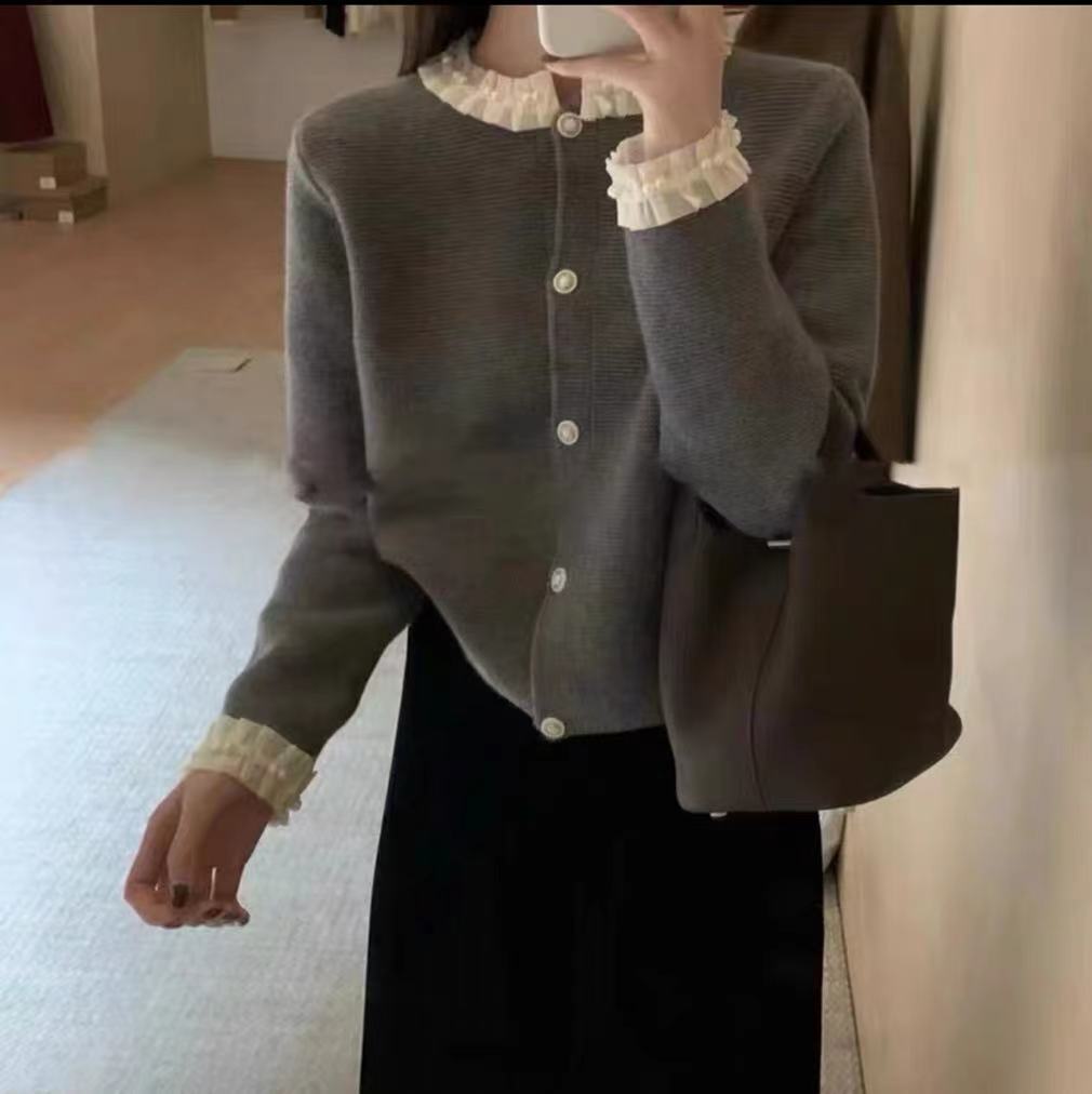 2024 겨울 새로운 한국 스타일 세련된 디자인 우아한 프랑스 스타일 나무 귀 코트 스타일 니트 스웨터 카디건