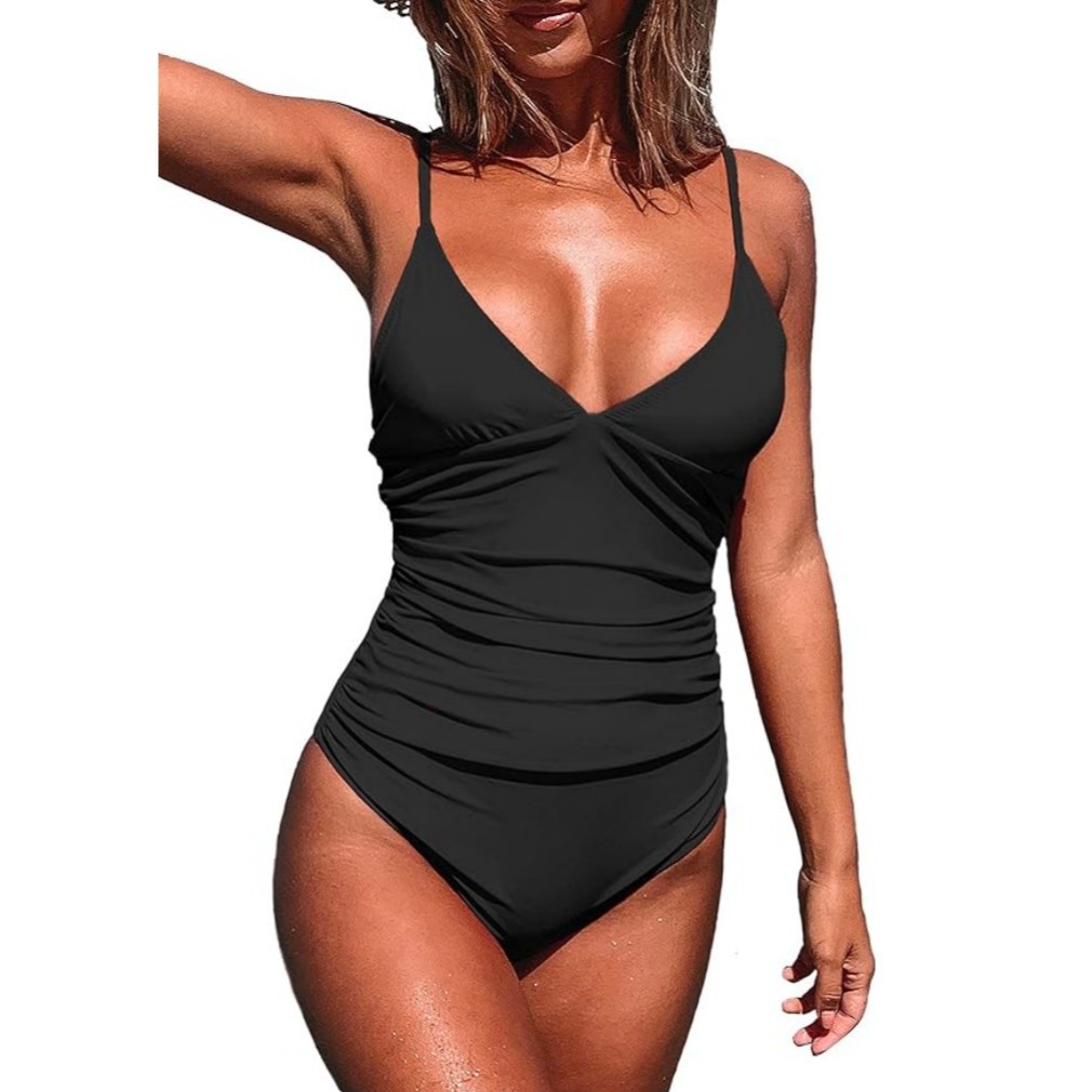 아마존 인기 원피스 수영복 여성용 딥 V 솔리드 컬러 섹시한 자외선 차단 수영복 유럽과 미국의 크로스 보드 백리스 비키니