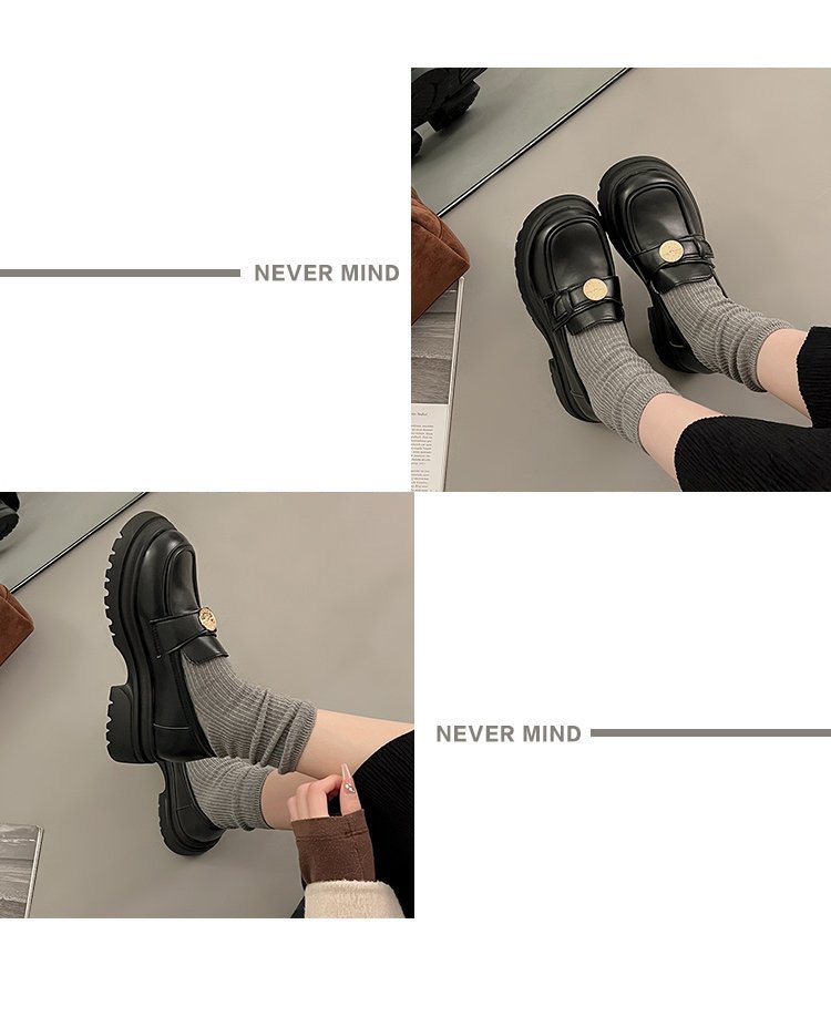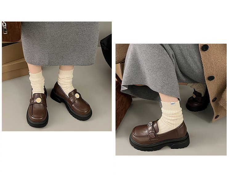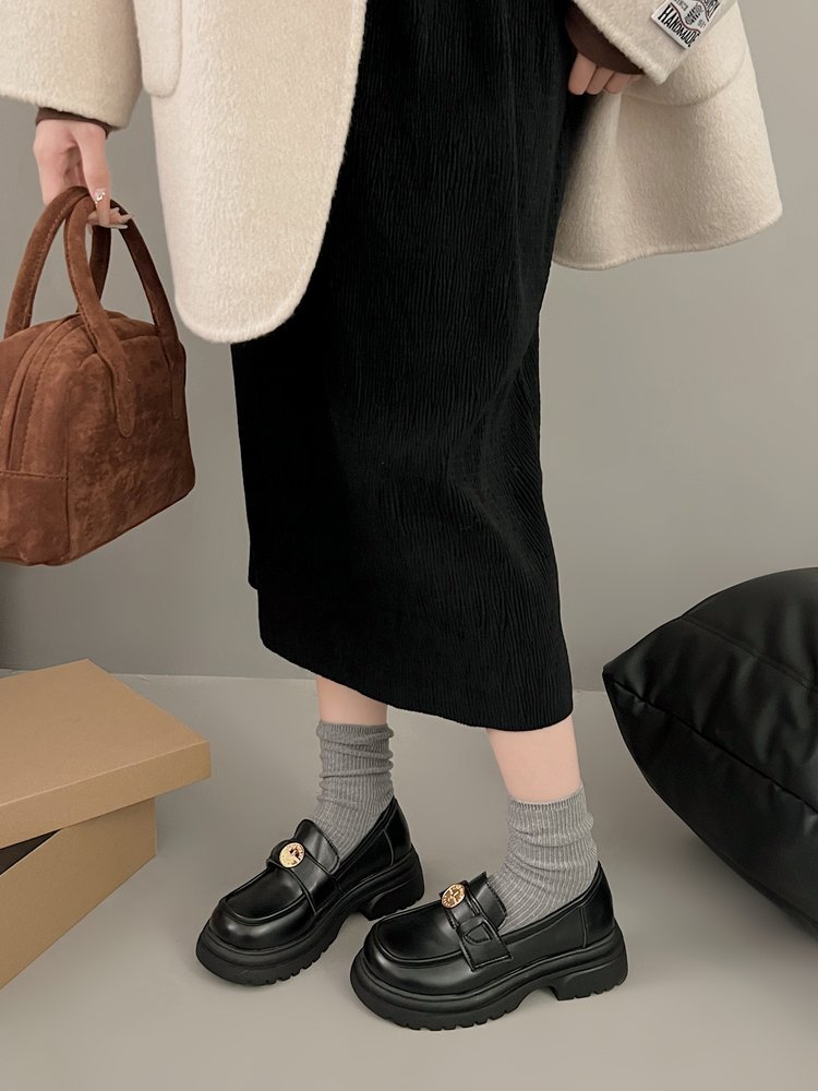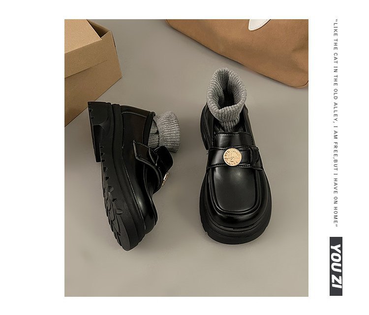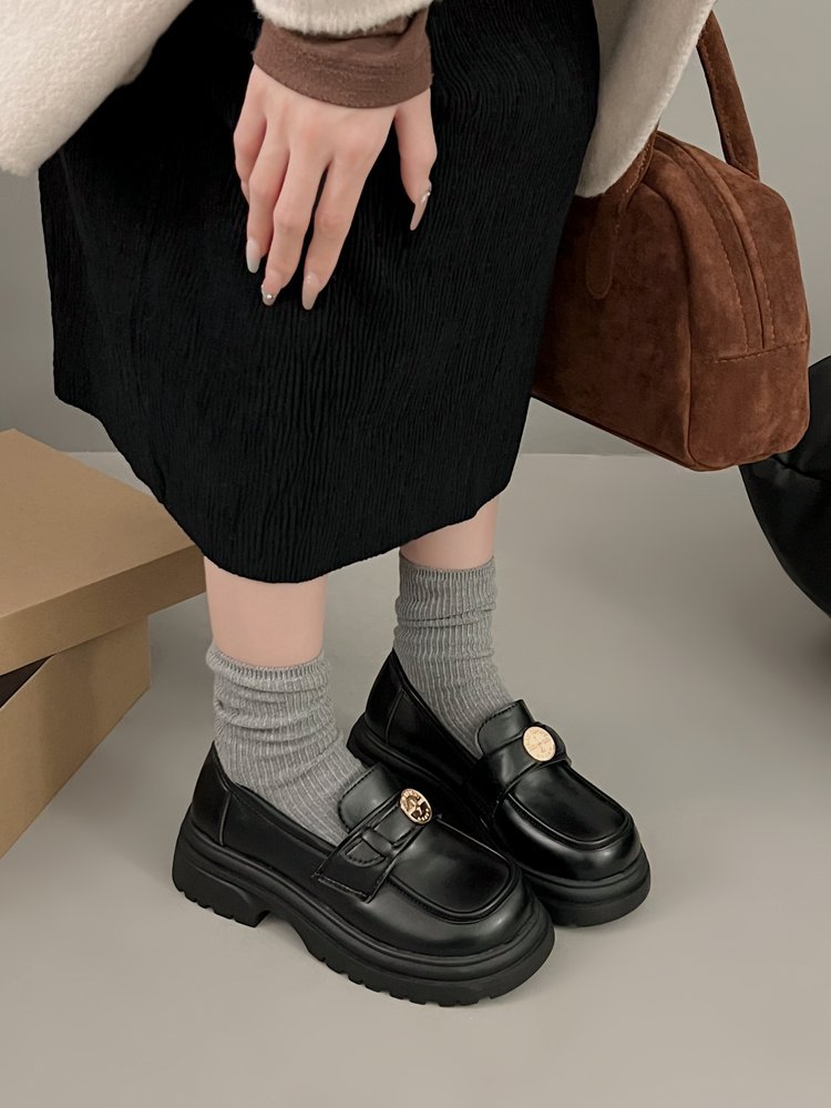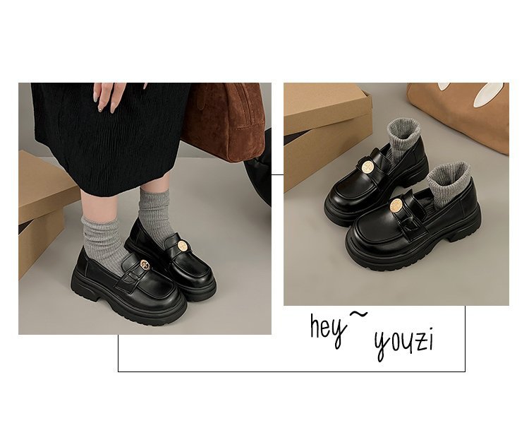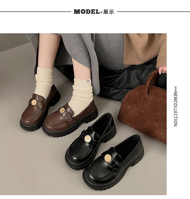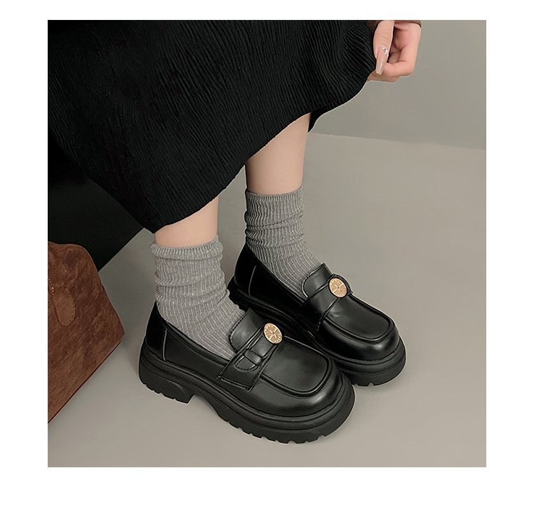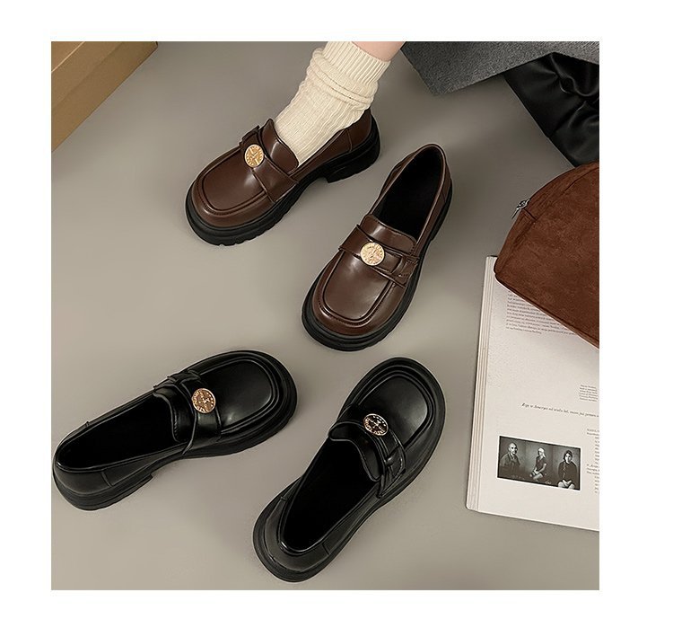 새로운 가을과 겨울 검은 색 영국 가죽 신발이 슬립 온 여성 신발 플랫 슈즈를 2024 여성의 두꺼운 밑창 로퍼스토어 가기