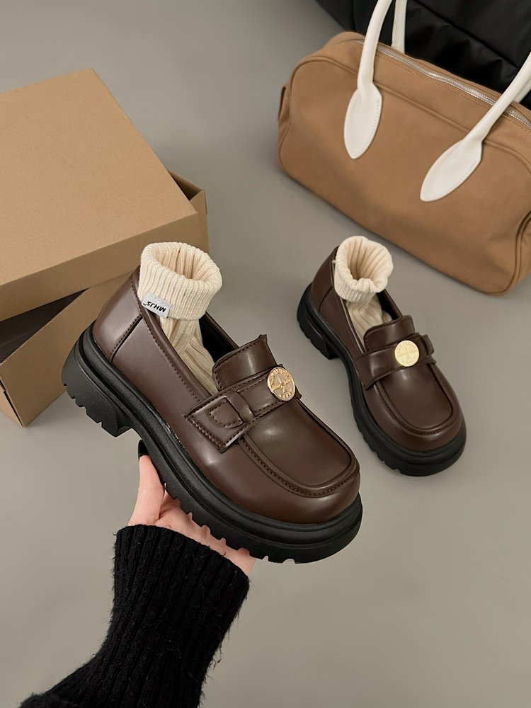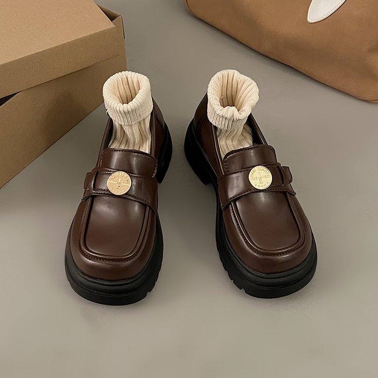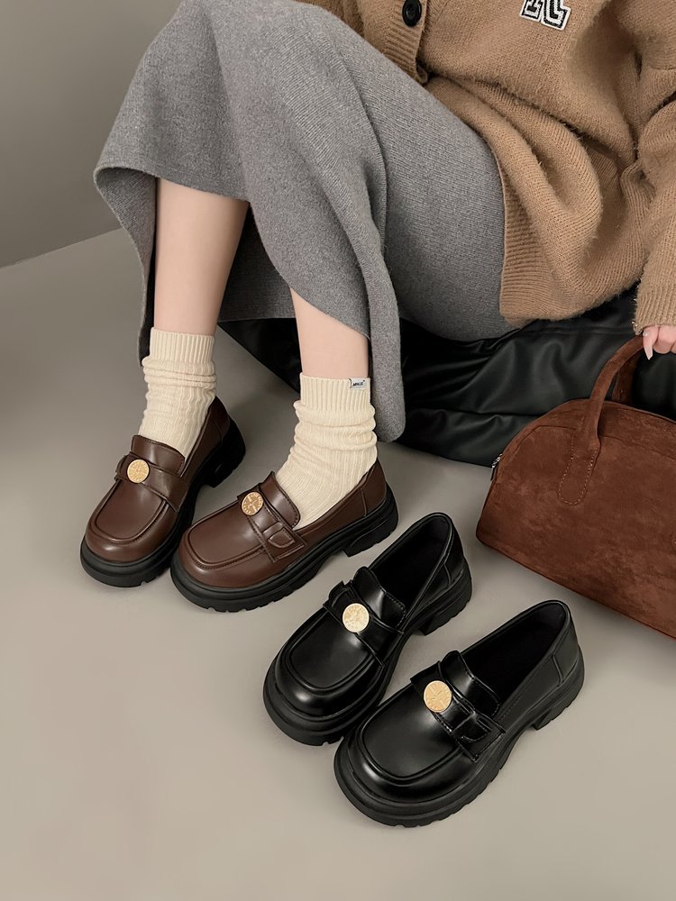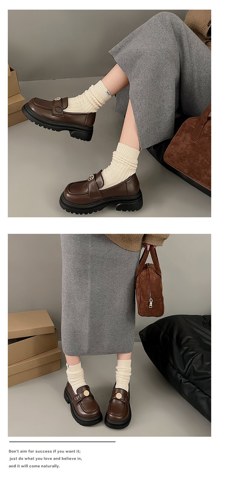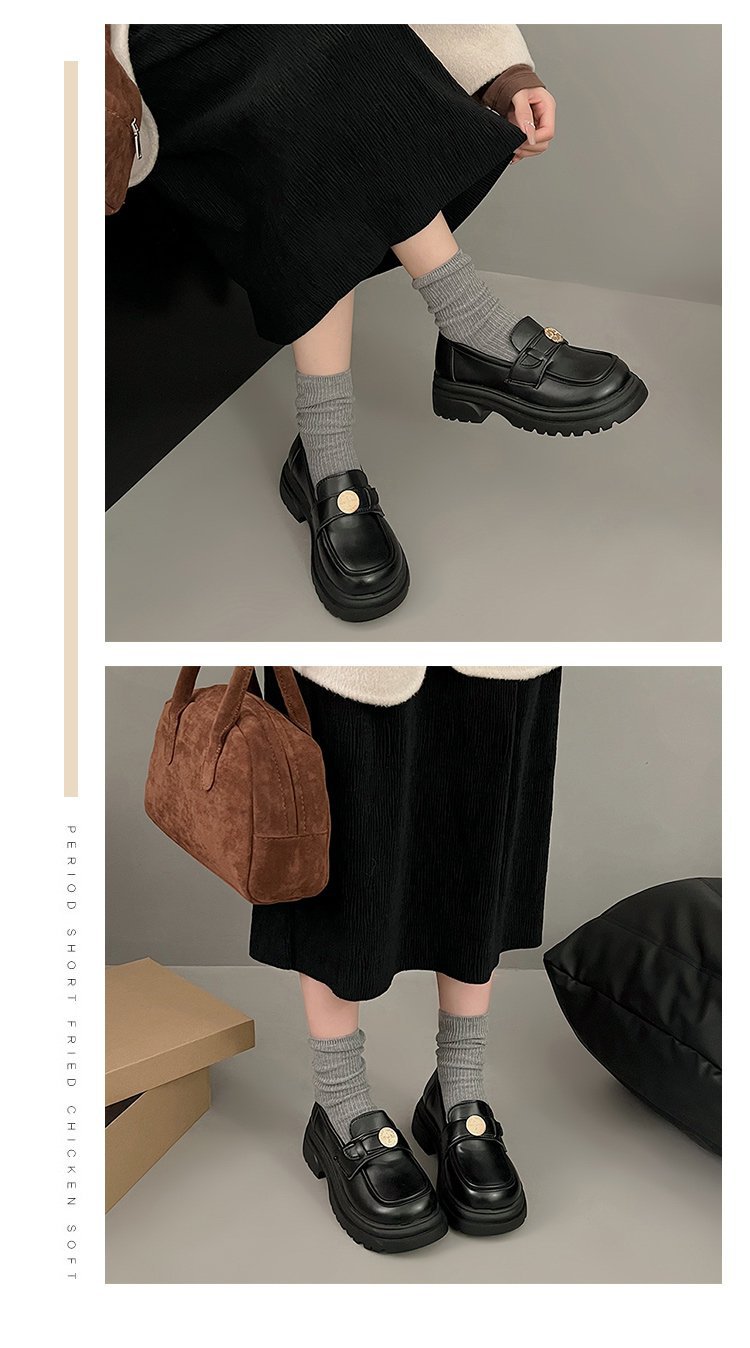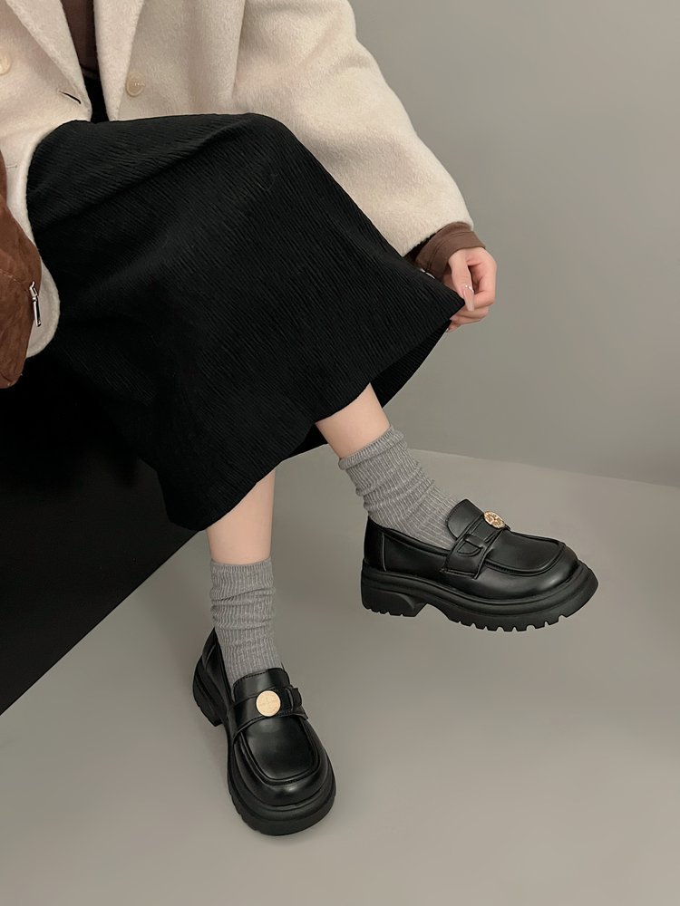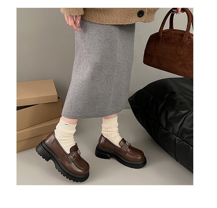 새로운 가을과 겨울 검은 색 영국 가죽 신발이 슬립 온 여성 신발 플랫 슈즈를 2024 여성의 두꺼운 밑창 로퍼스토어 가기