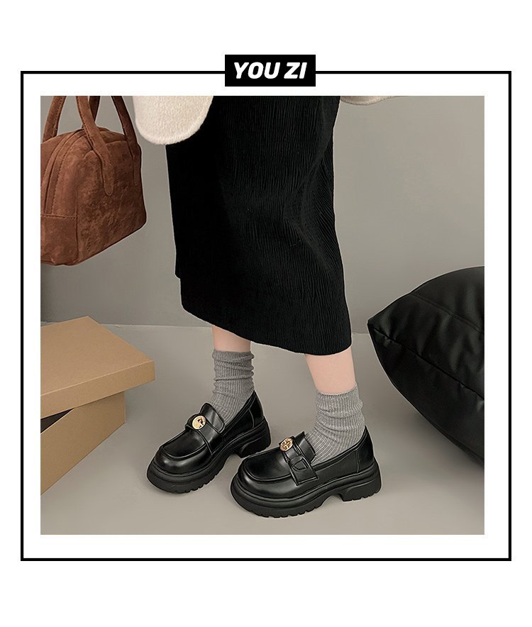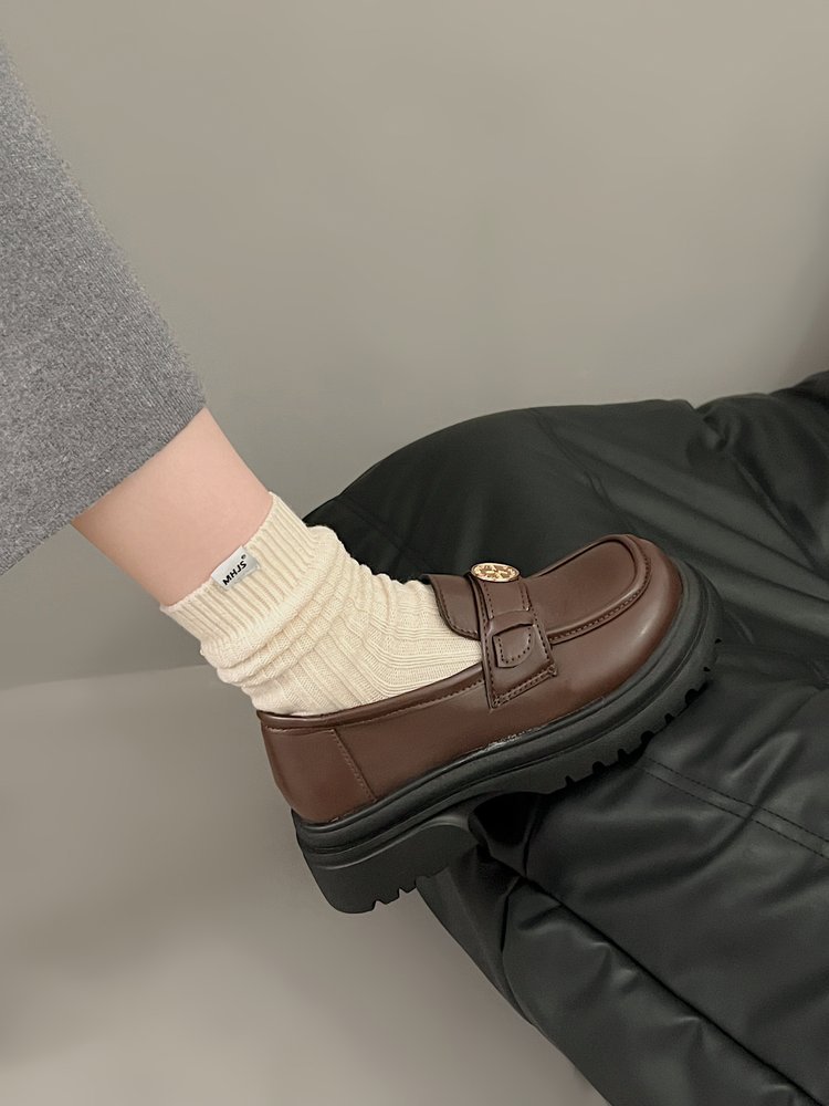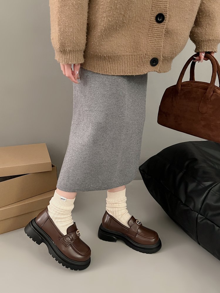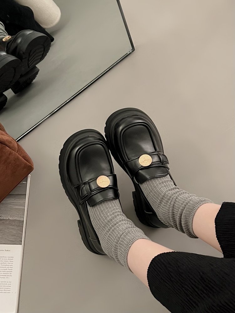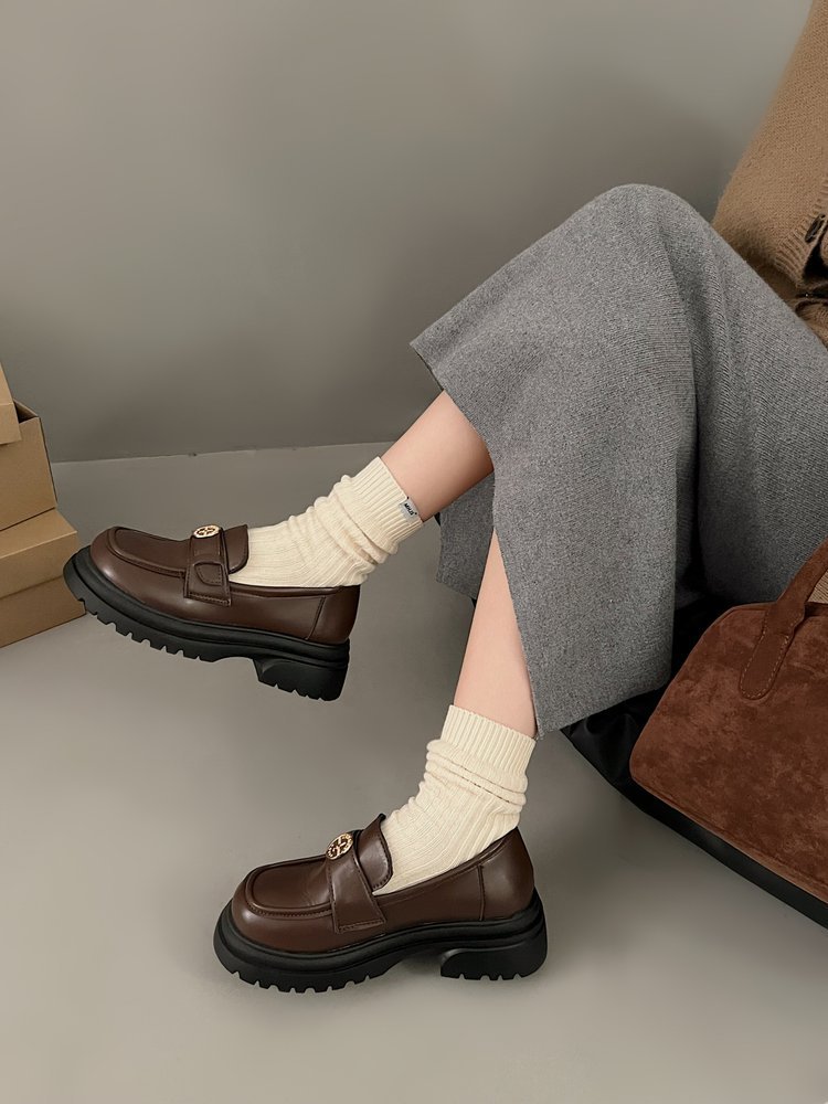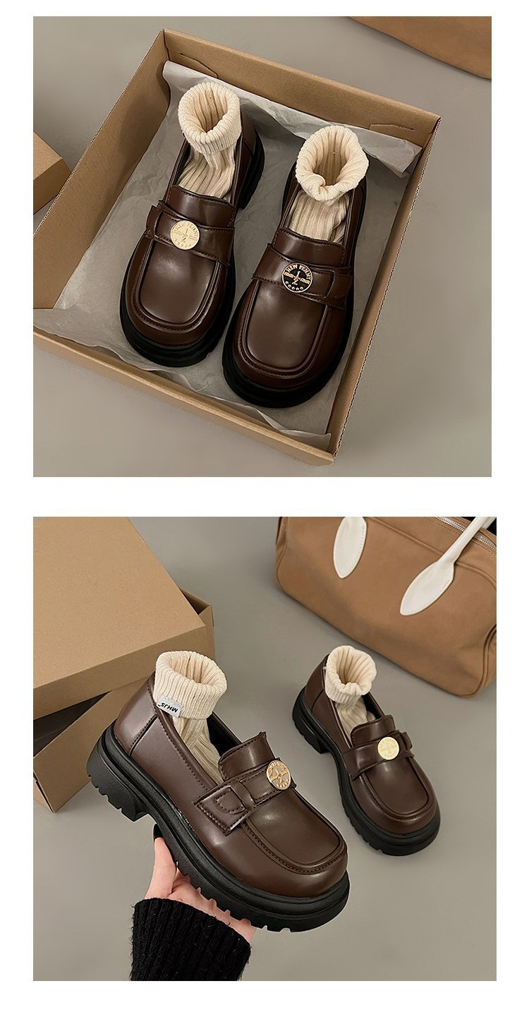 새로운 가을과 겨울 검은 색 영국 가죽 신발이 슬립 온 여성 신발 플랫 슈즈를 2024 여성의 두꺼운 밑창 로퍼스토어 가기