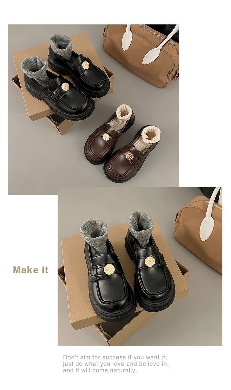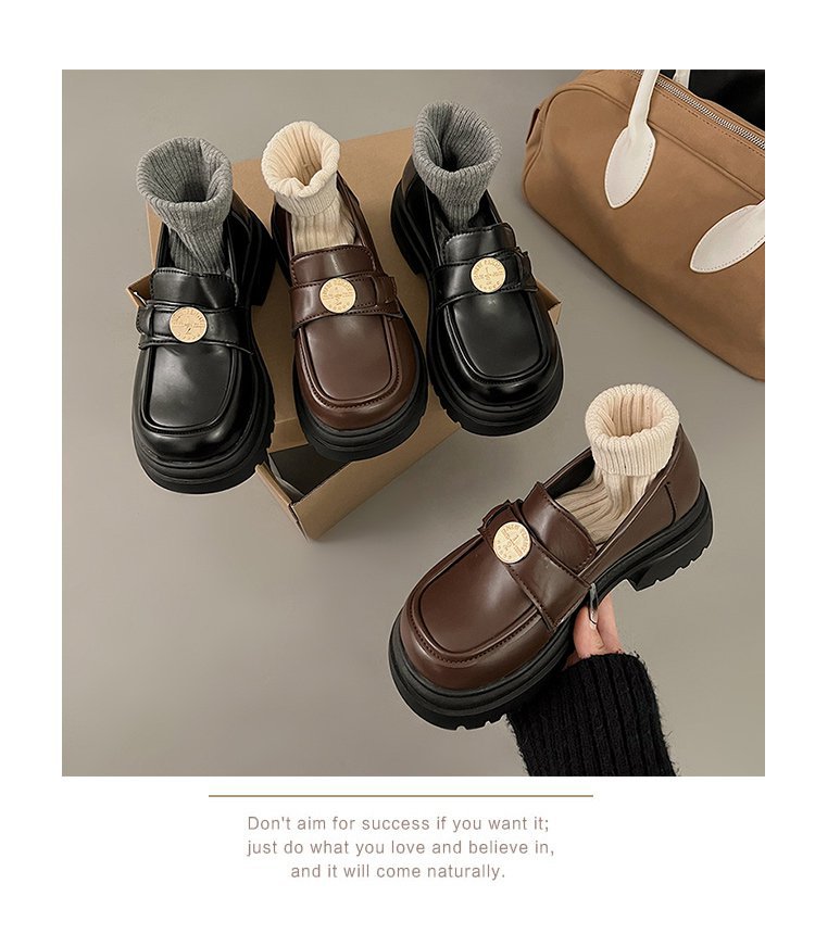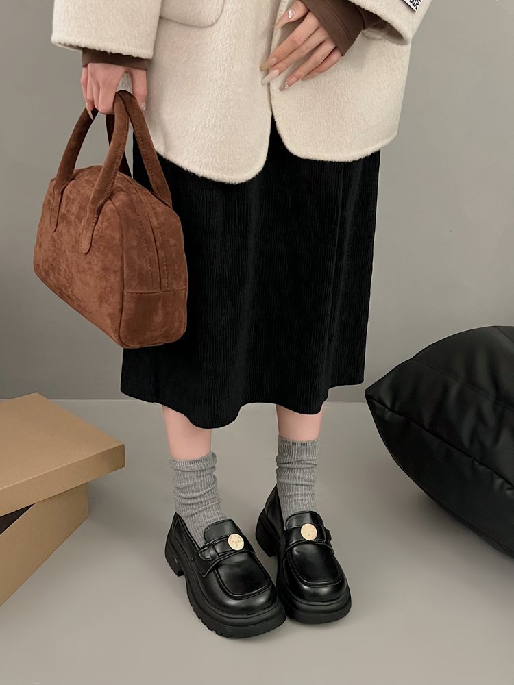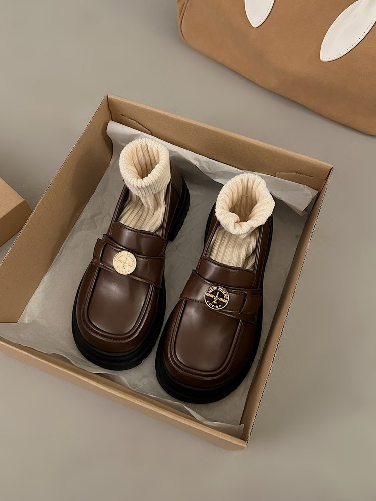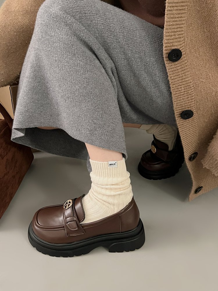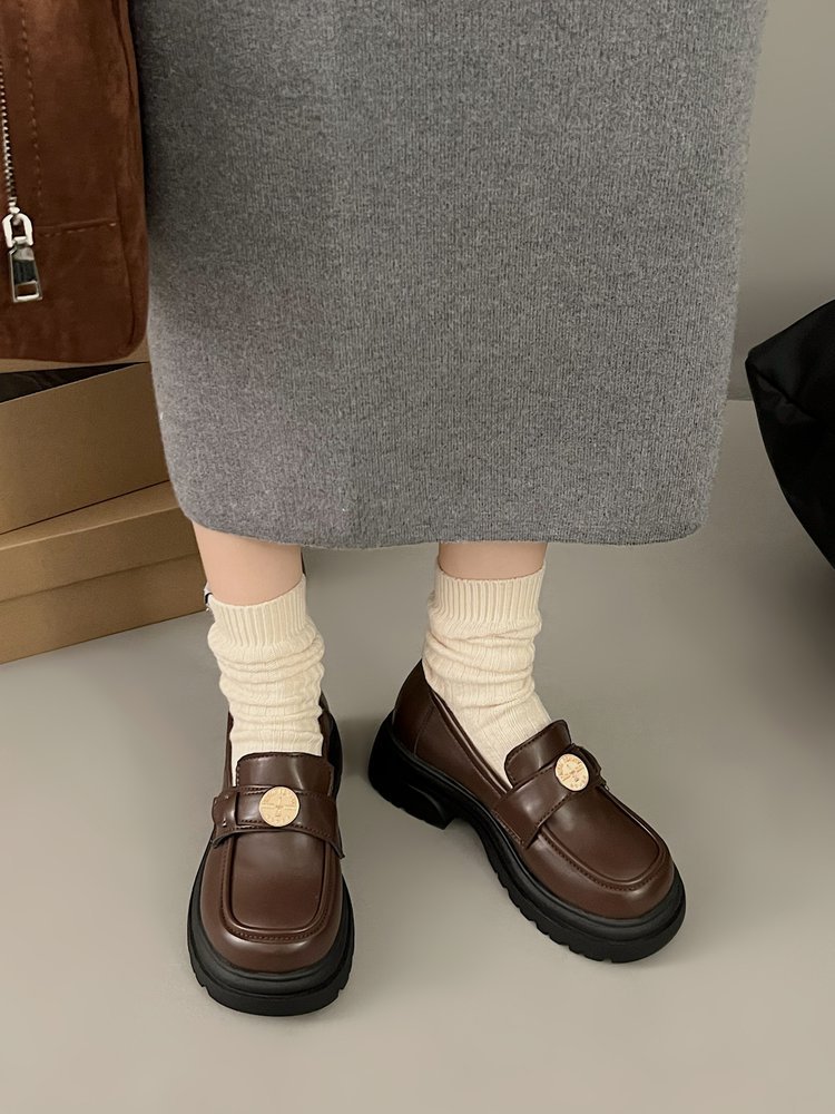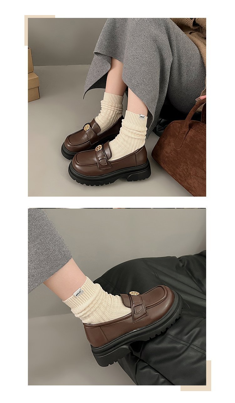 새로운 가을과 겨울 검은 색 영국 가죽 신발이 슬립 온 여성 신발 플랫 슈즈를 2024 여성의 두꺼운 밑창 로퍼스토어 가기