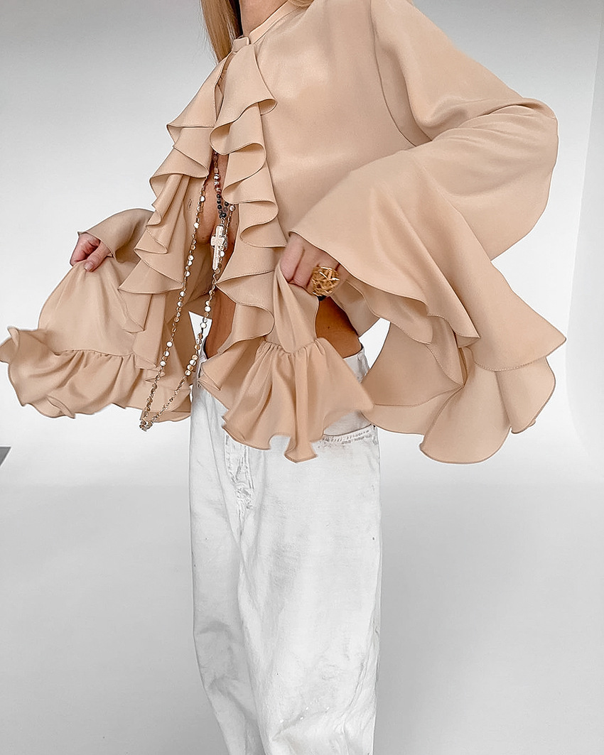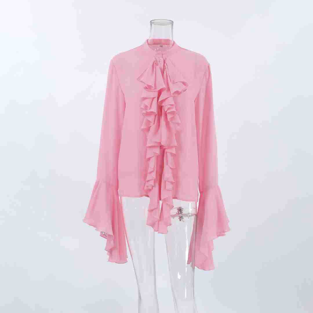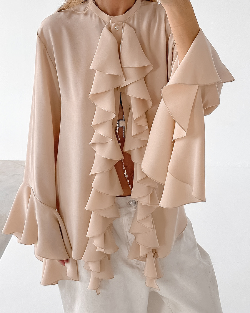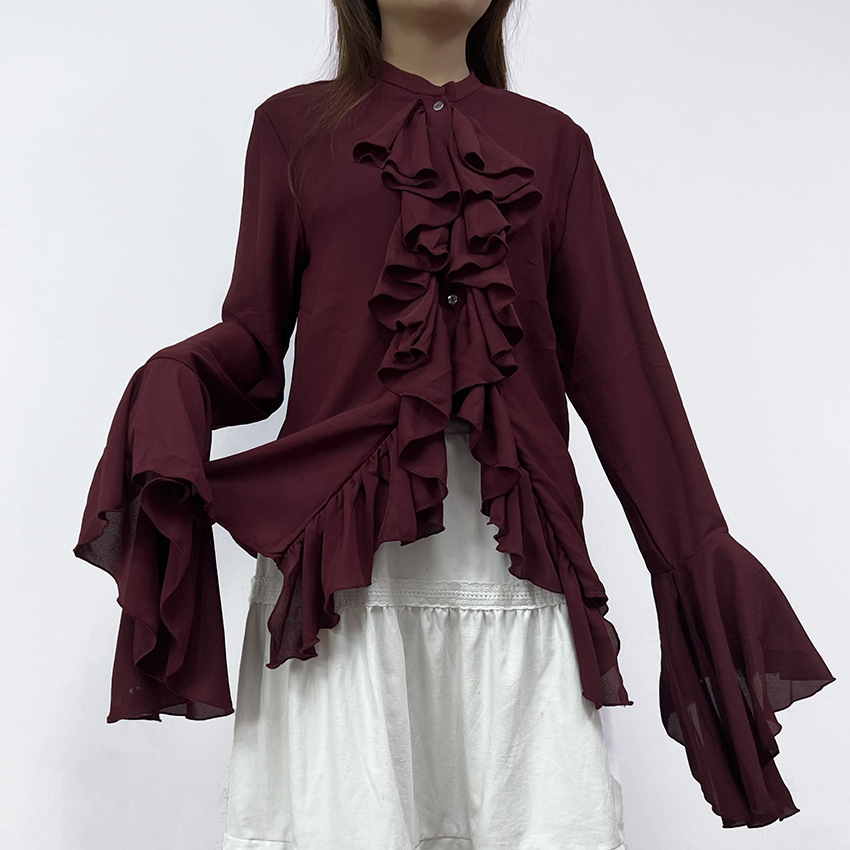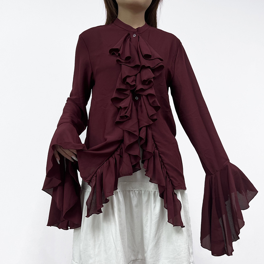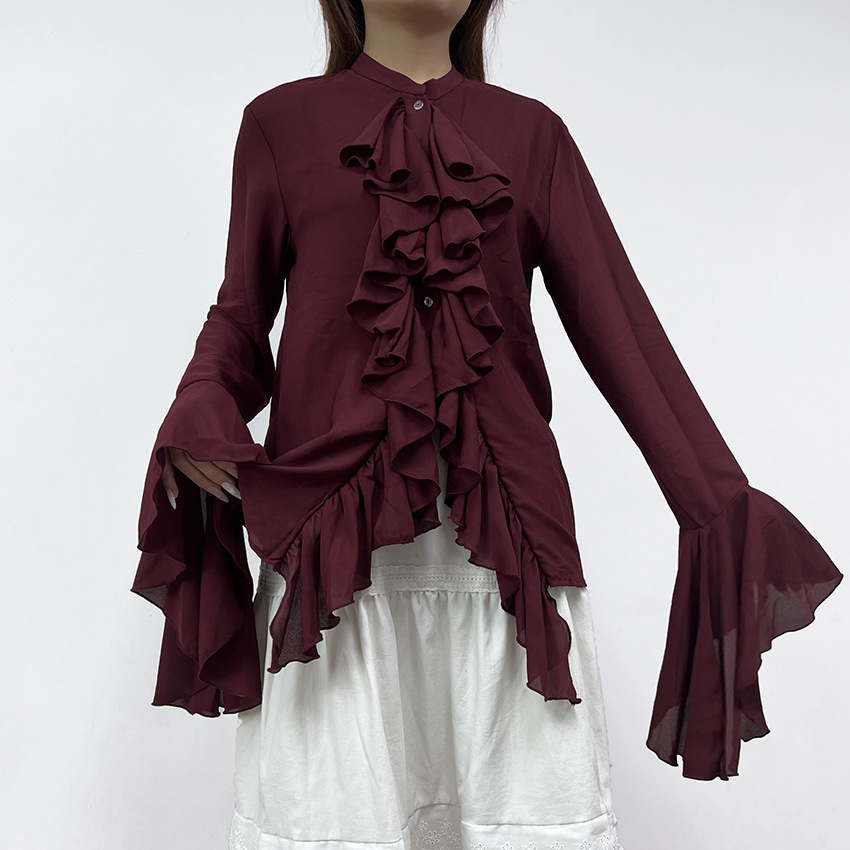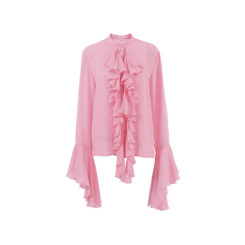 디자인 러플 긴팔 셔츠 가을 겨울 새로운 기질 고급 카디건 탑 여성 2025 유럽과 미국의 국경스토어 가기