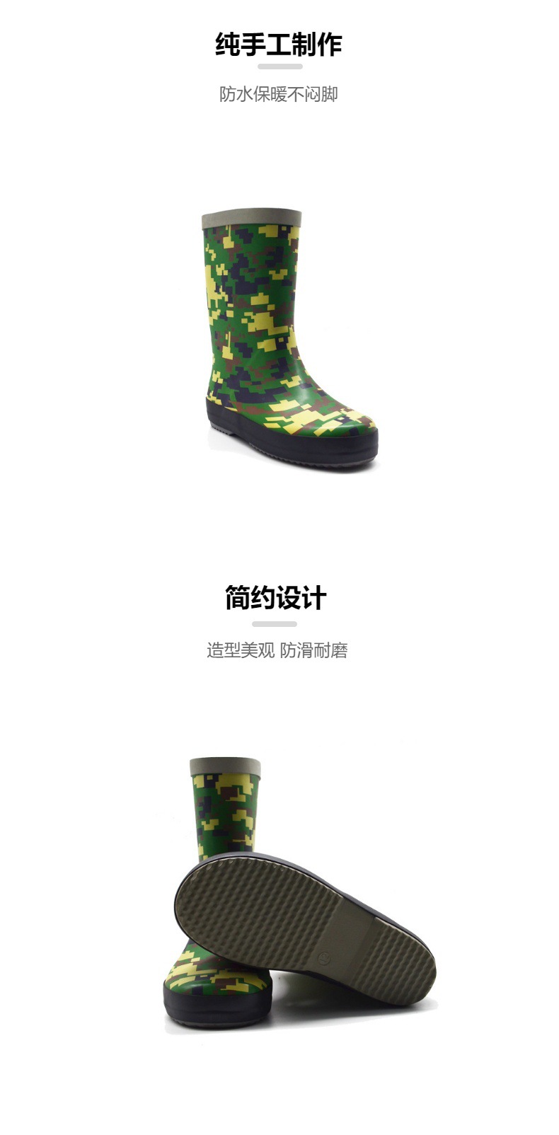 어린이 장화 두꺼운 어린이 물 신발 높은 방수 미끄럼 방지 위장 고무 장화 수출 bsci 공장 검사 사용자 정의스토어 가기