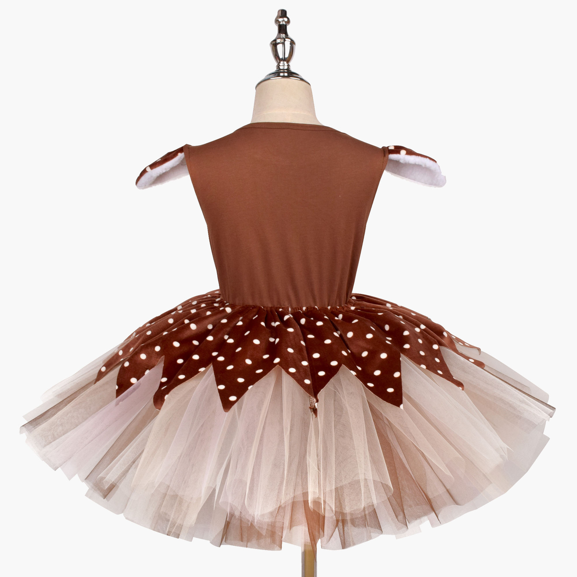 品名:跨境2023年新款小鹿印花连衣裙 女童节日派对装扮服饰 送发箍