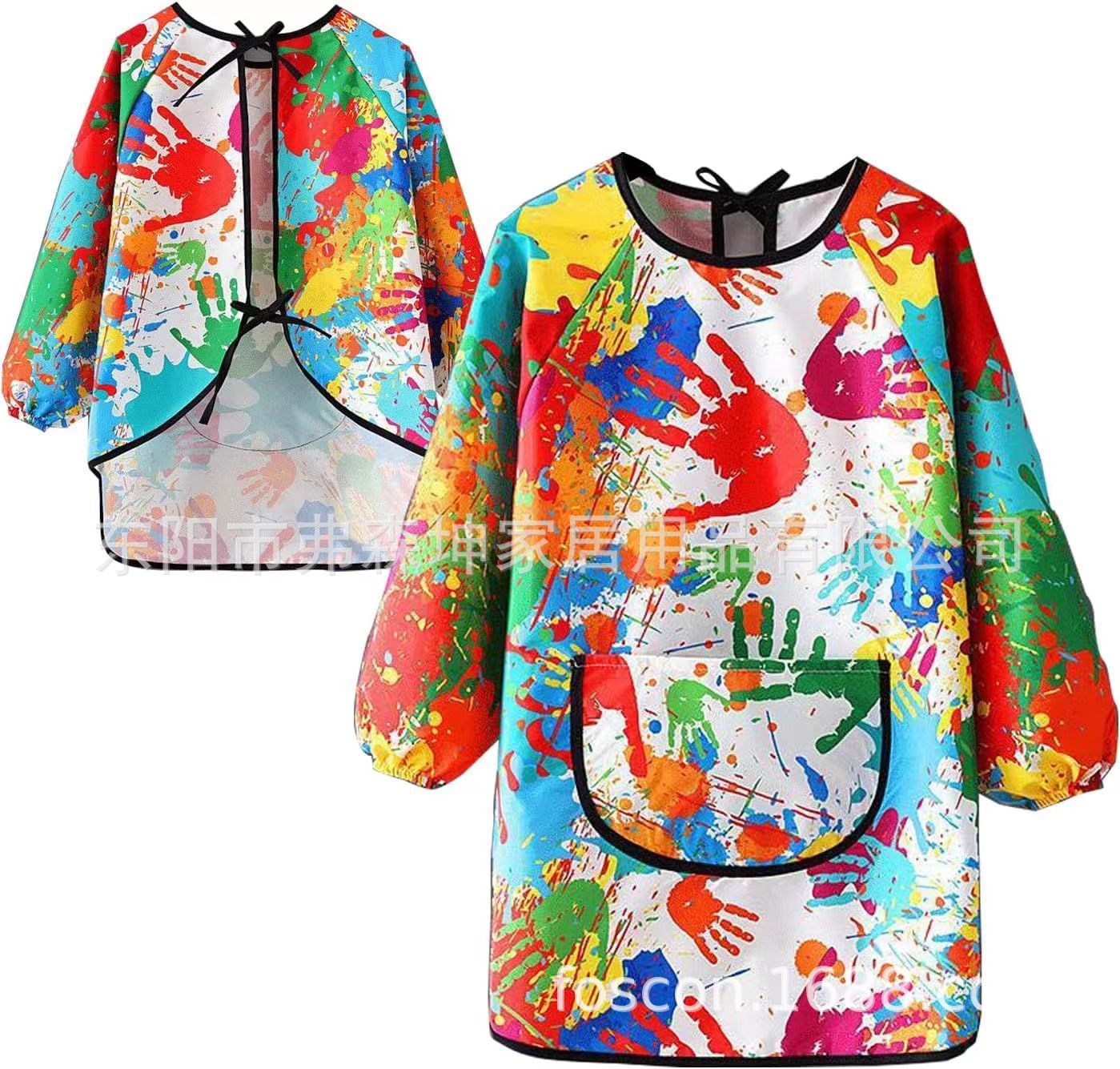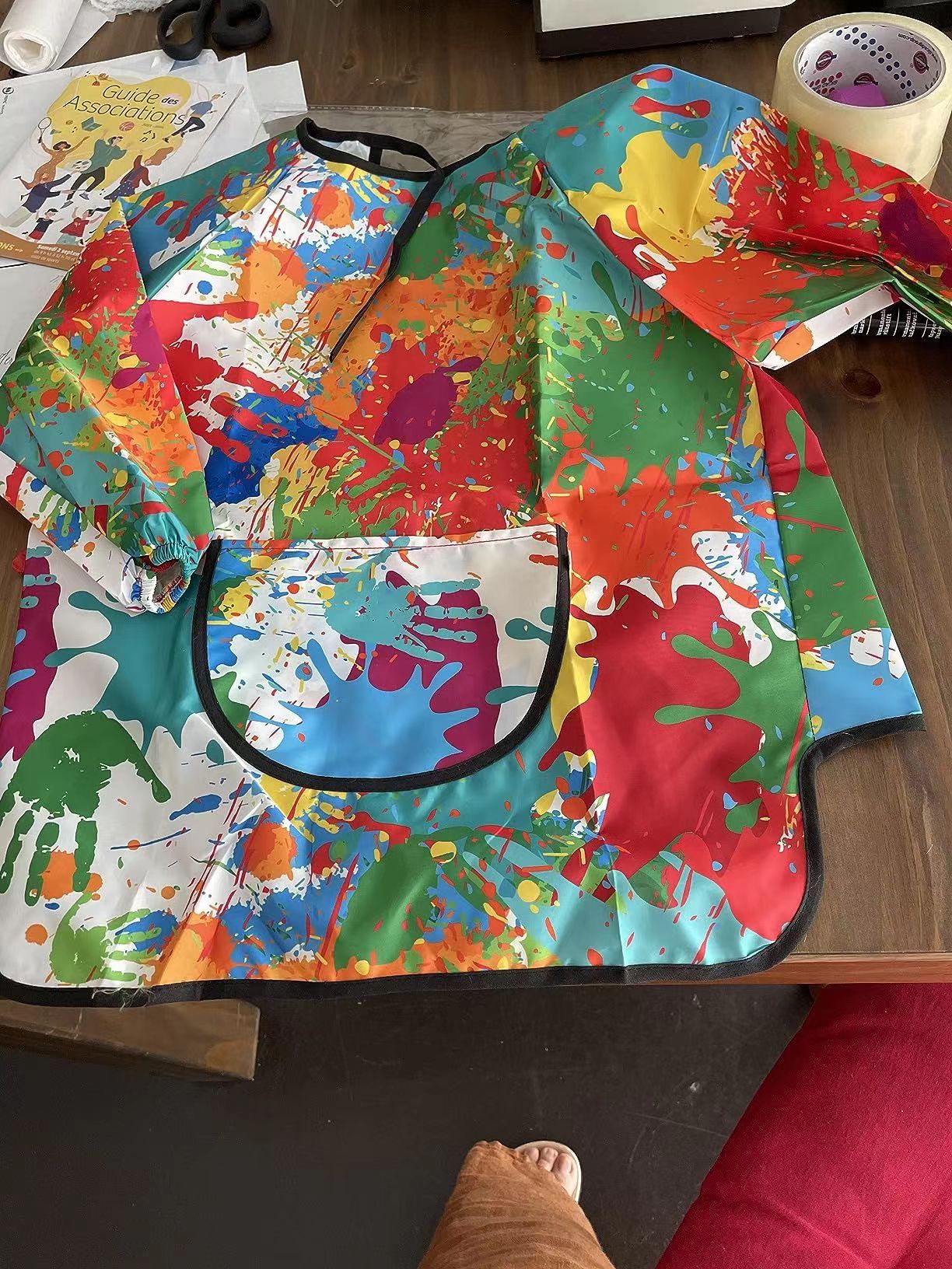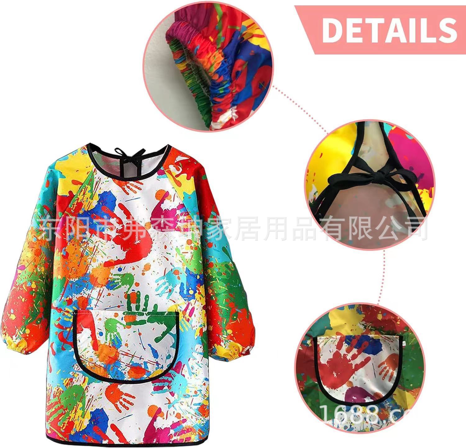 设计:流行的设计有长袖子,提供更好的保护,可调节的闭合,方便取用。1 个前袋可让孩子存放钢笔、颜料、纸制品、装饰品等。