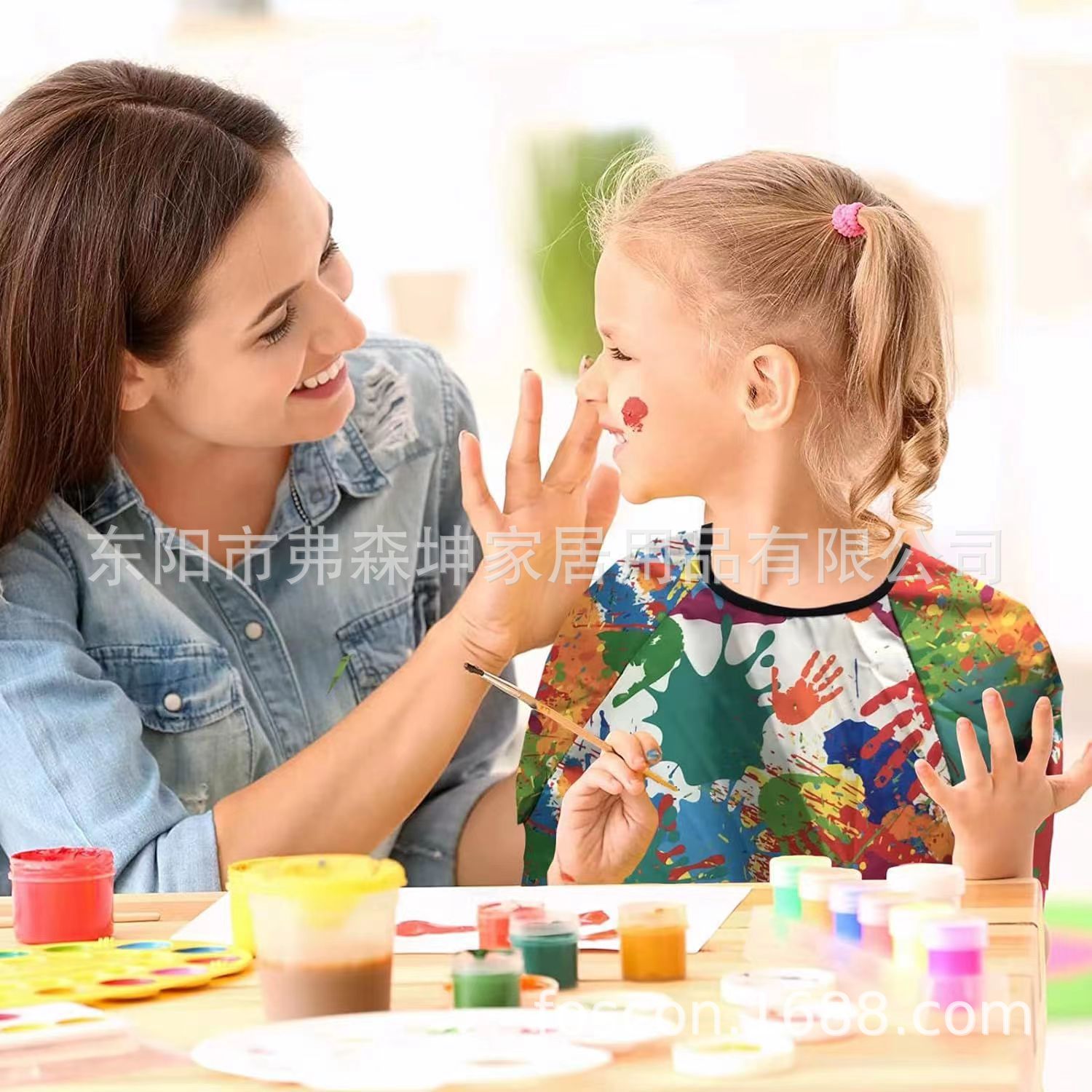 设计:时尚设计,长袖提供更好的保护,可调节闭合,方便取用。1个前袋,可收纳钢笔、颜料、零食、纸巾等物品。